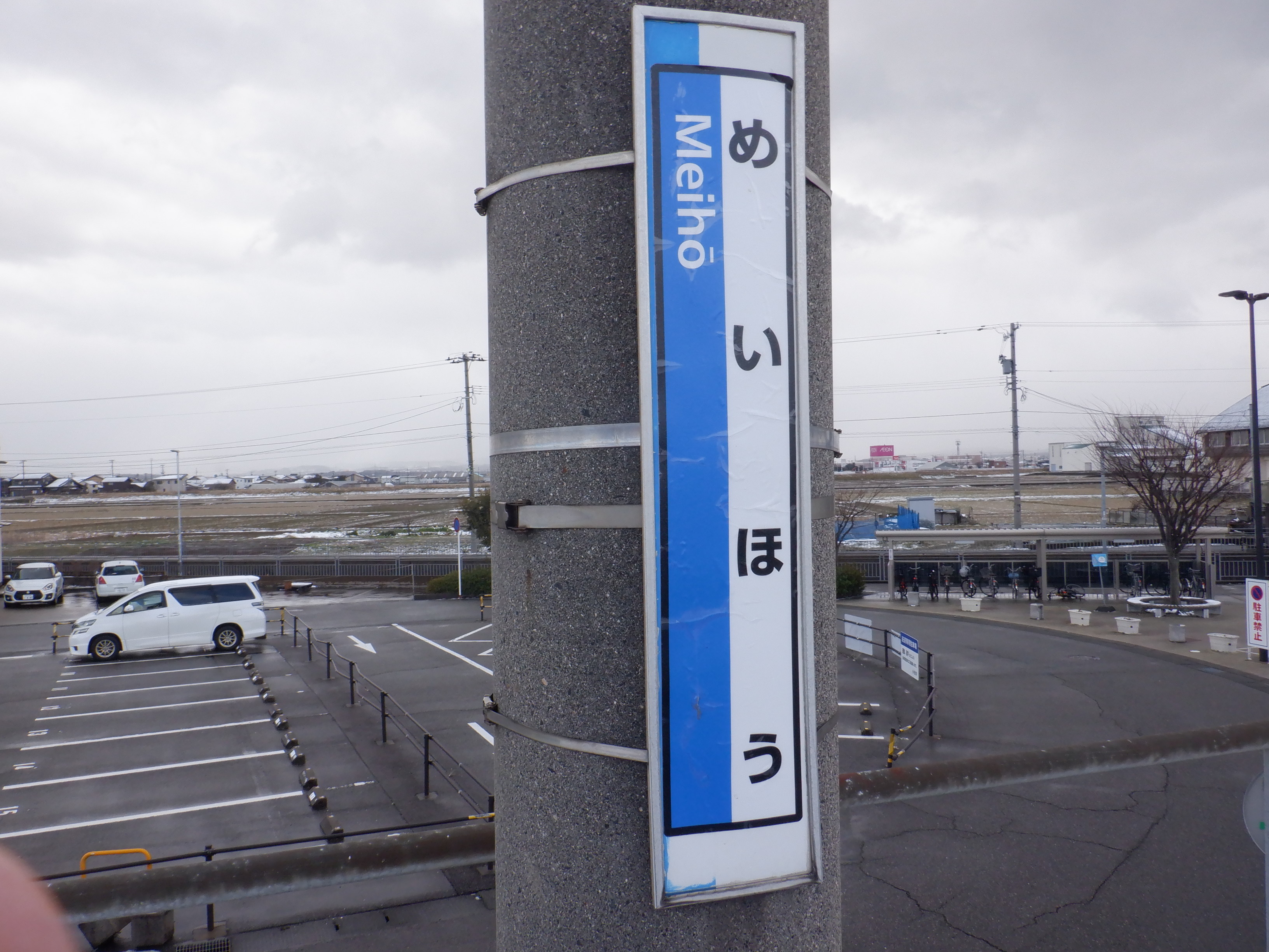 2番のりばの能美根上駅側の駅名標。この時点でJRロゴにシールが貼られました。