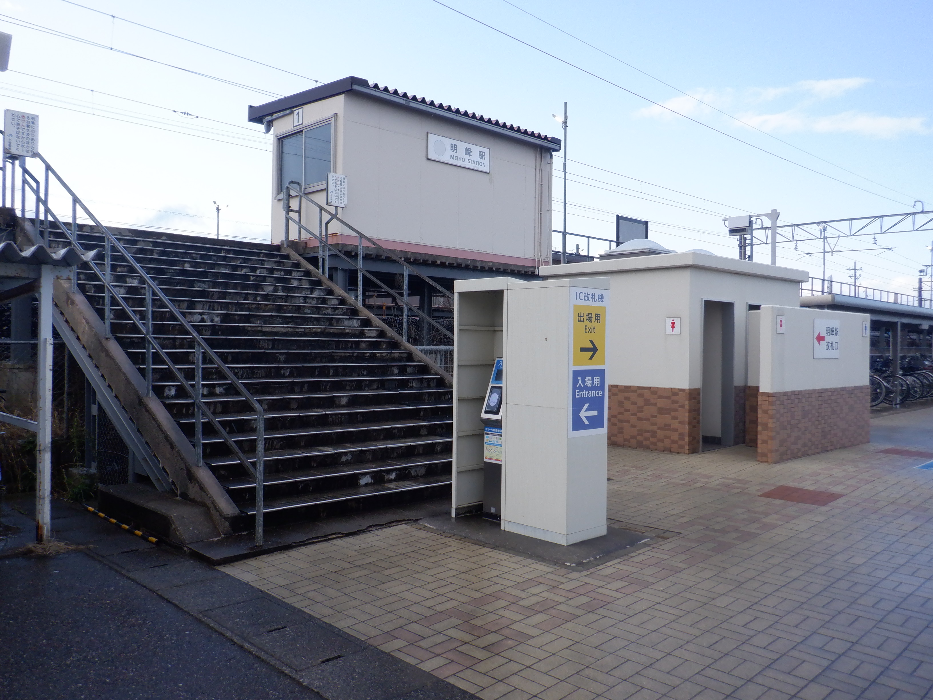明峰駅の2024年移管前の様子です。この駅の場合は券売機の設置場所が狭いため、新旧並ばずに入替となったようです。移管前は駅名標が変化しました。