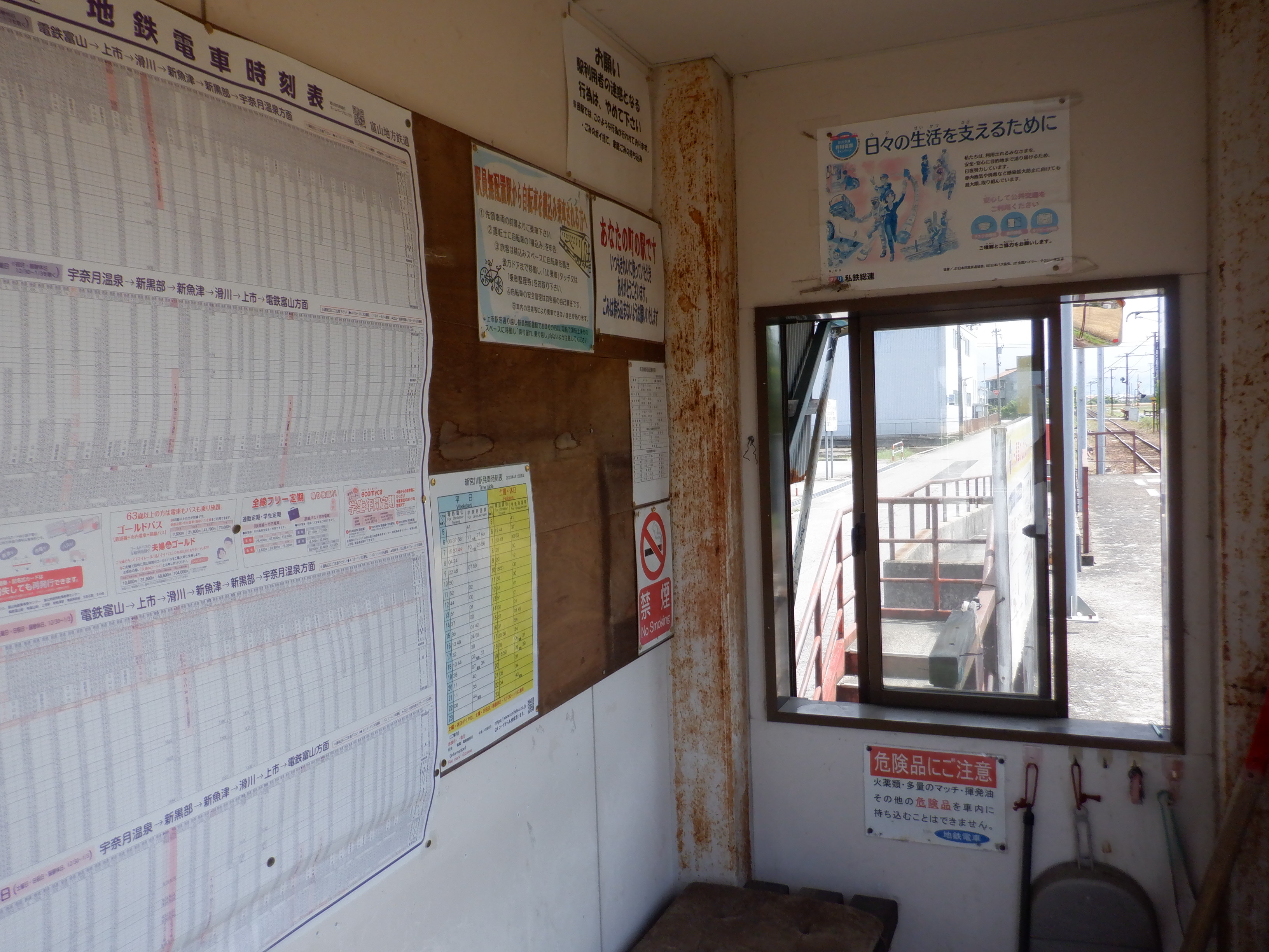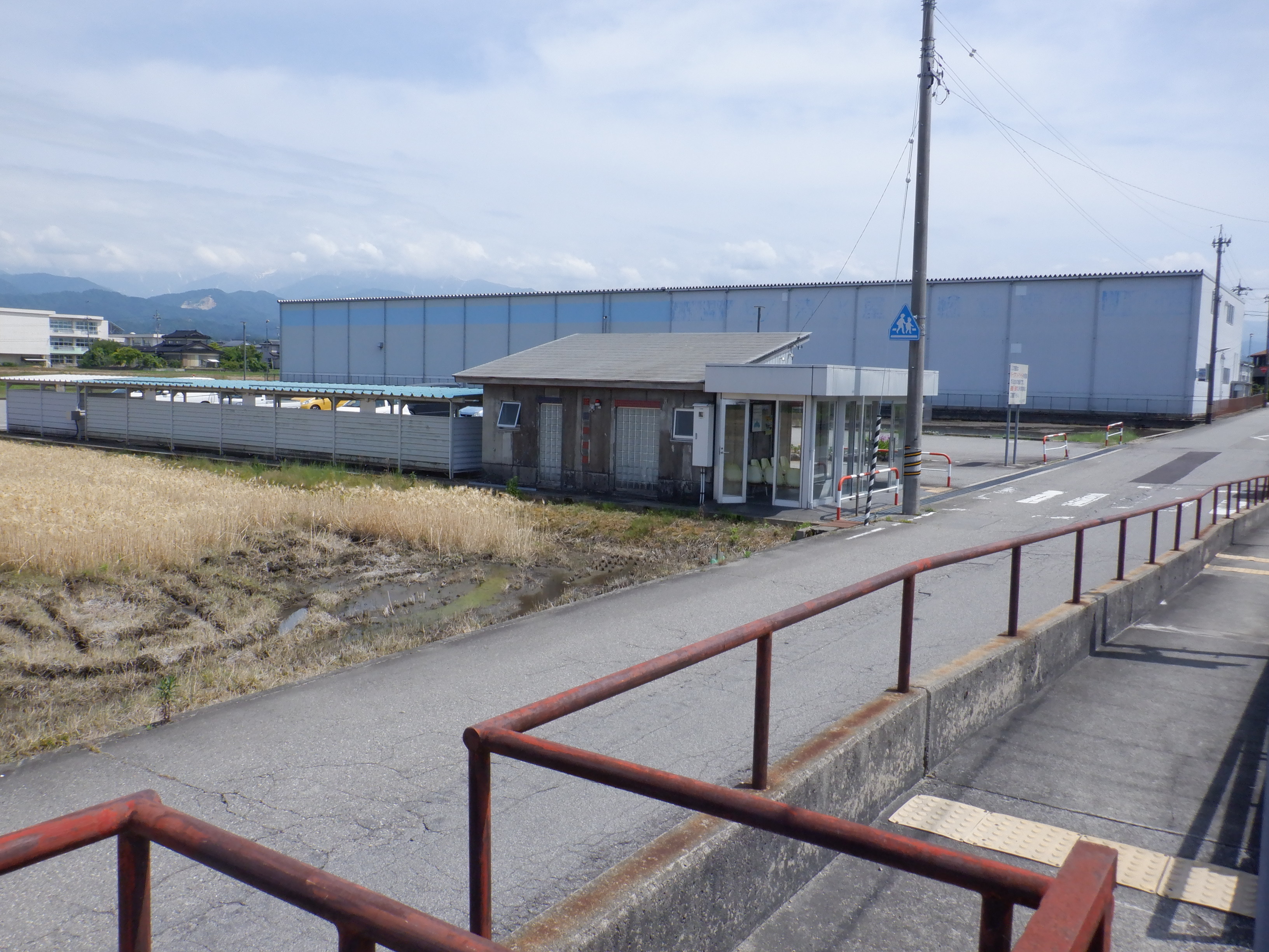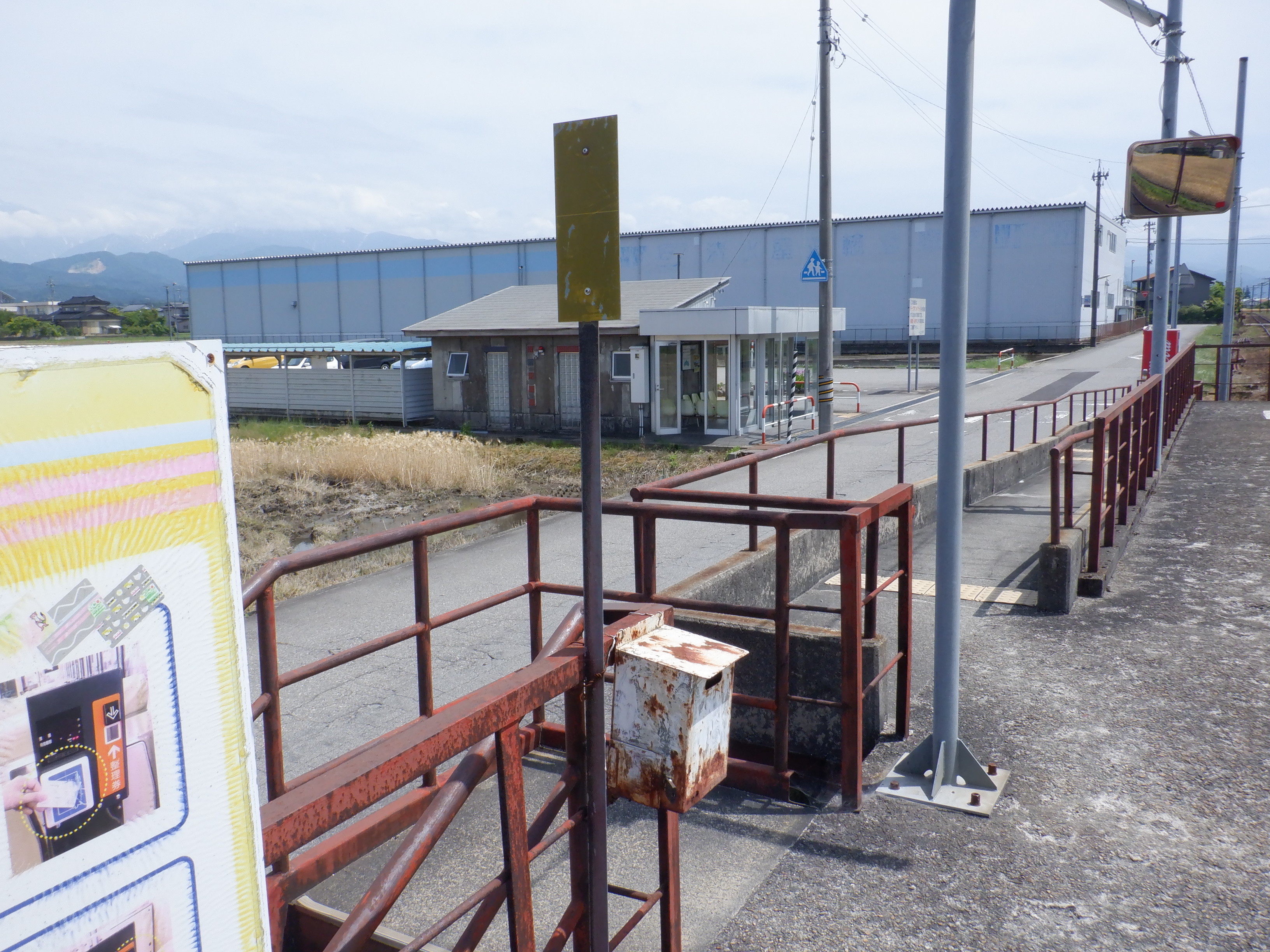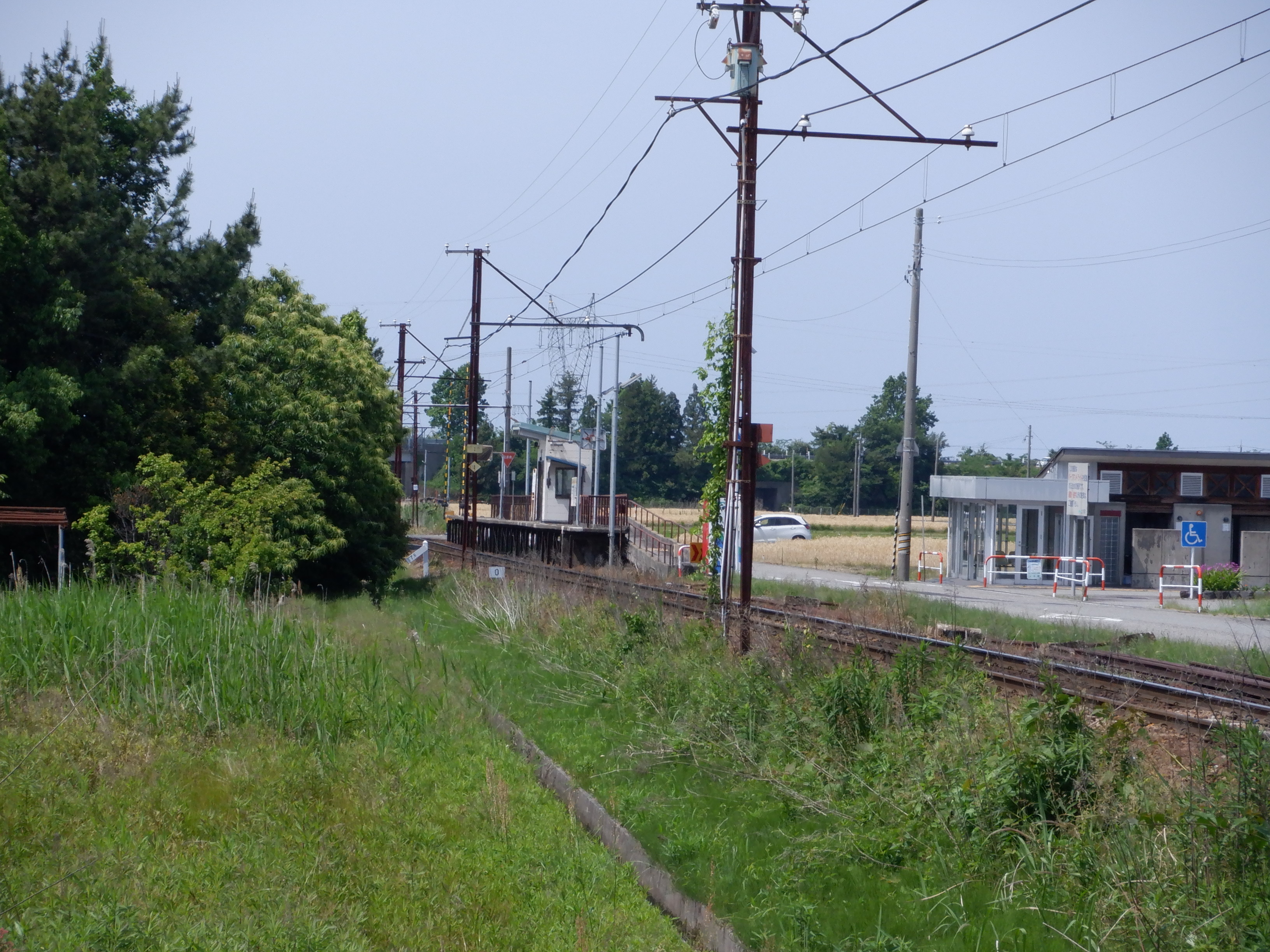 水田(年によっては麦畑)が広がる集落の近くにある駅です。また、近くには北陸自動車道の上市スマートICがあります。ホームに待合室がありますが、道路を挟んで向かい側にはパークアンドライドの駐車場とさらに待合室が整備されています。