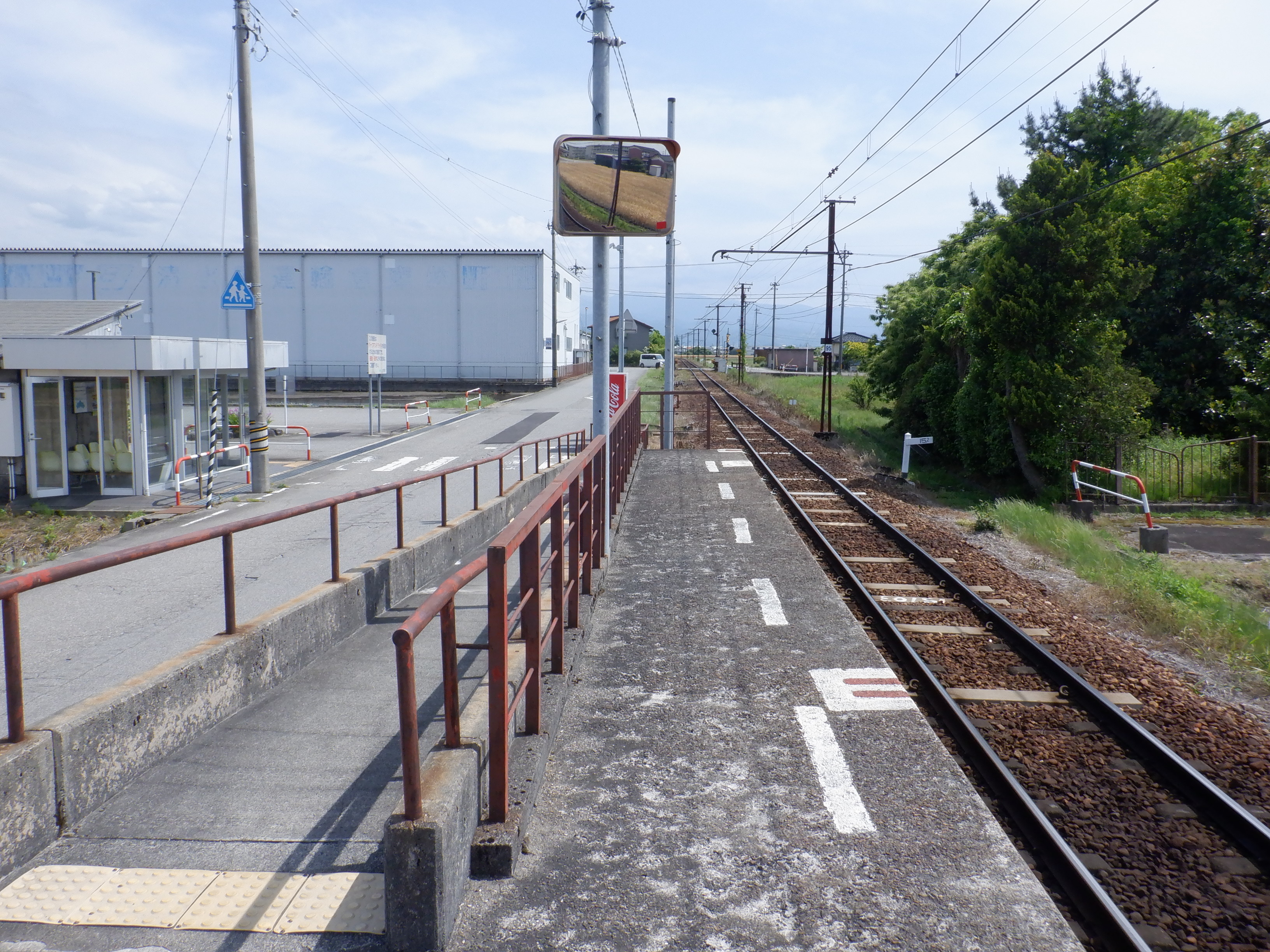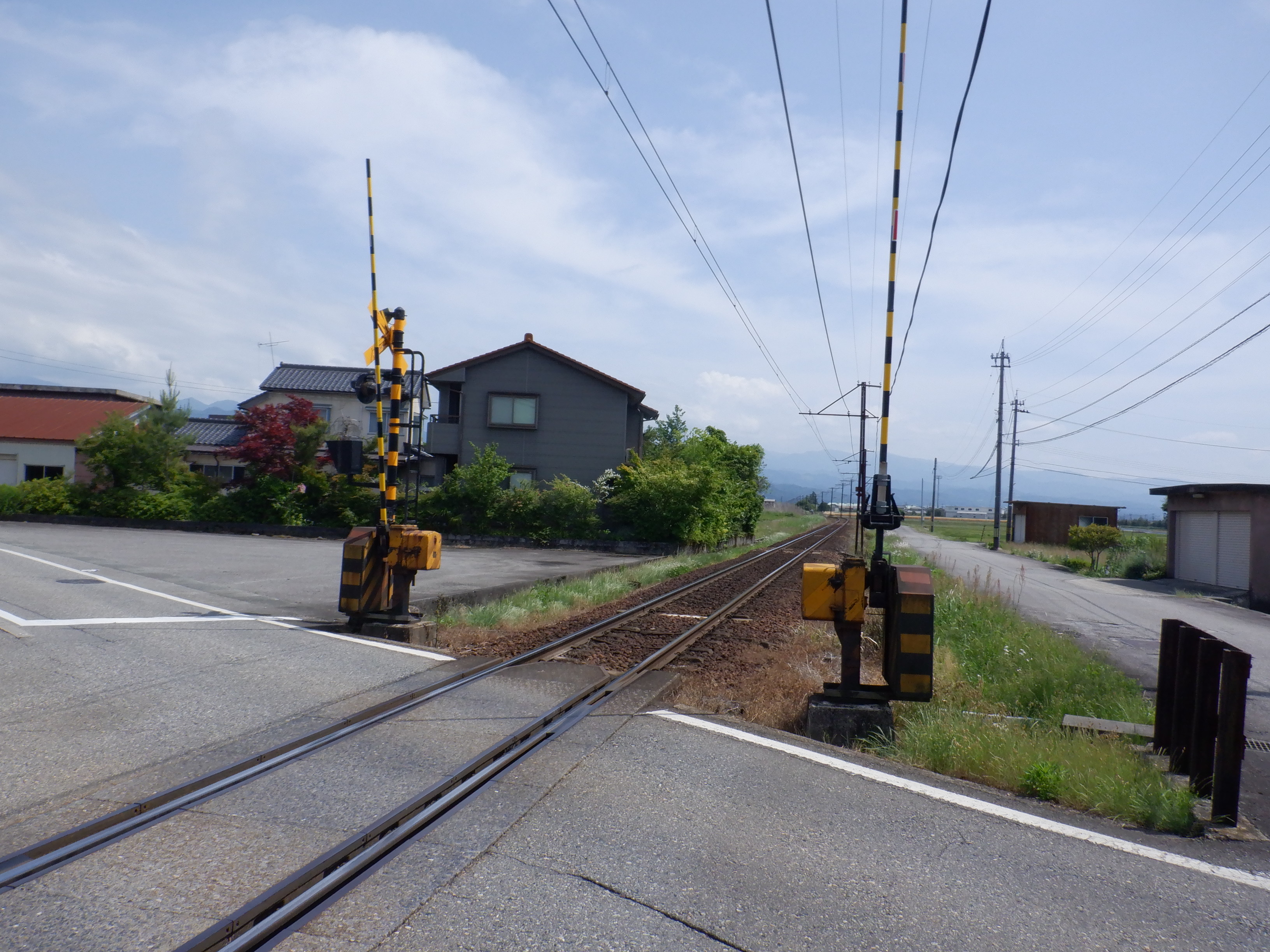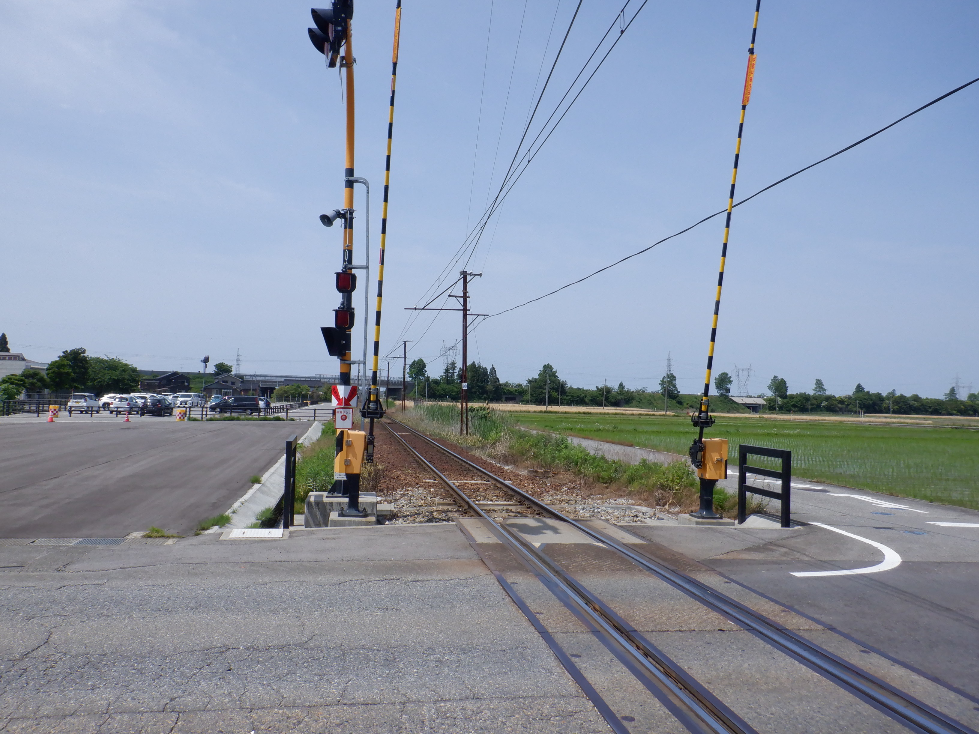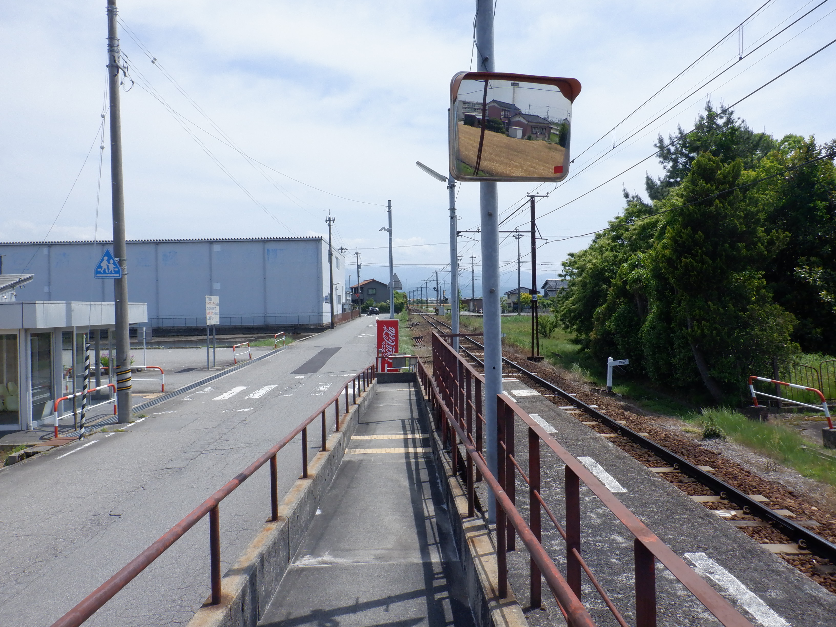 駅のそばの踏切がある道をホーム側に少し進みます。