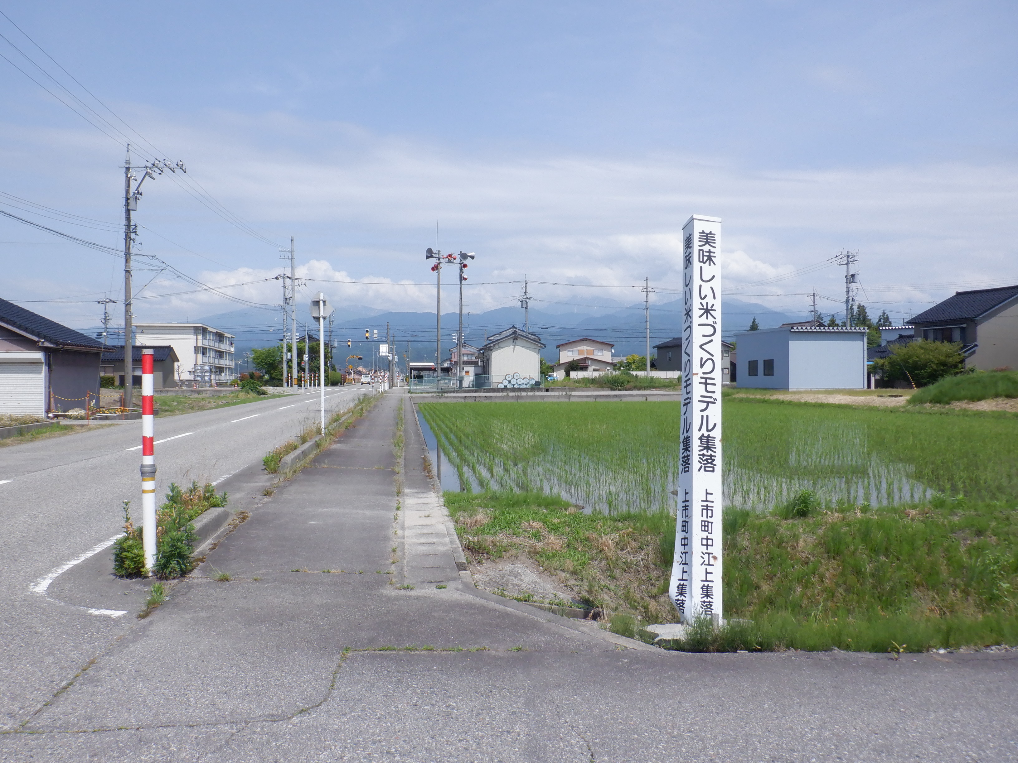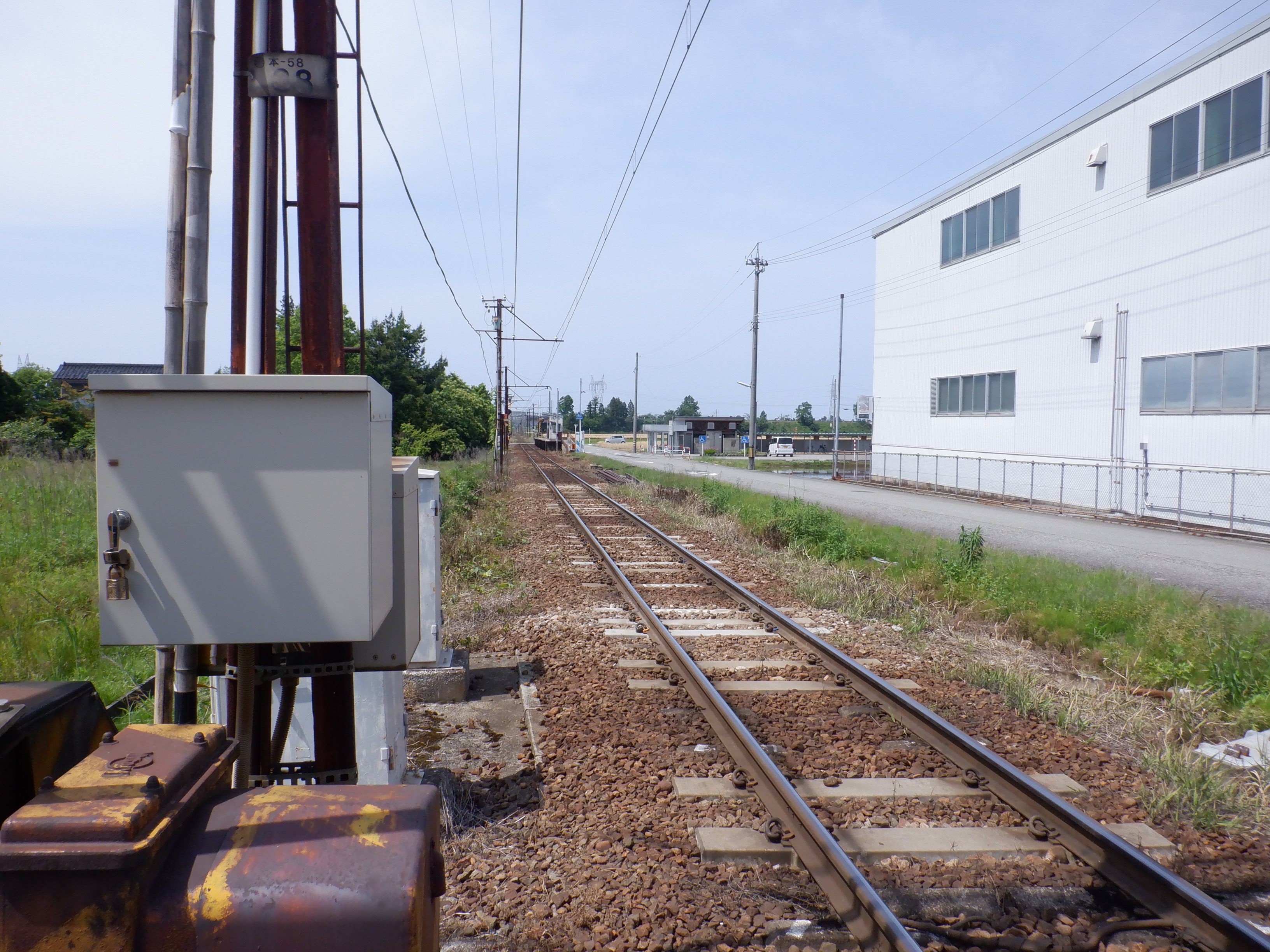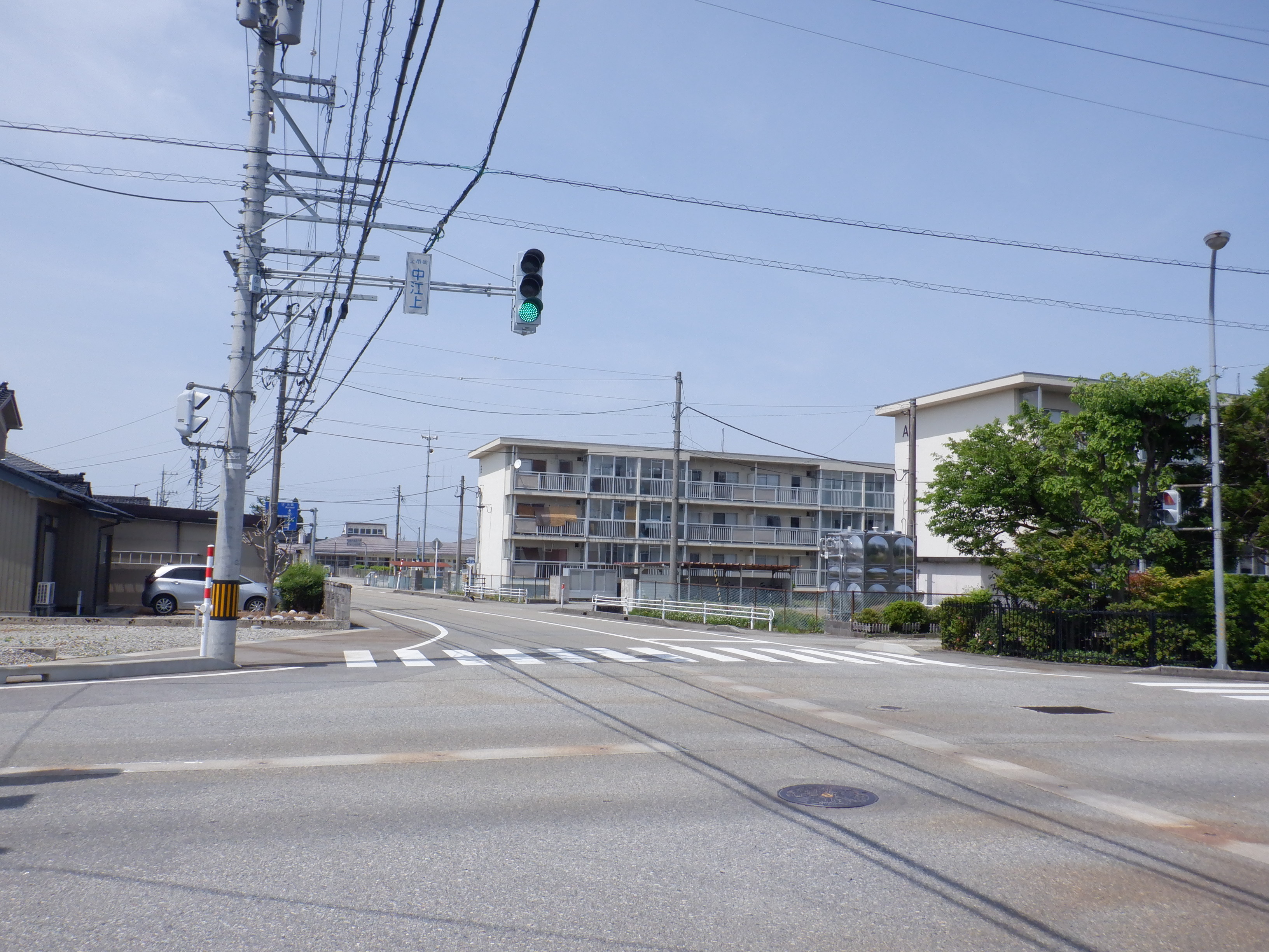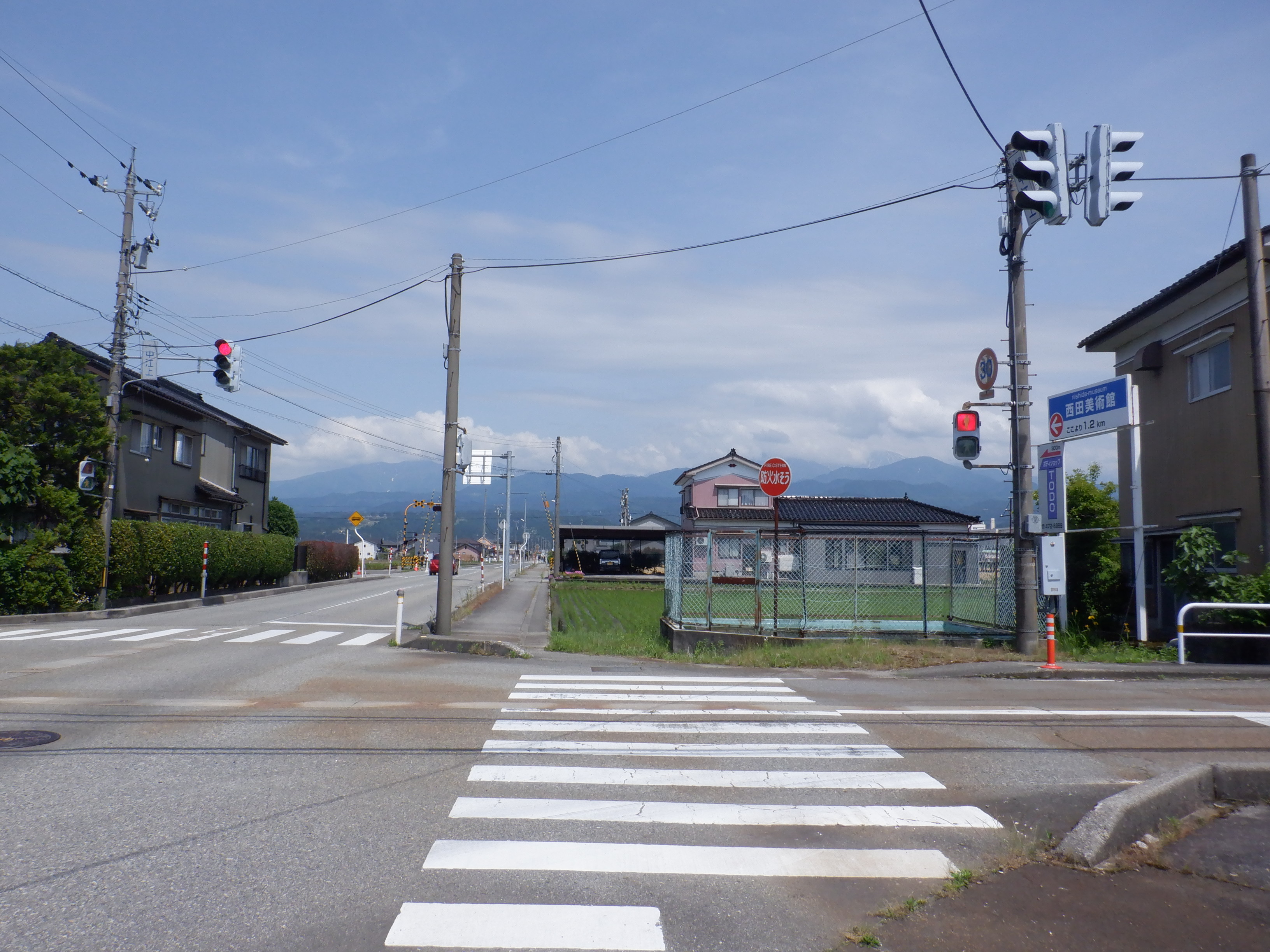 今度は交差点から線路と平行に、上市駅側に進みます。