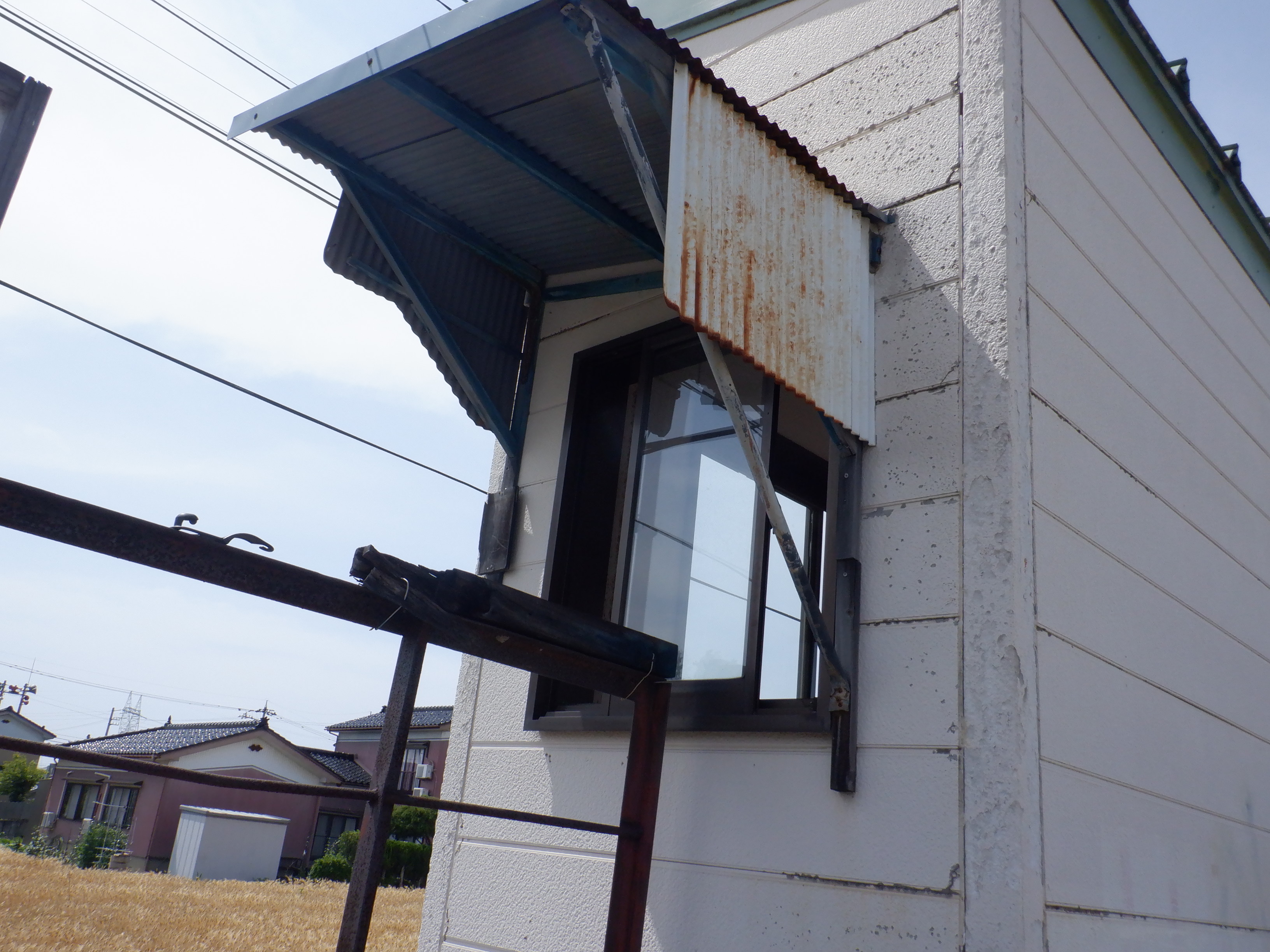 待合室の外観。上市駅側に小さな屋根が付いています。