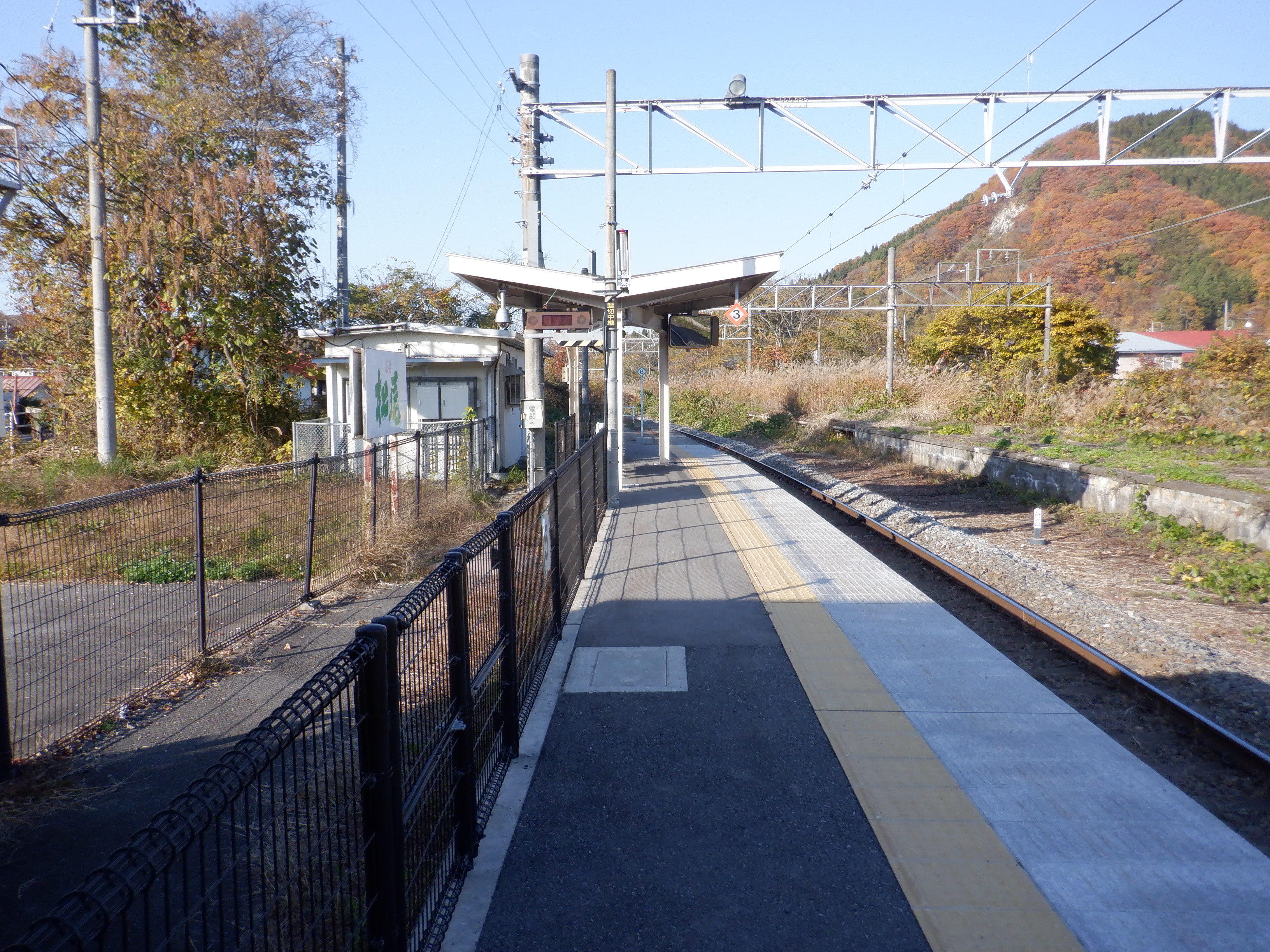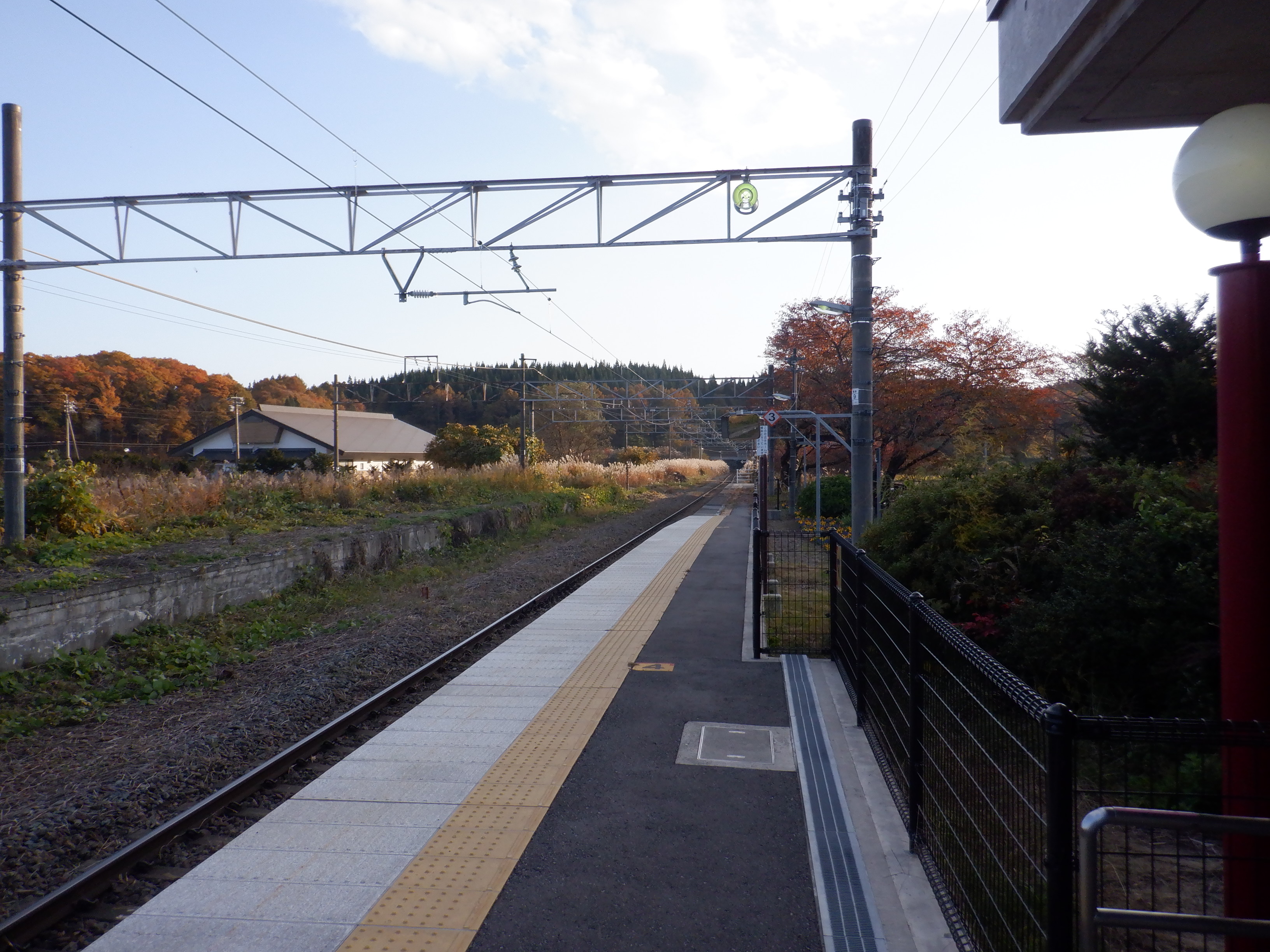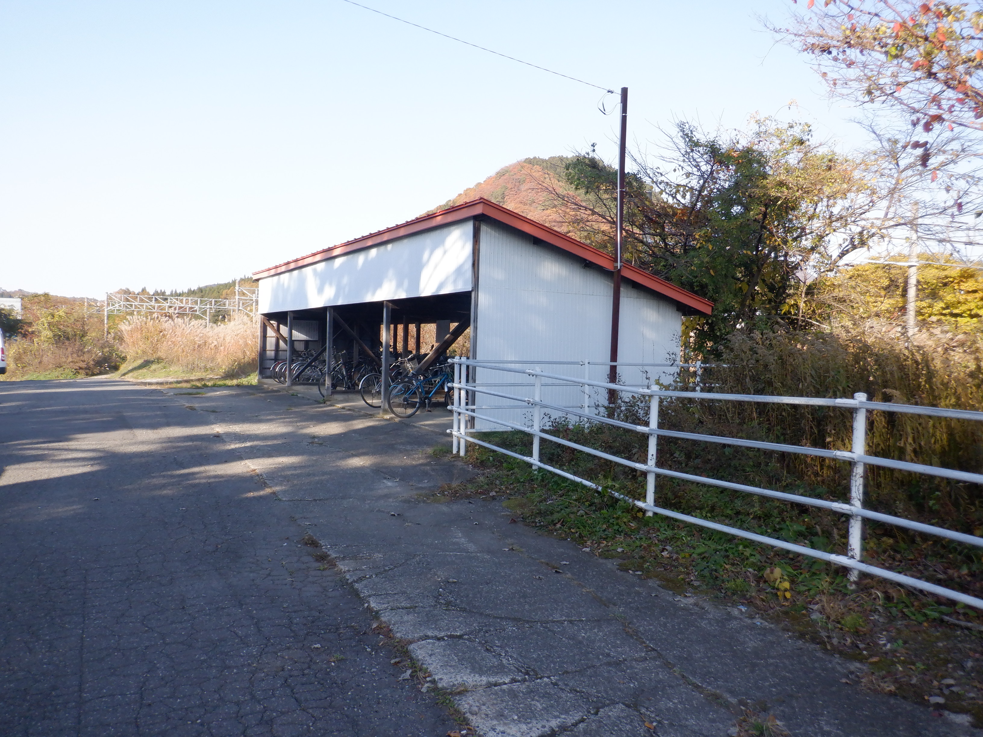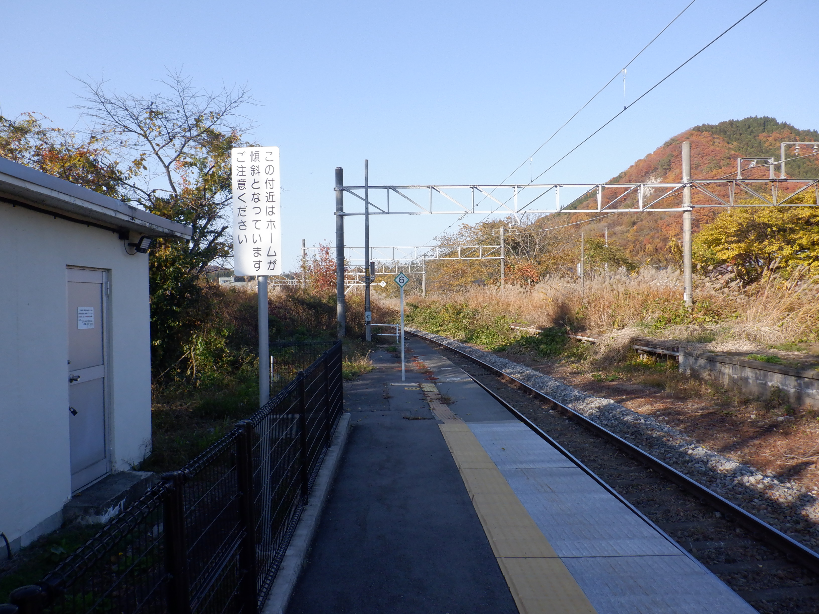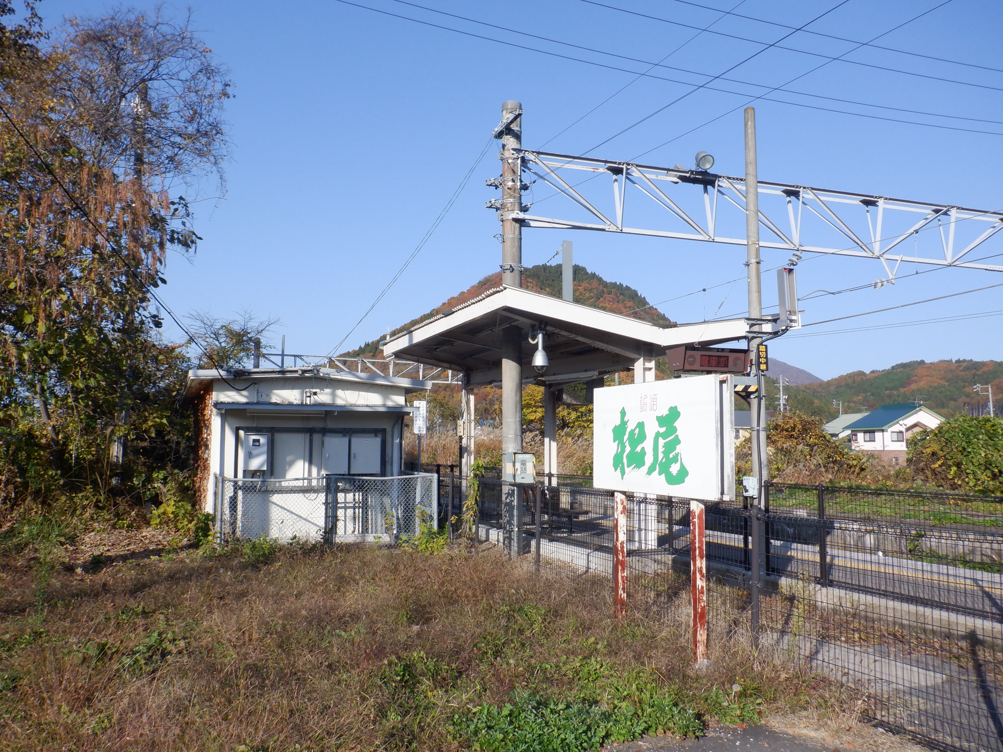 ホームの黒姫側に少し離れて上屋があります。その付近に継電器室があります。