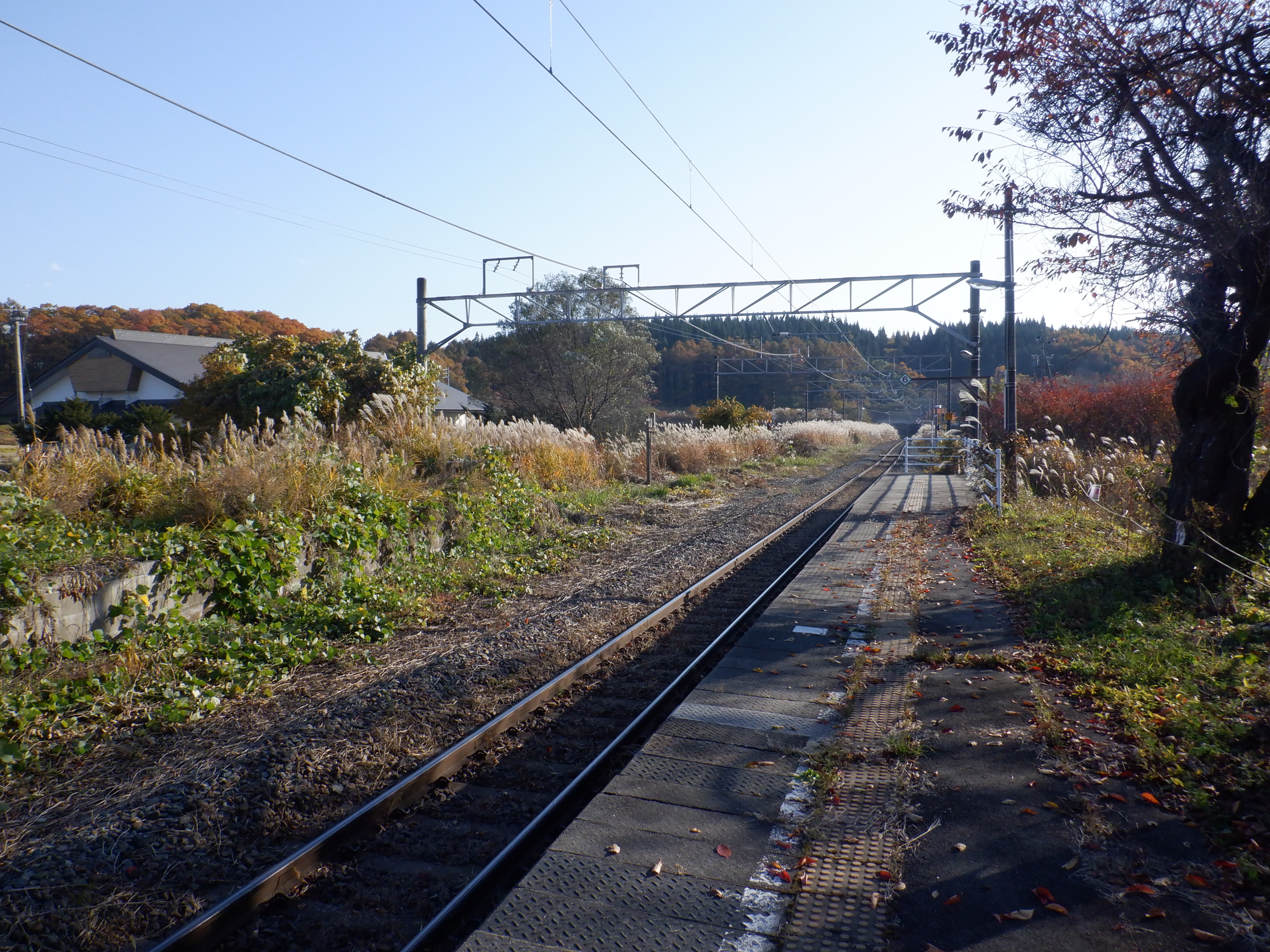 ホームから見た駅舎と反対側の風景。