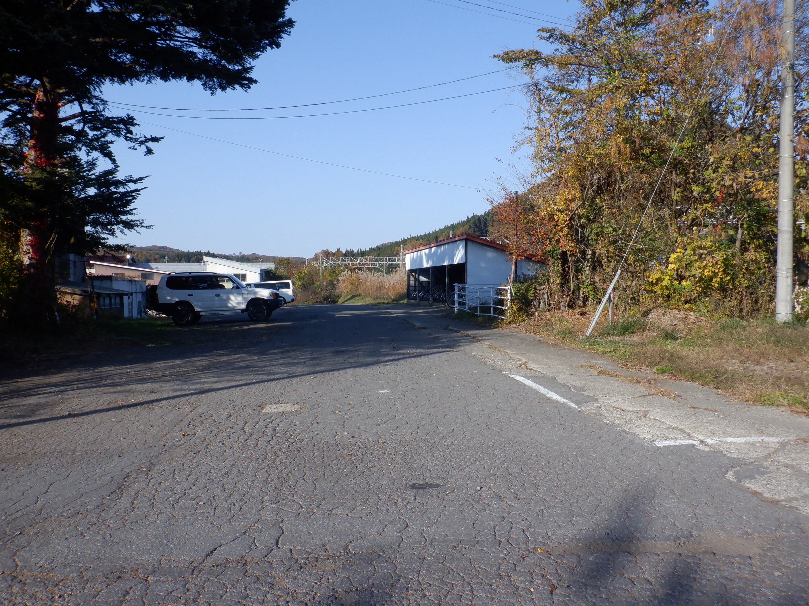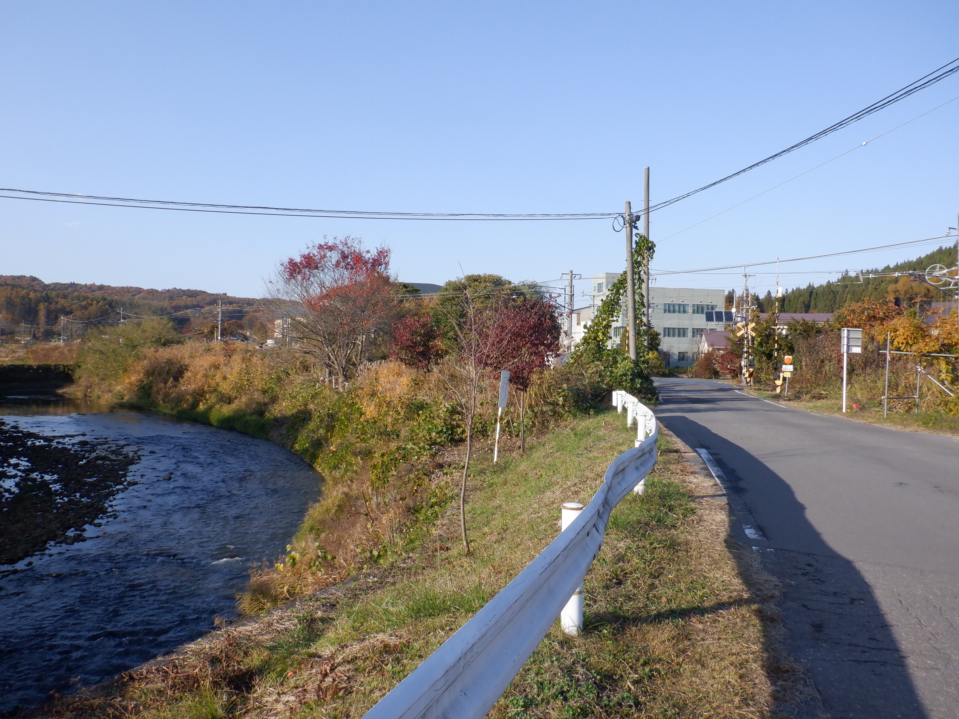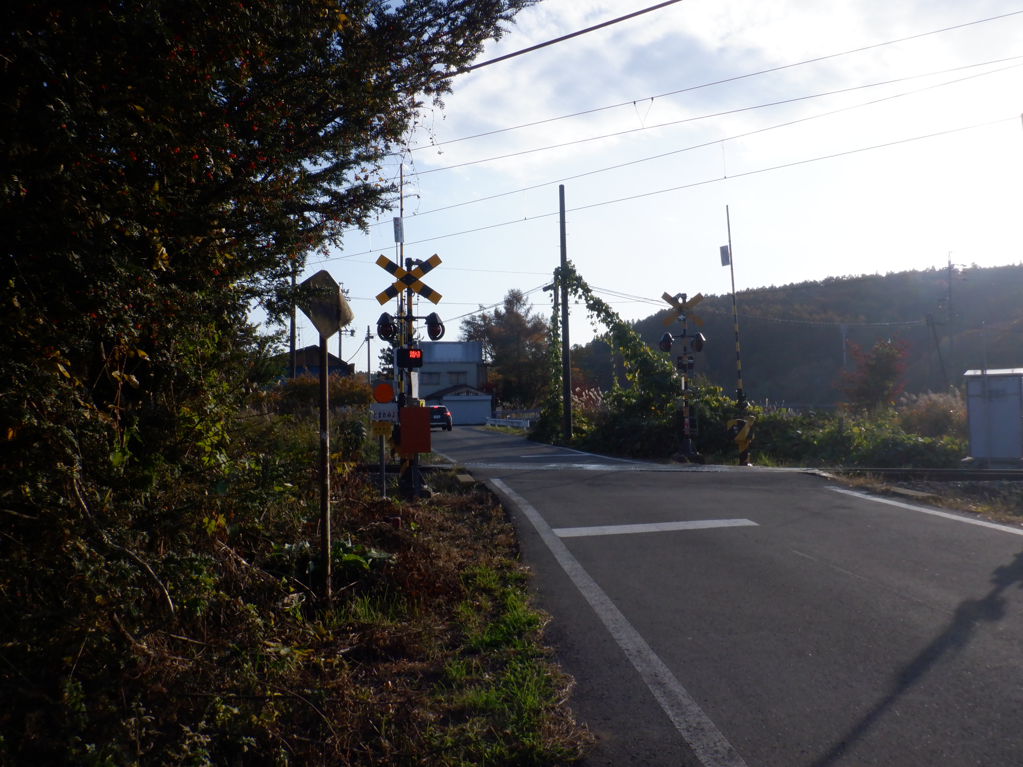 踏切を渡ったところから。