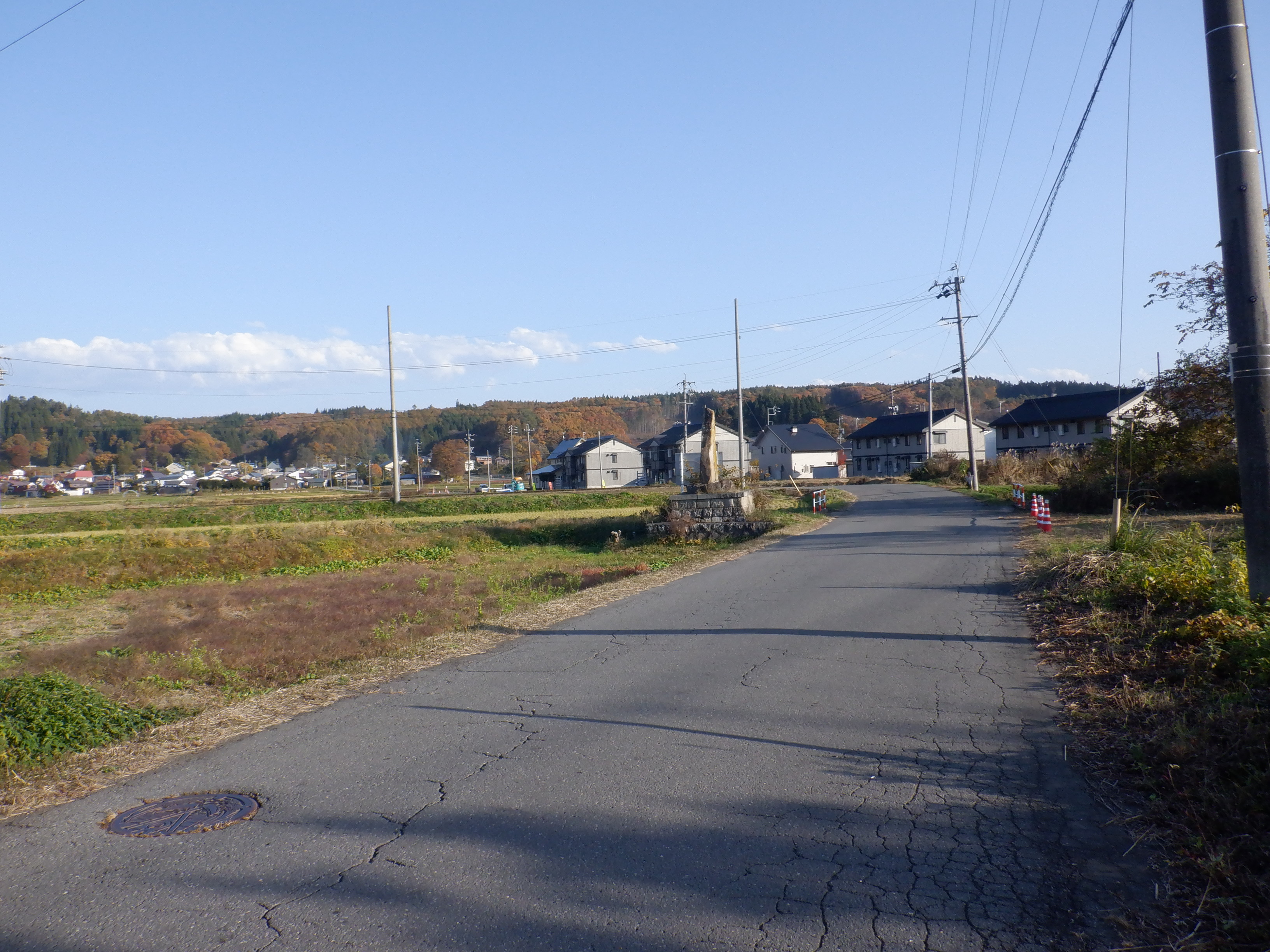 県道360号(古間停車場野尻線)から県道364号(古間停車場線)が分かれていきますが、そのまま進みます。
