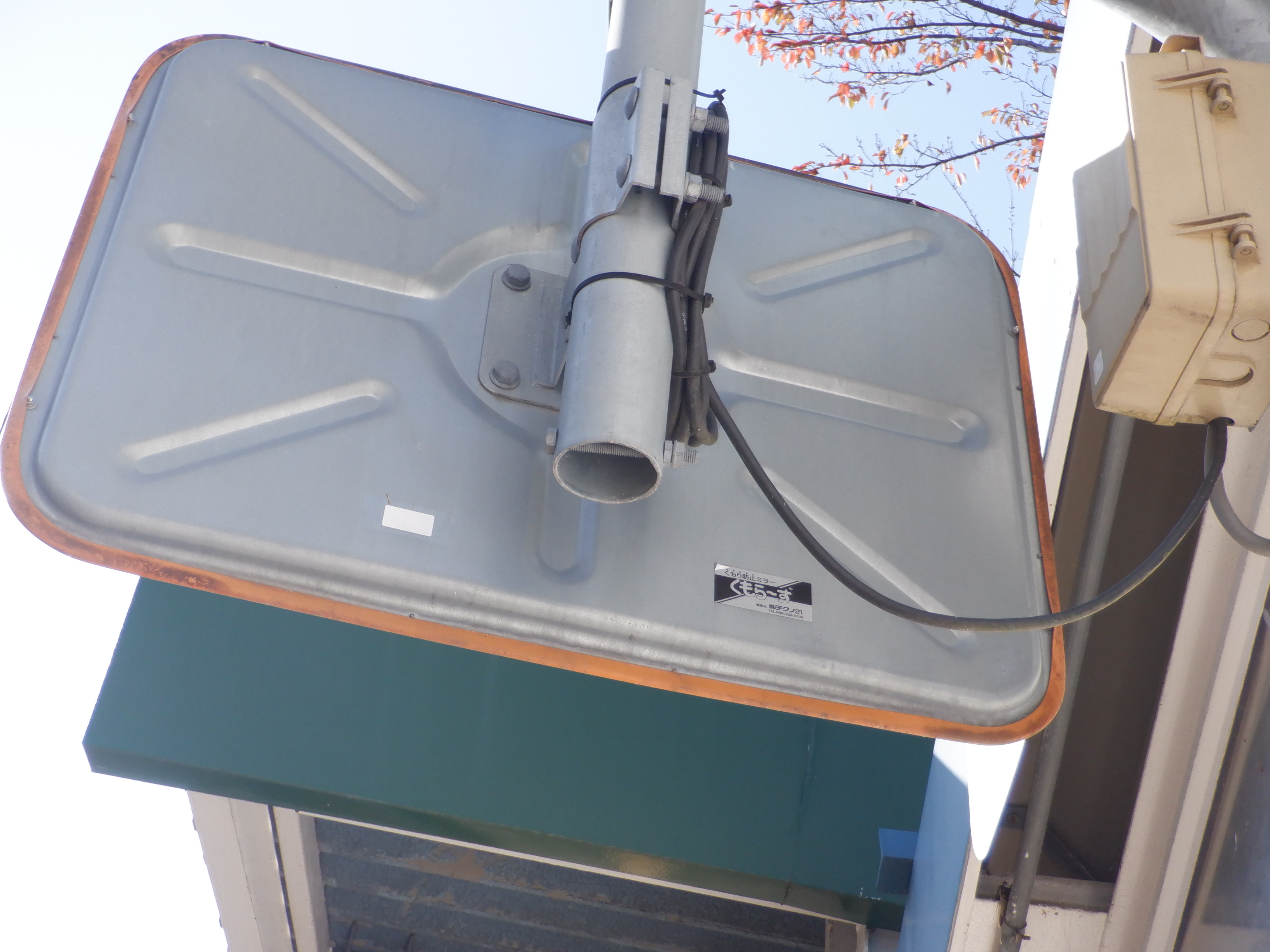 跨線橋の入口にあるミラー。