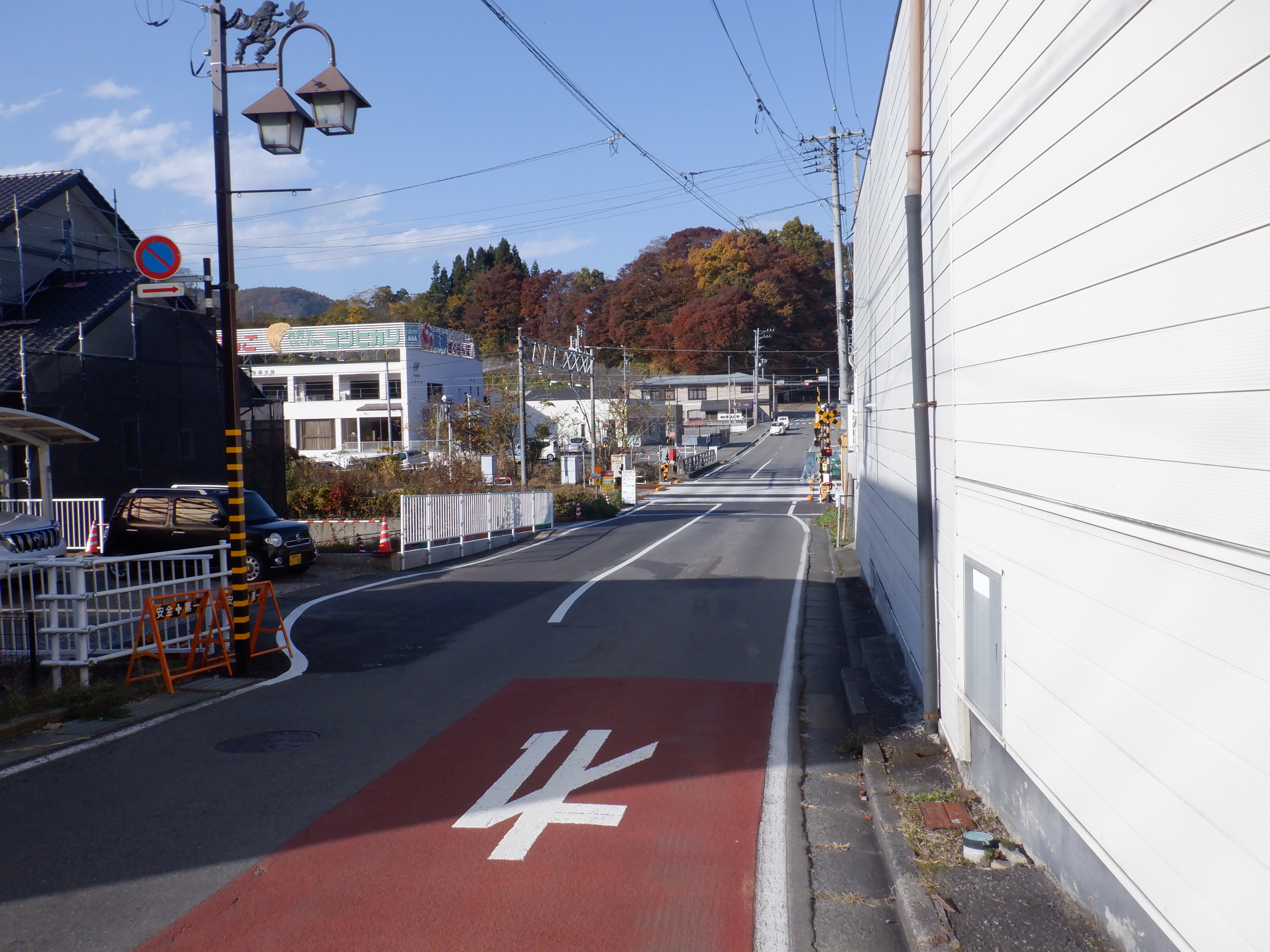 右に曲がり、踏切を渡ります。