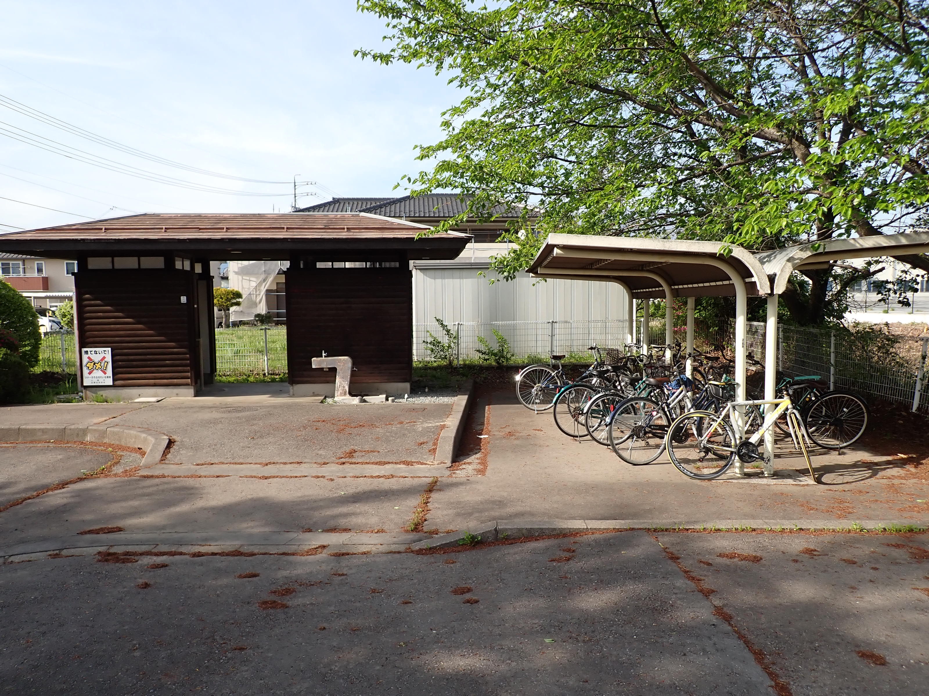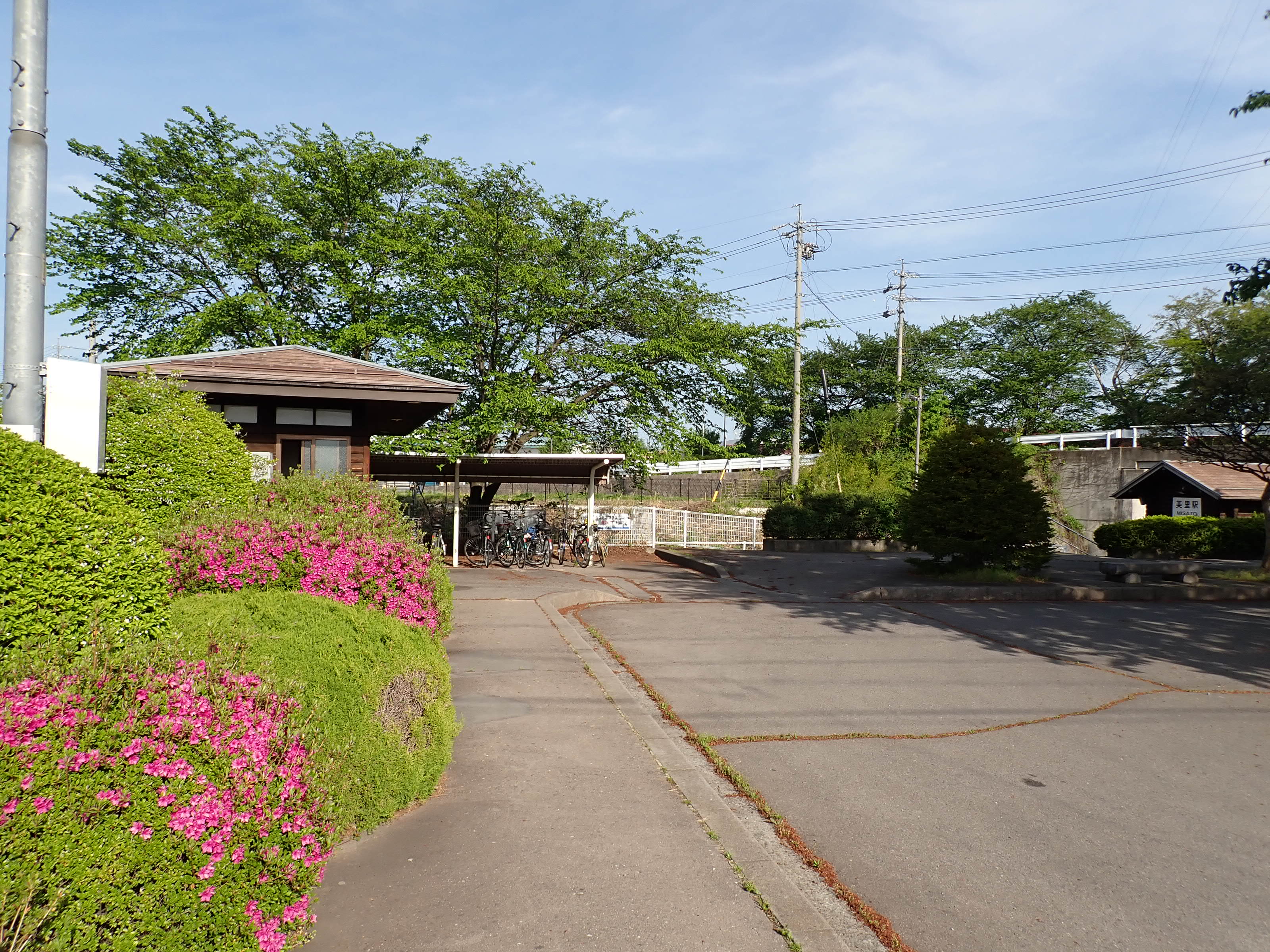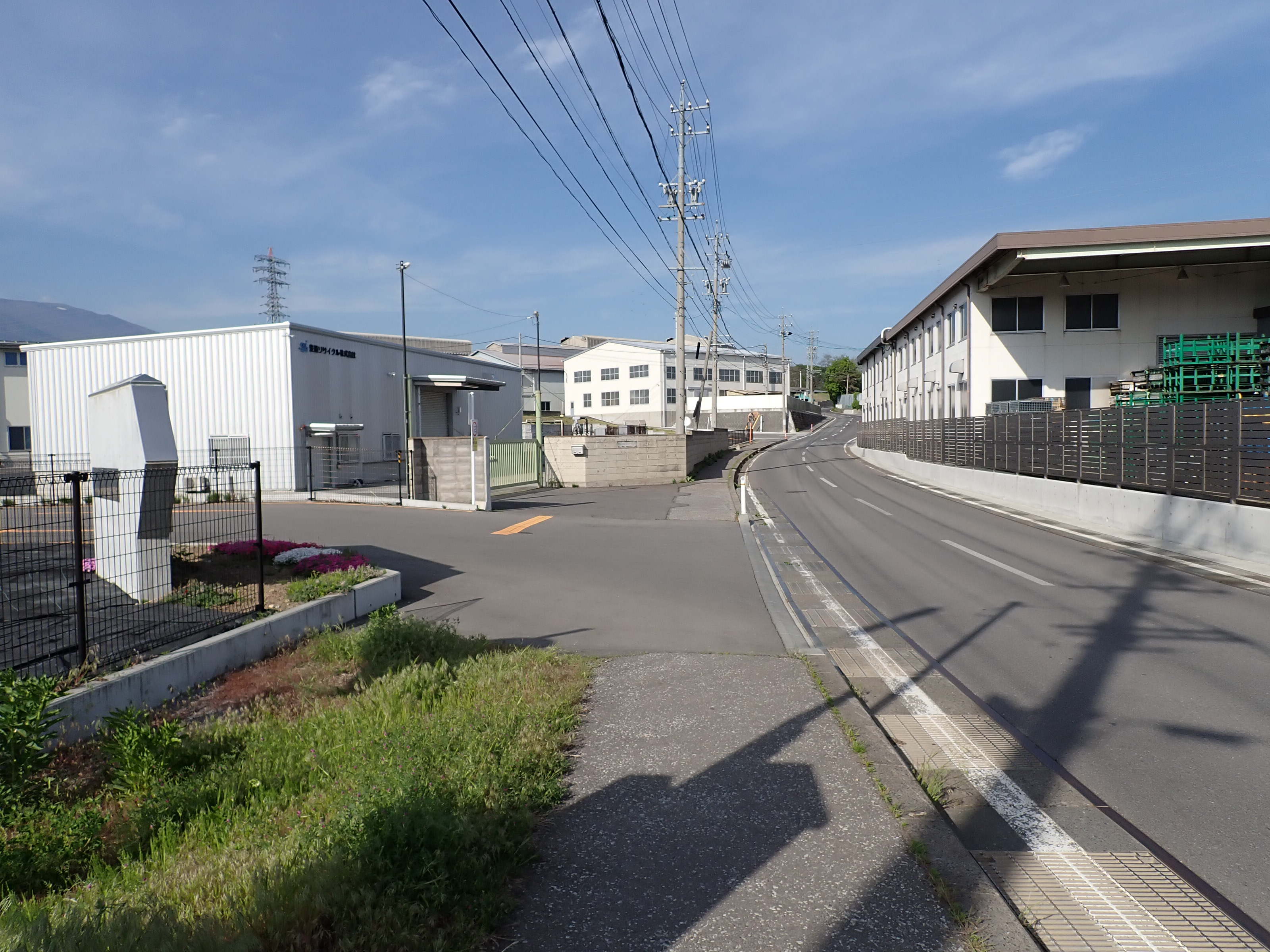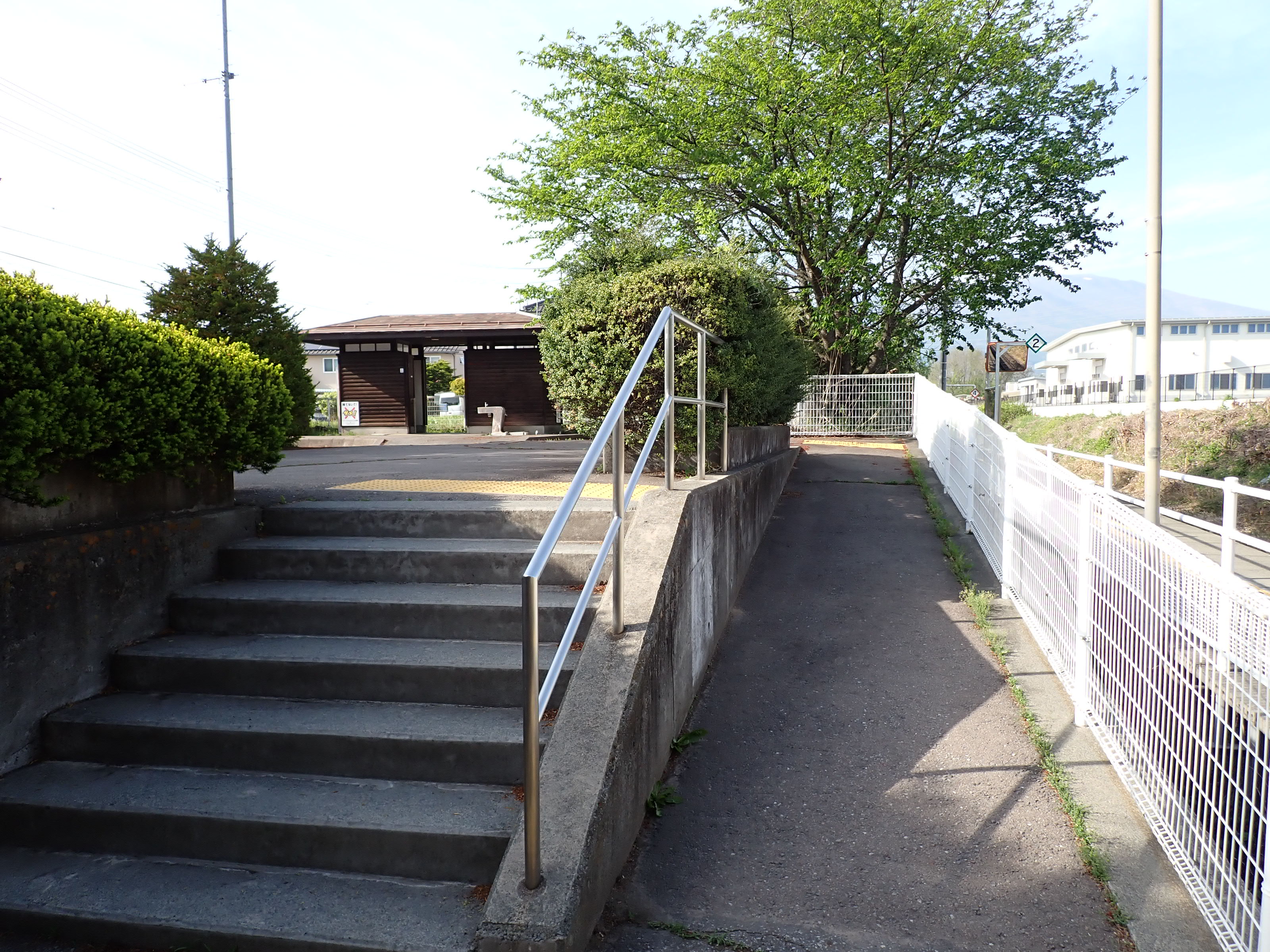 突き当たった道を曲がると駅入口・養護学校の案内があります。