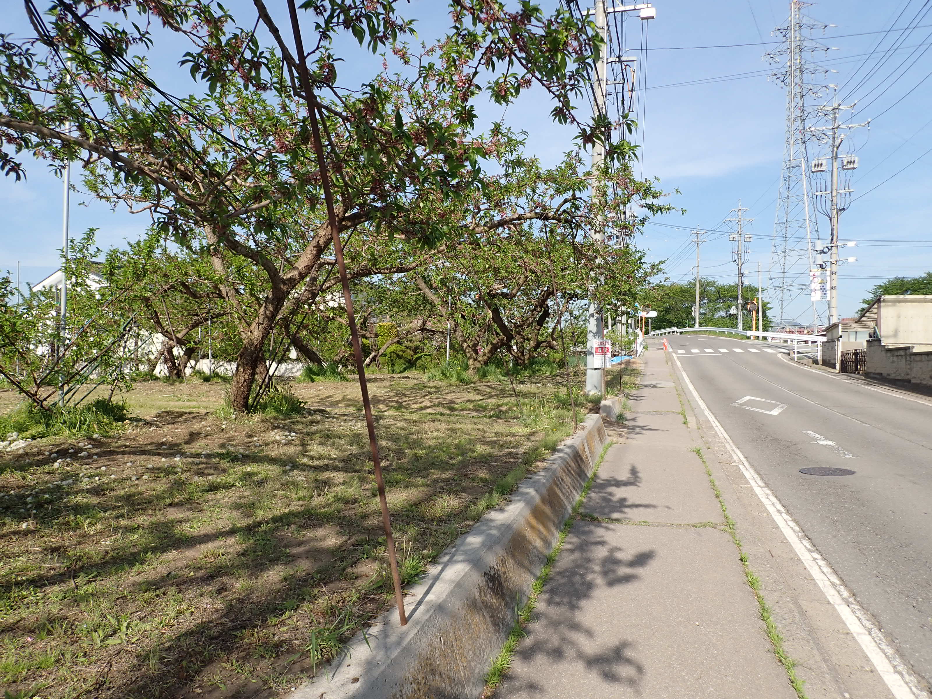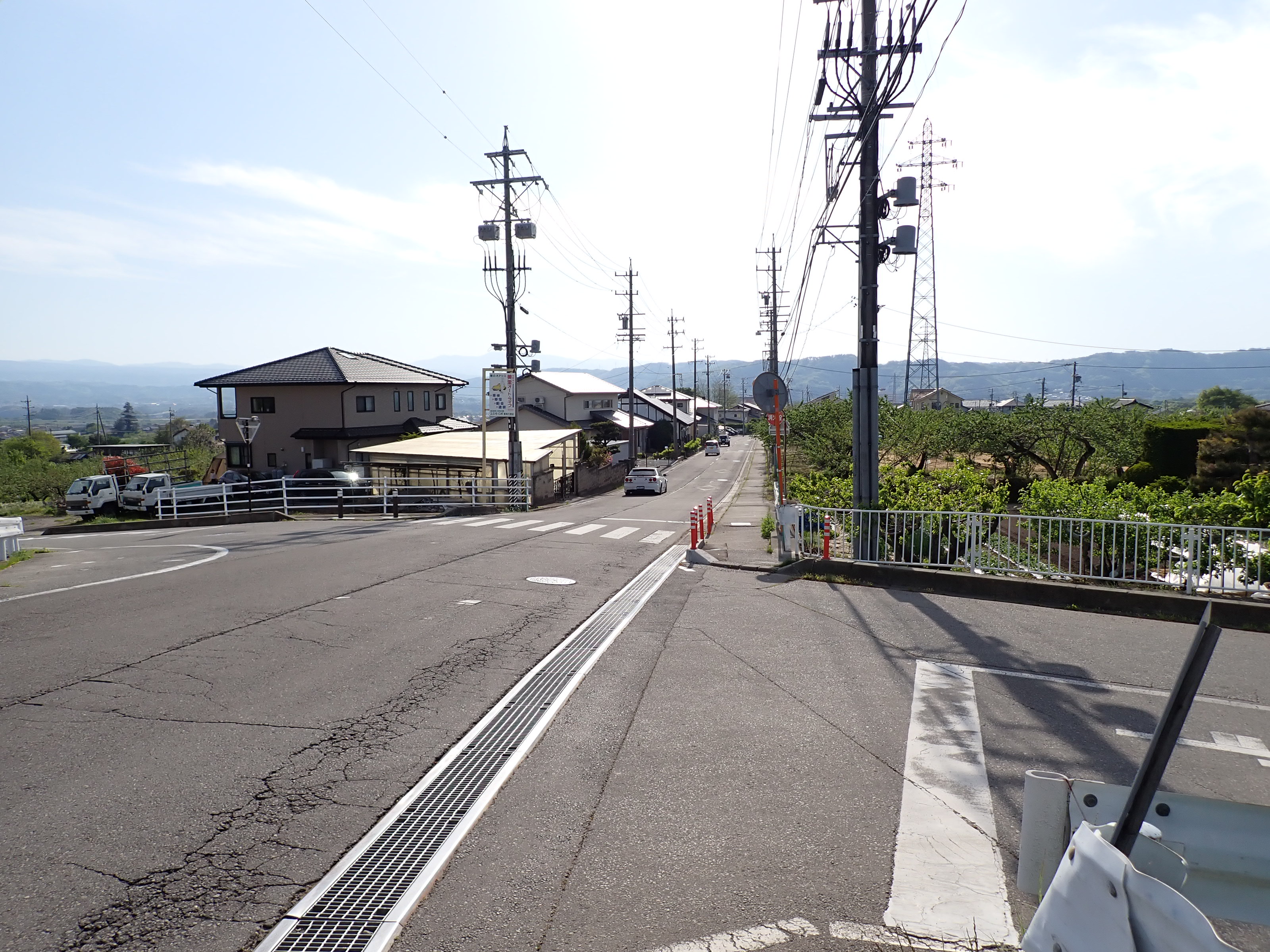 果樹園や住宅地などがあります。少しだけ進んで引き返します。
