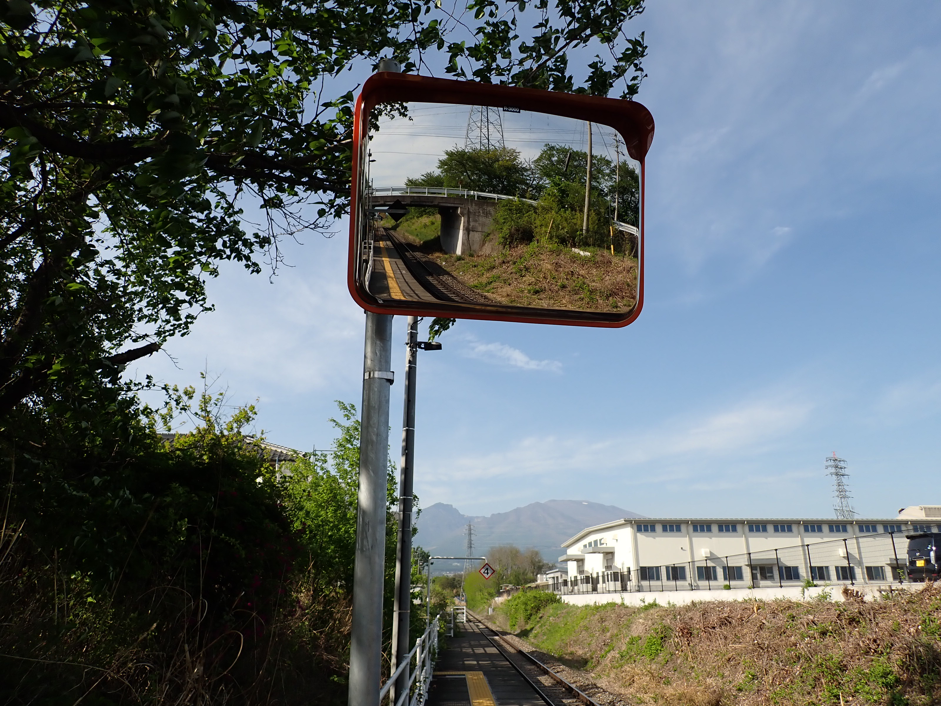 三岡駅側のワンマンミラー。2024年5月に撮っていますが、2024年2月製造の新しいものです。