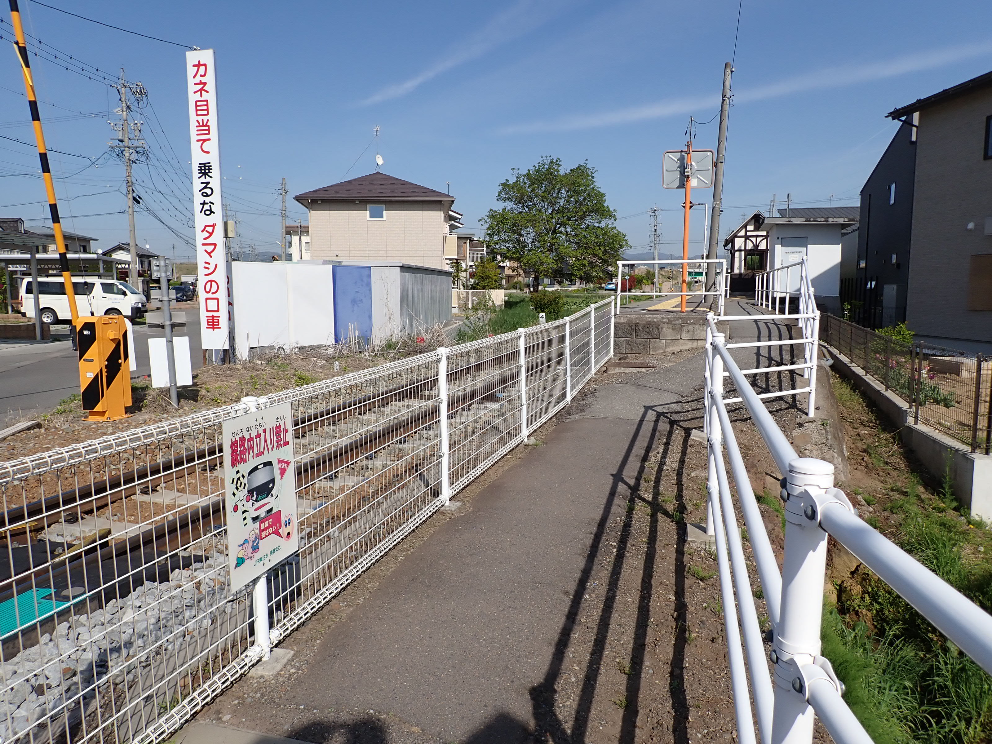 美里駅側の踏切付近へ進み、こちら側の出入口の前を通ります。