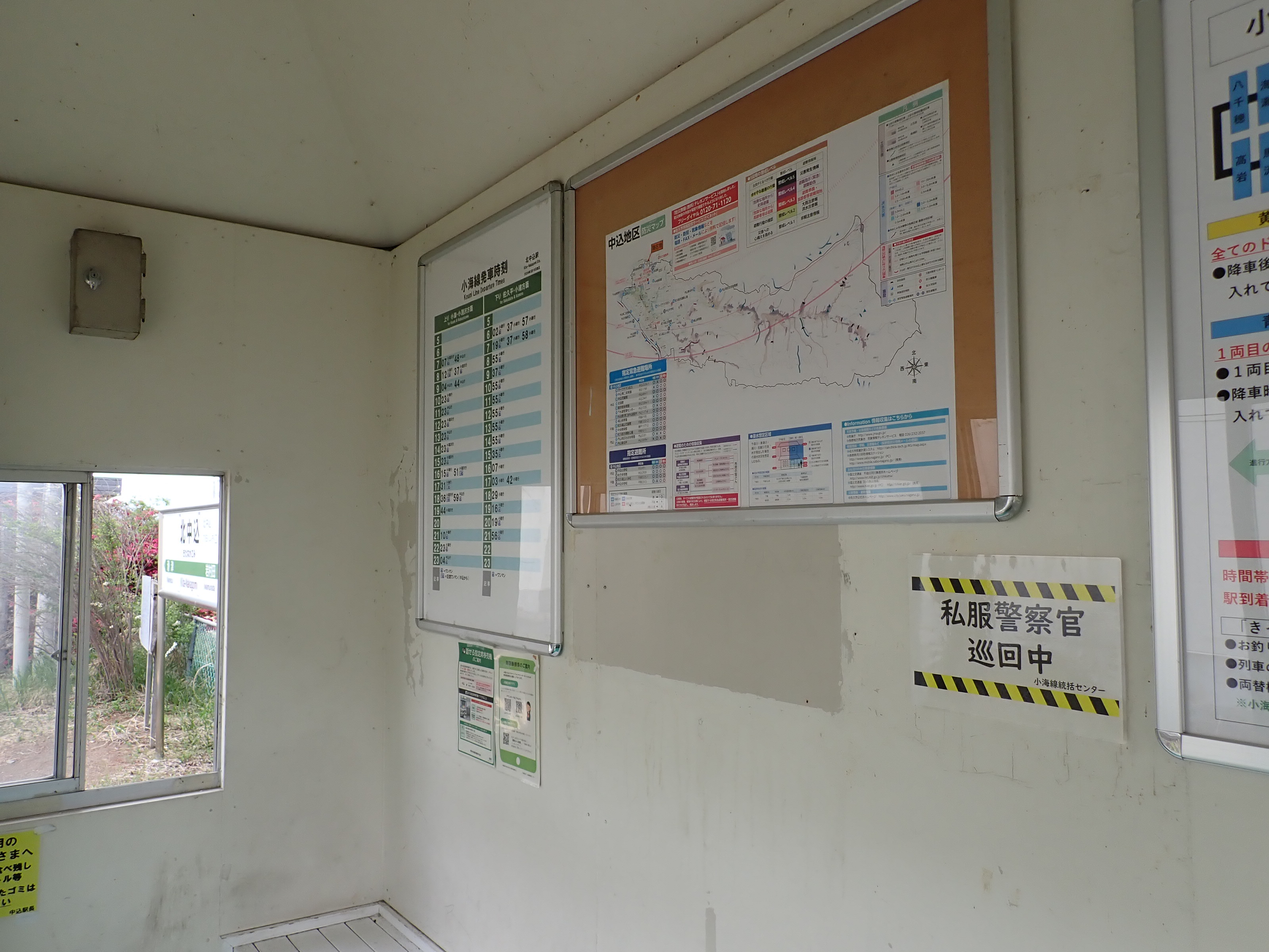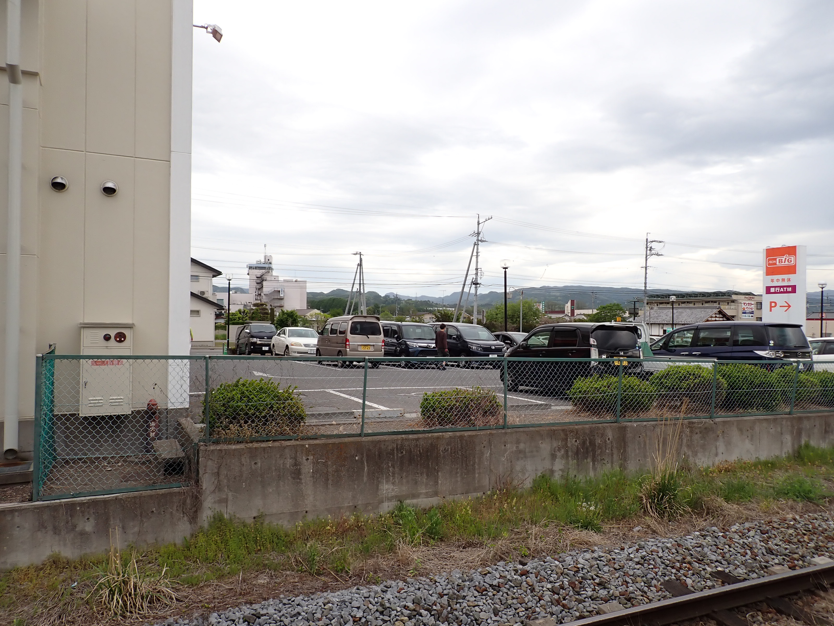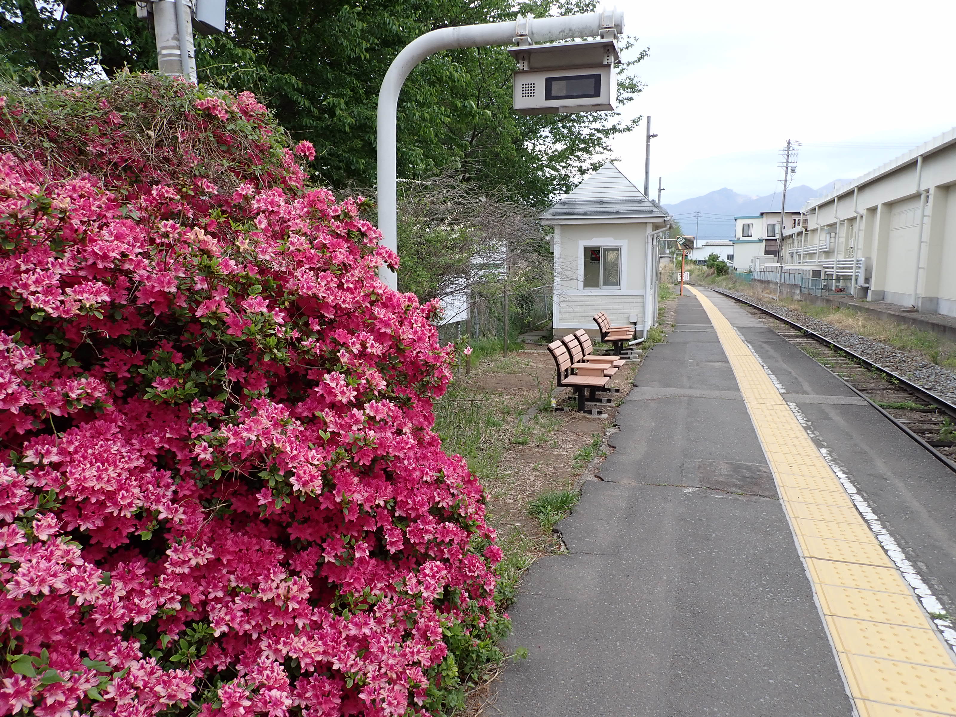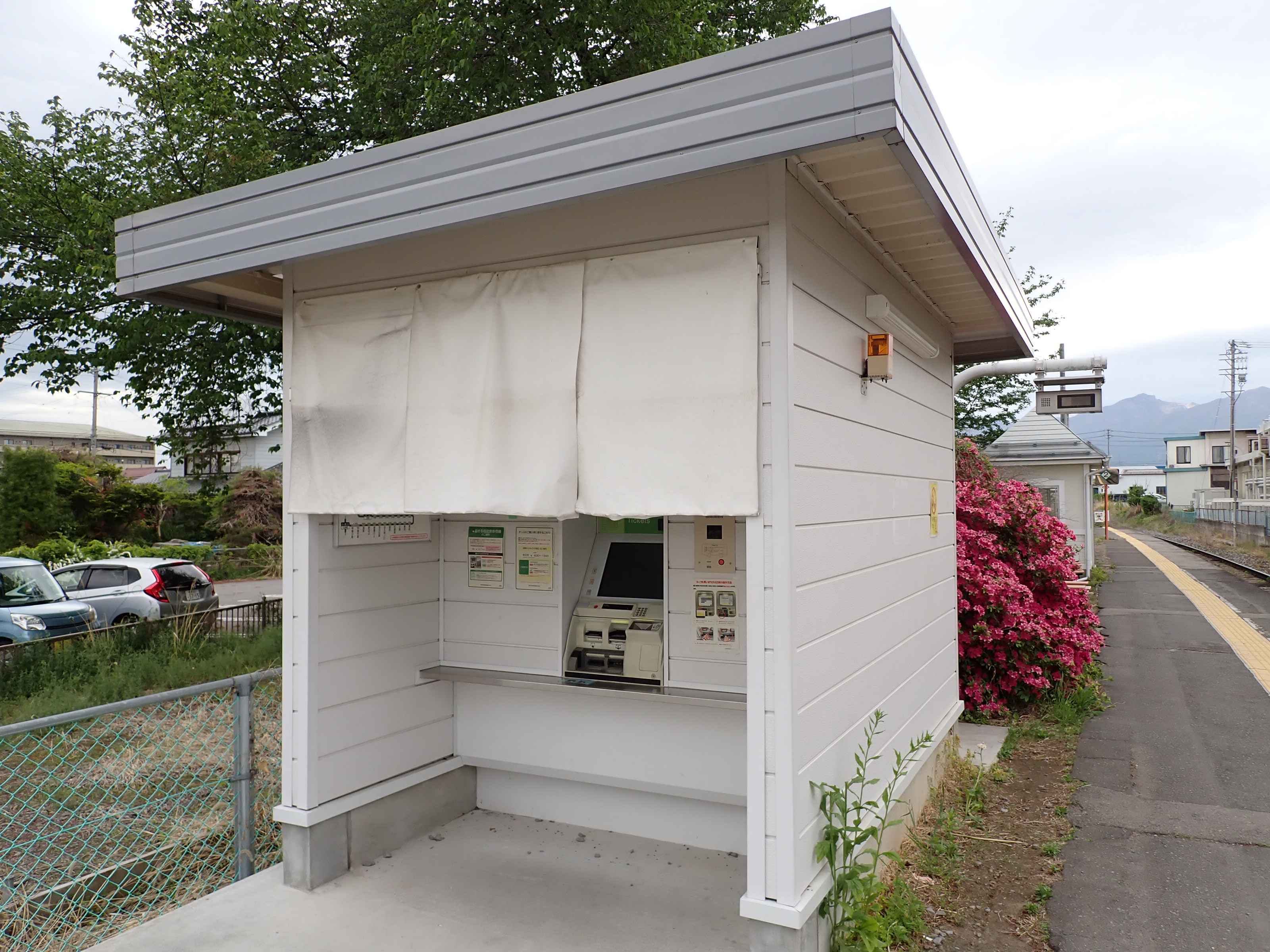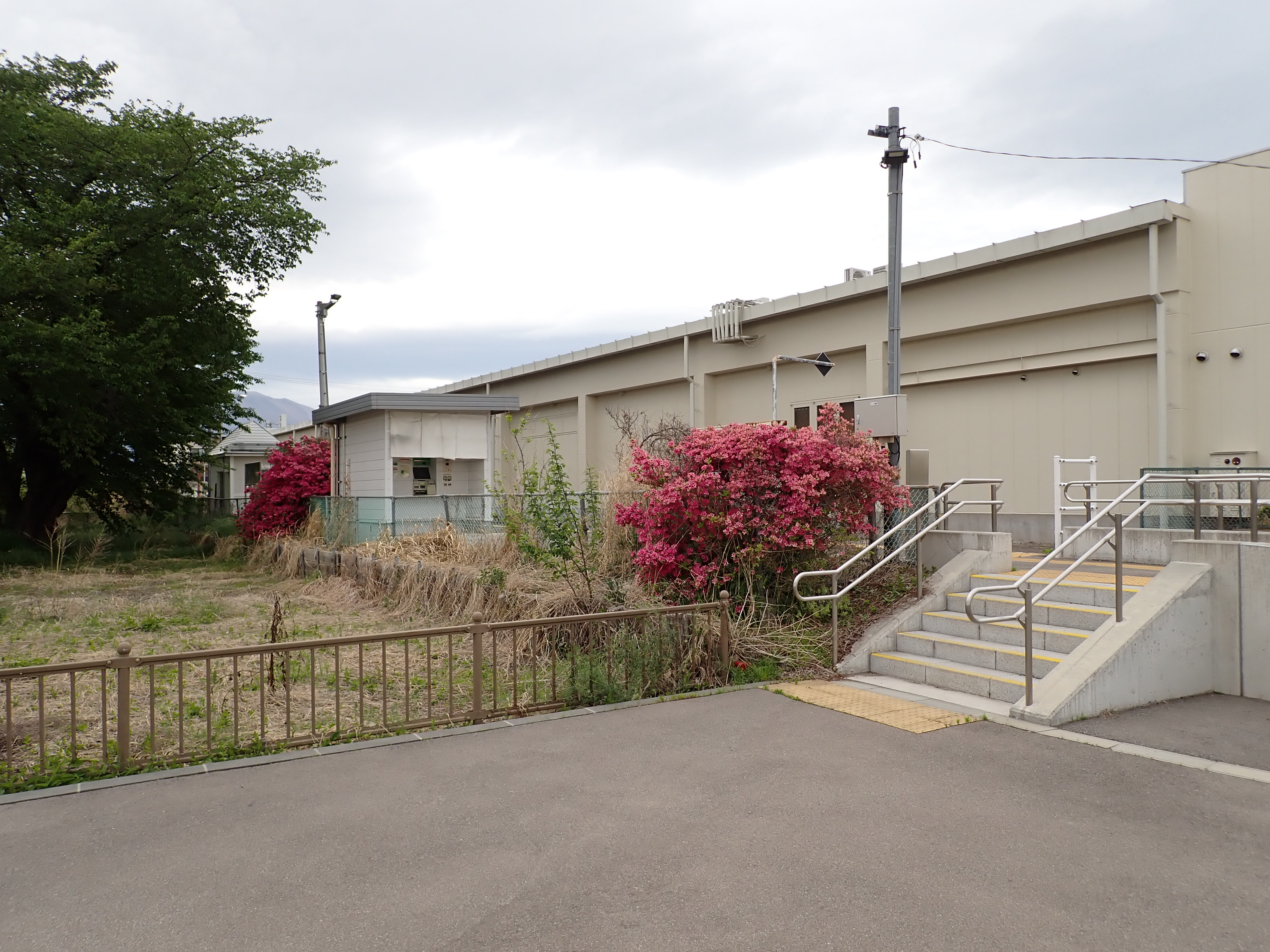 ホームの向かい側はショッピングセンターで、その他にもロードサイド型の店が駅のそばにあります。公園のような雰囲気の広い駅前広場があります。この駅から滑津駅方向に進んで行くと佐久市役所があります。