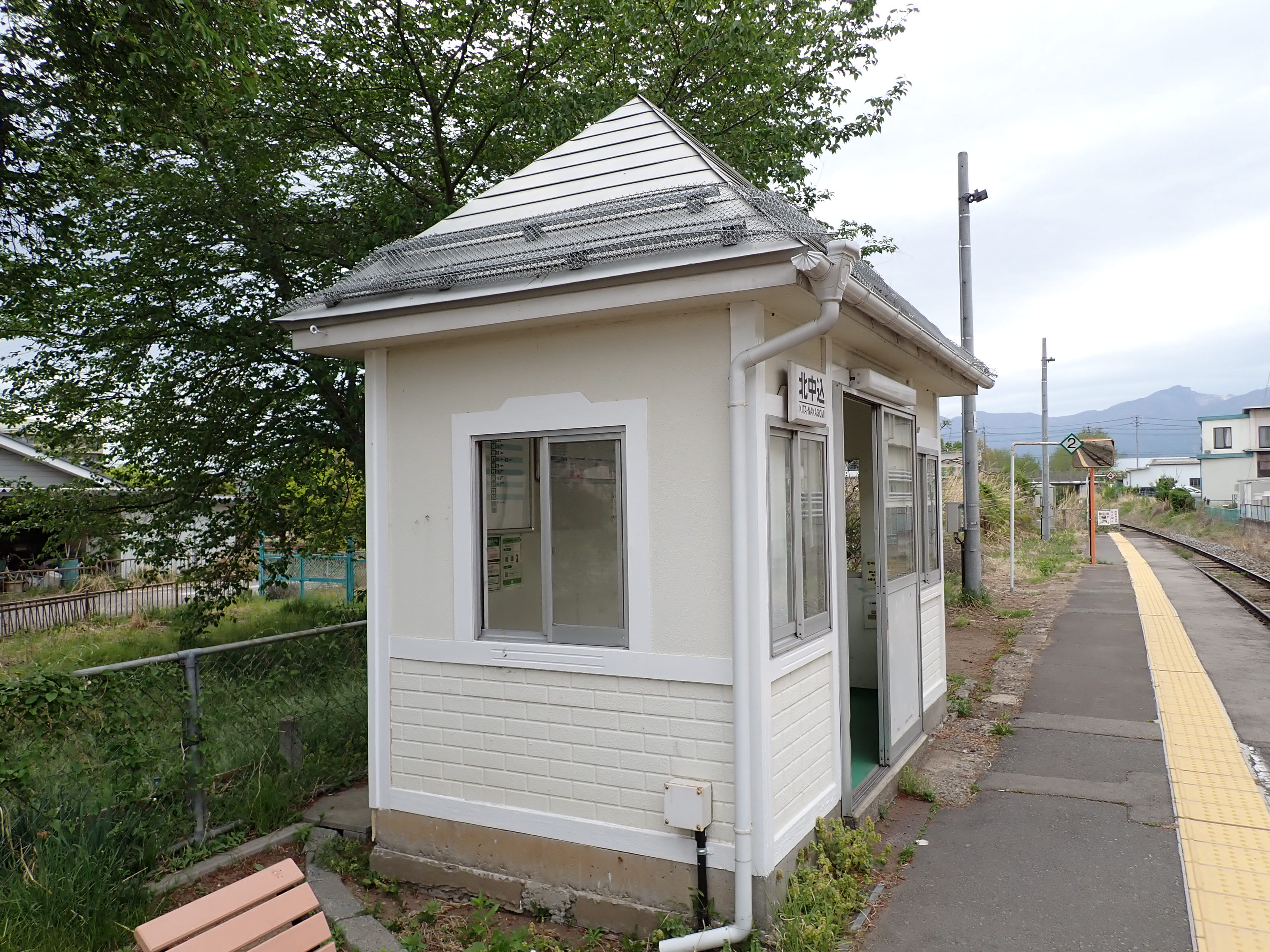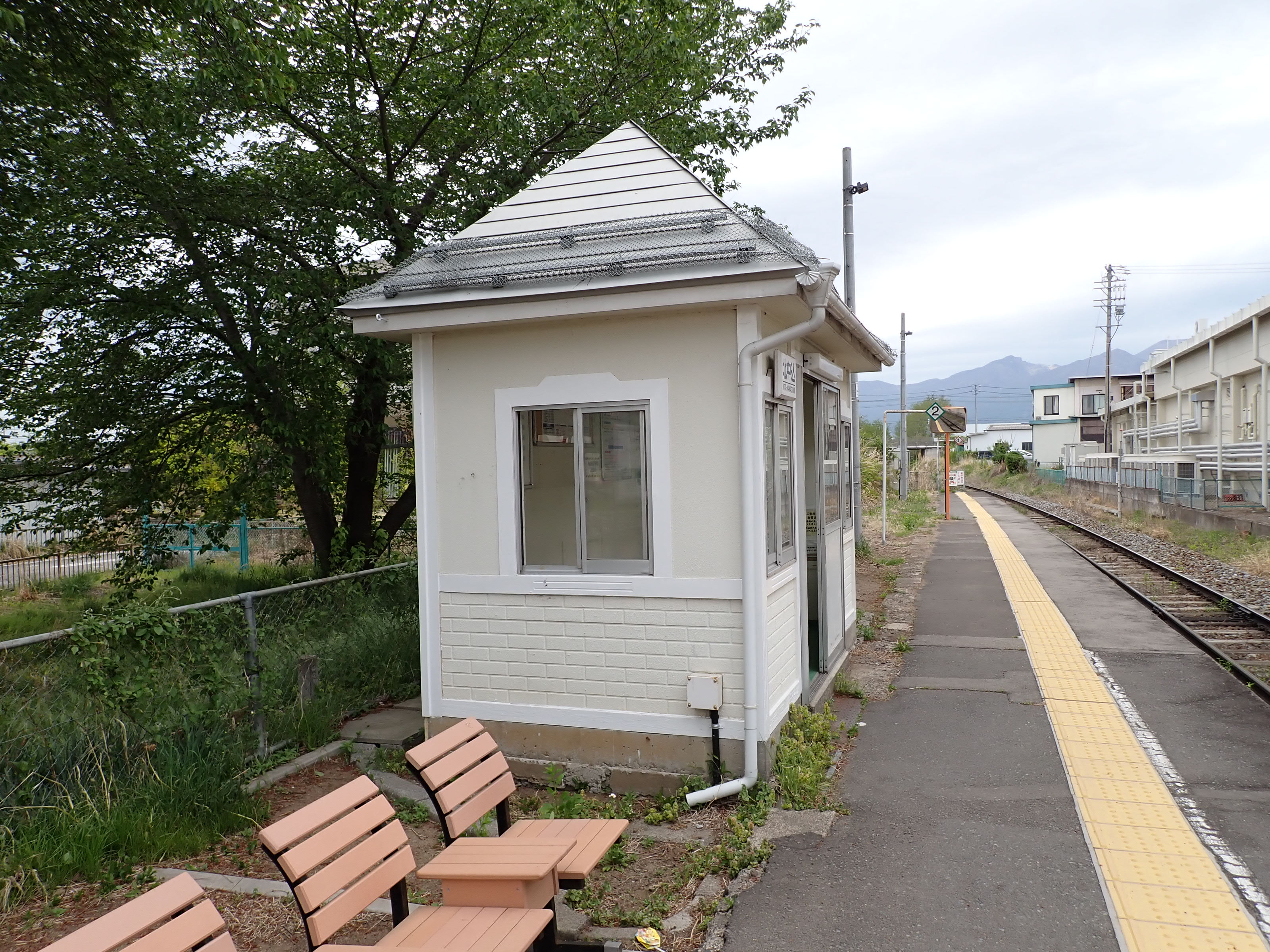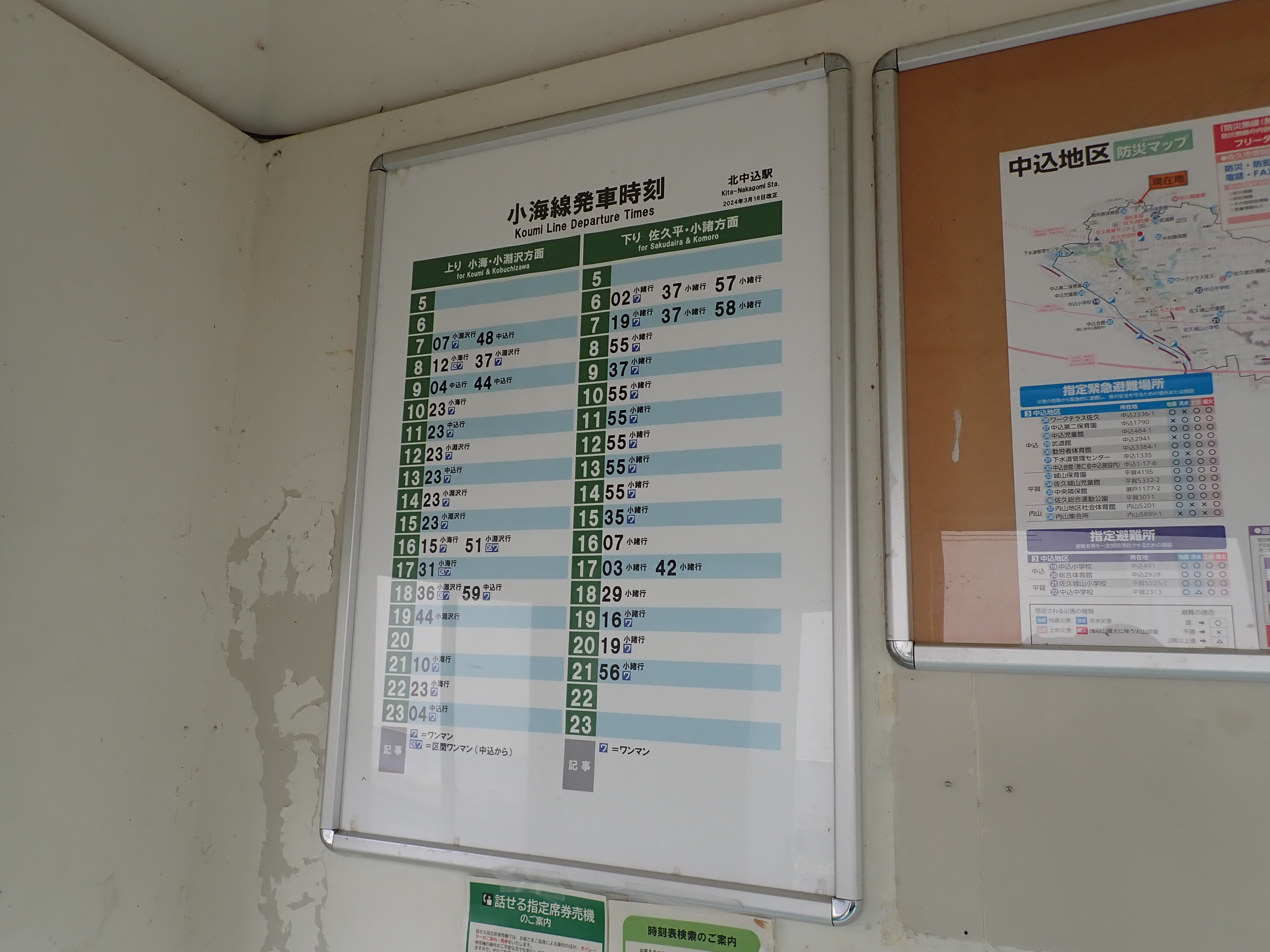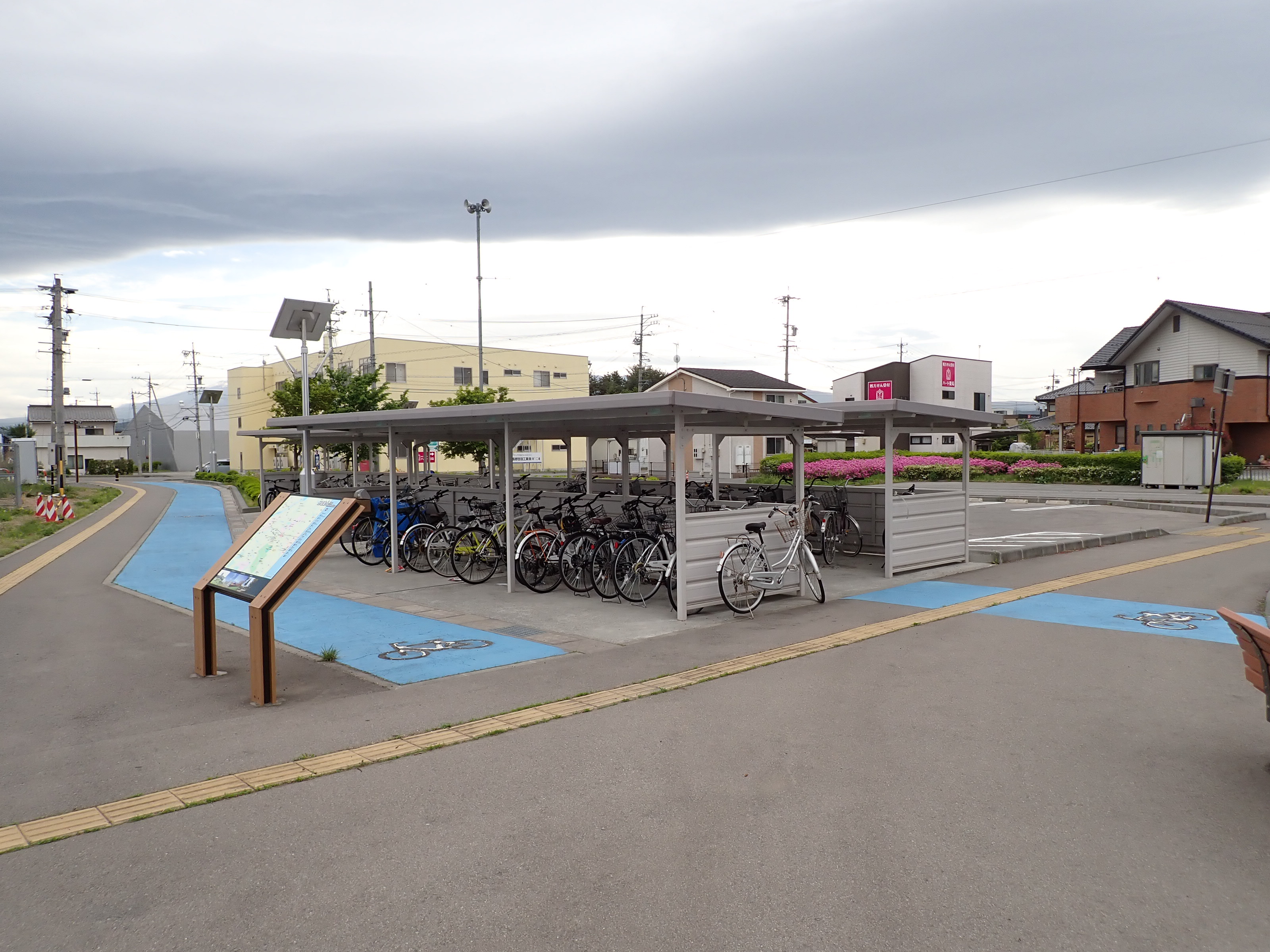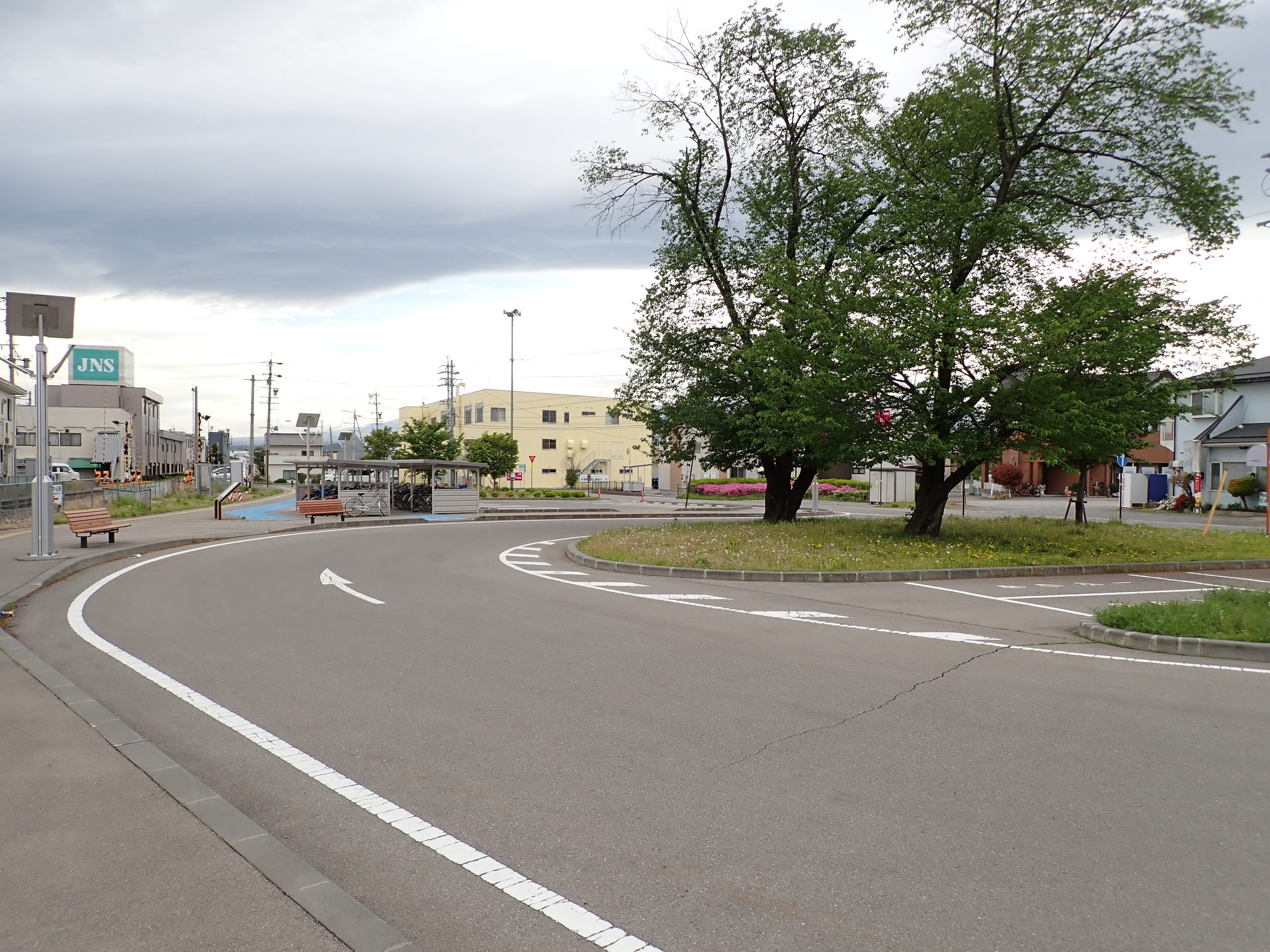 ホームの向かい側はショッピングセンターで、その他にもロードサイド型の店が駅のそばにあります。公園のような雰囲気の広い駅前広場があります。この駅から滑津駅方向に進んで行くと佐久市役所があります。