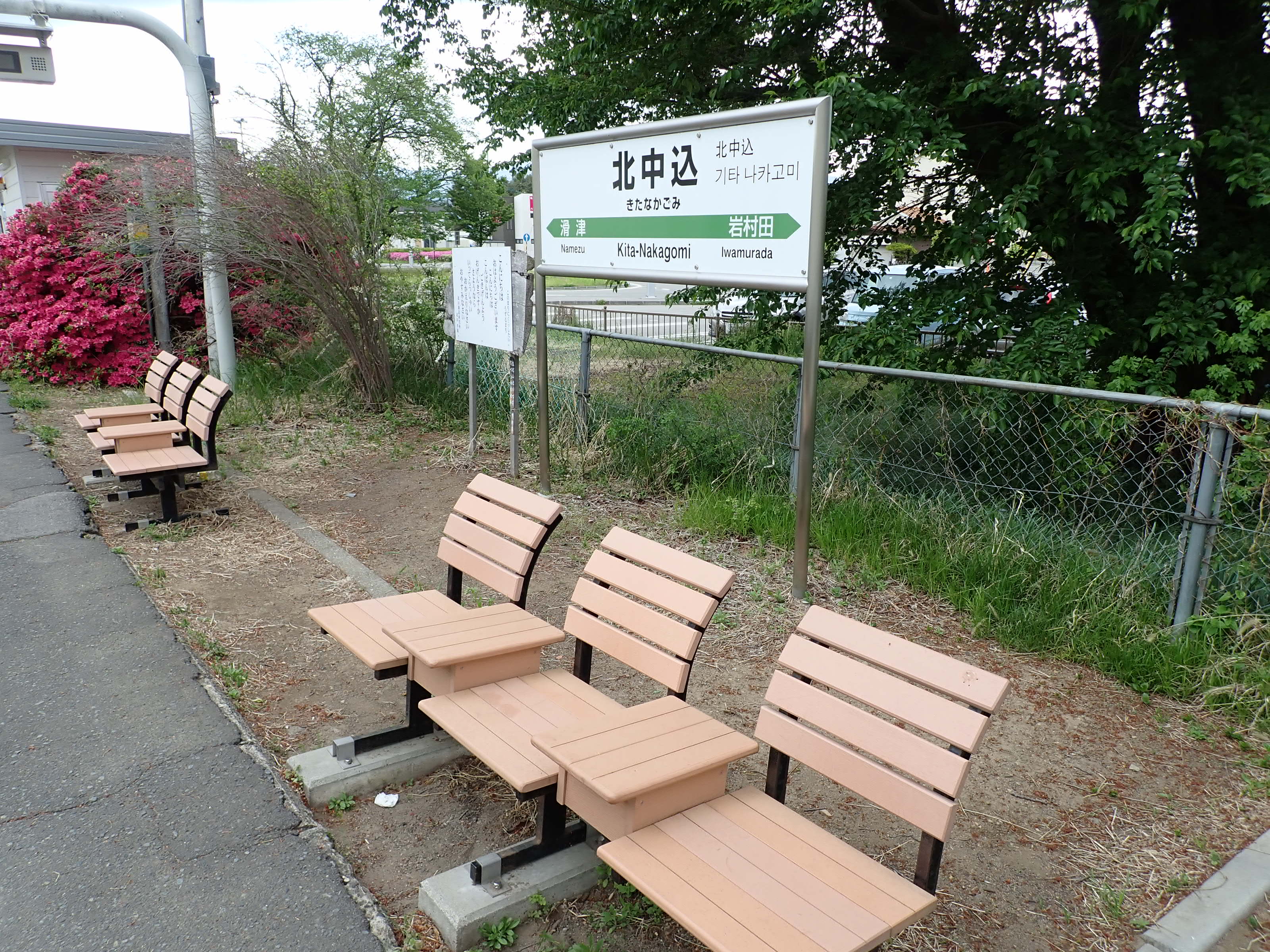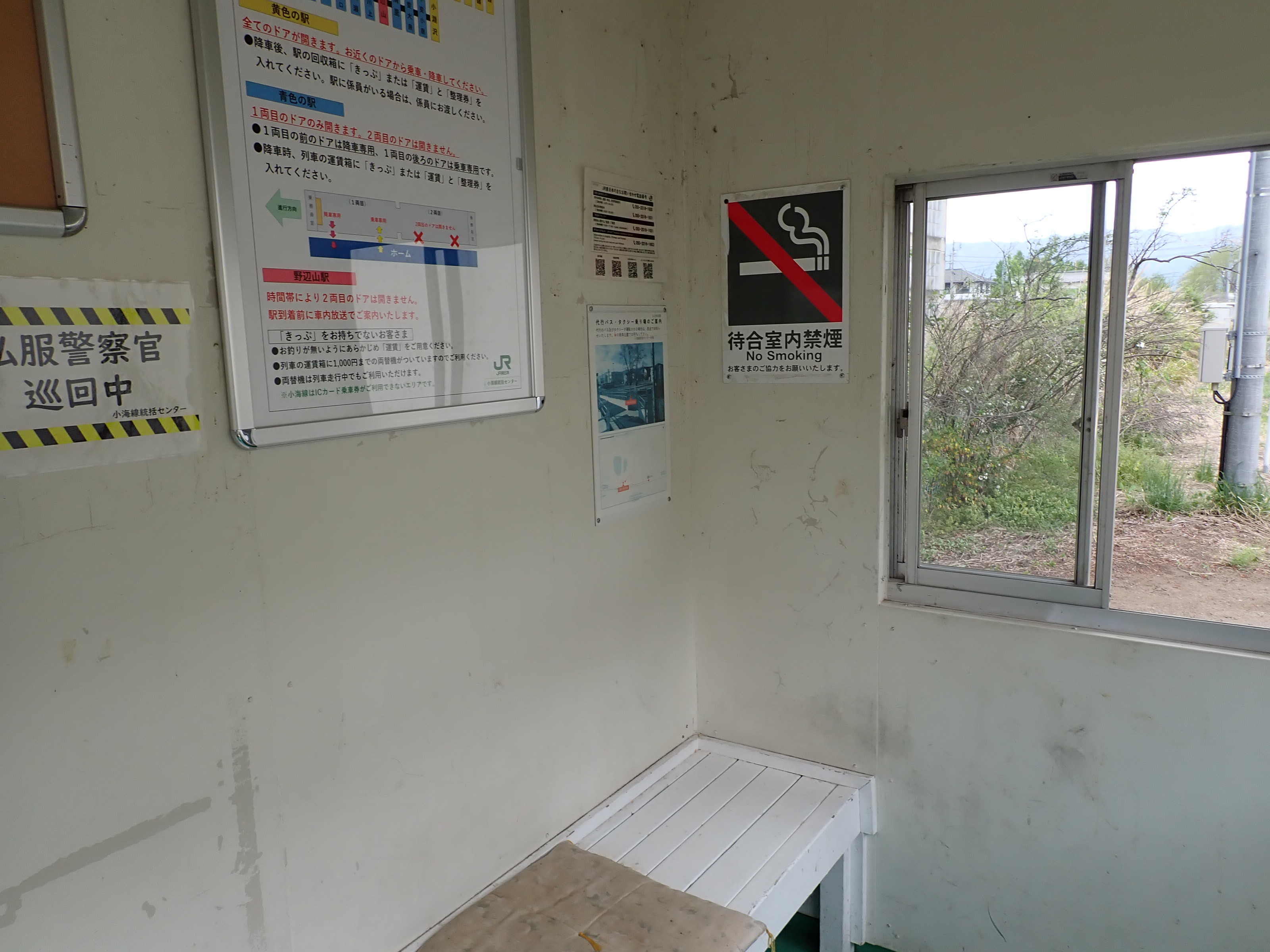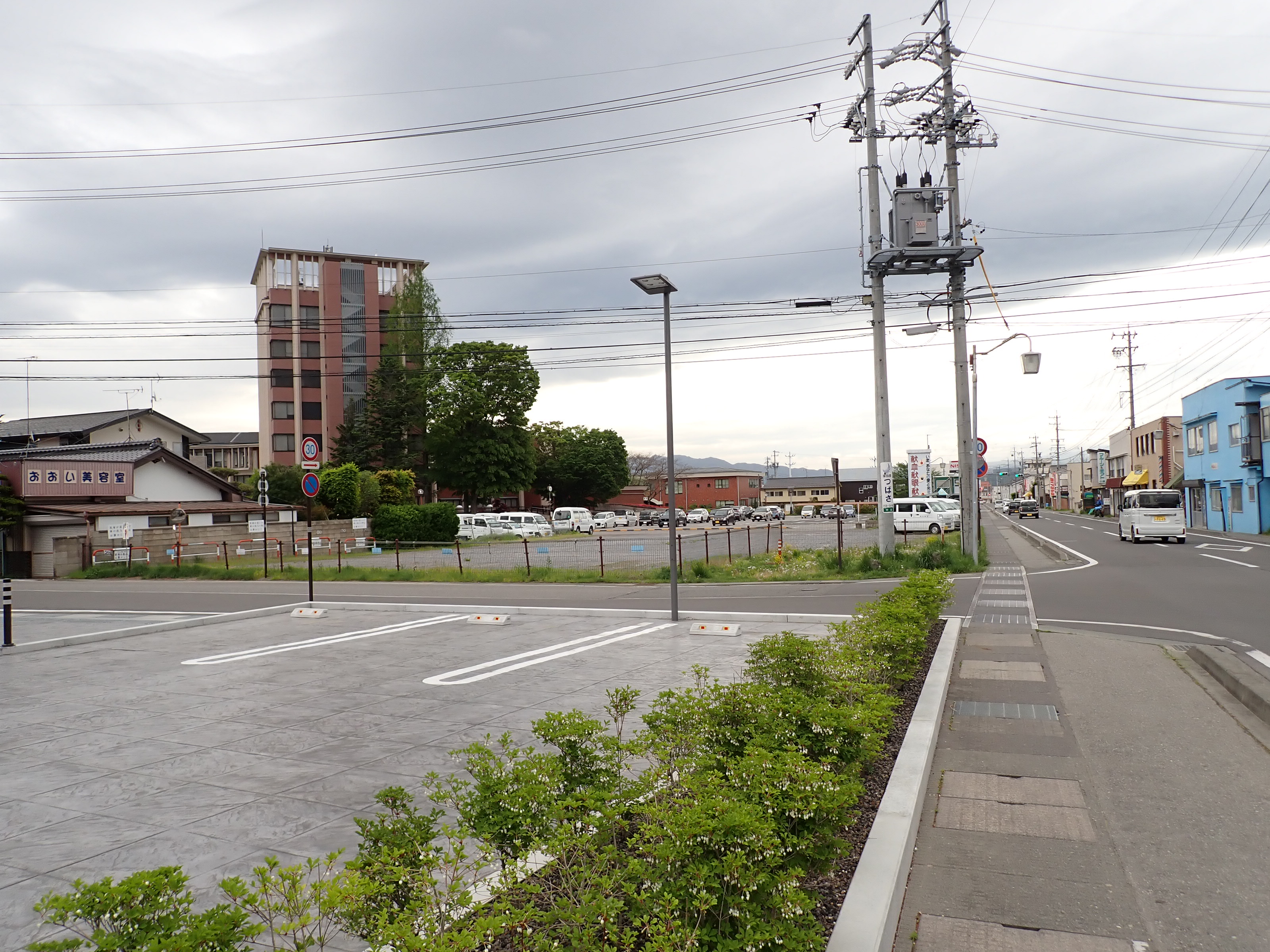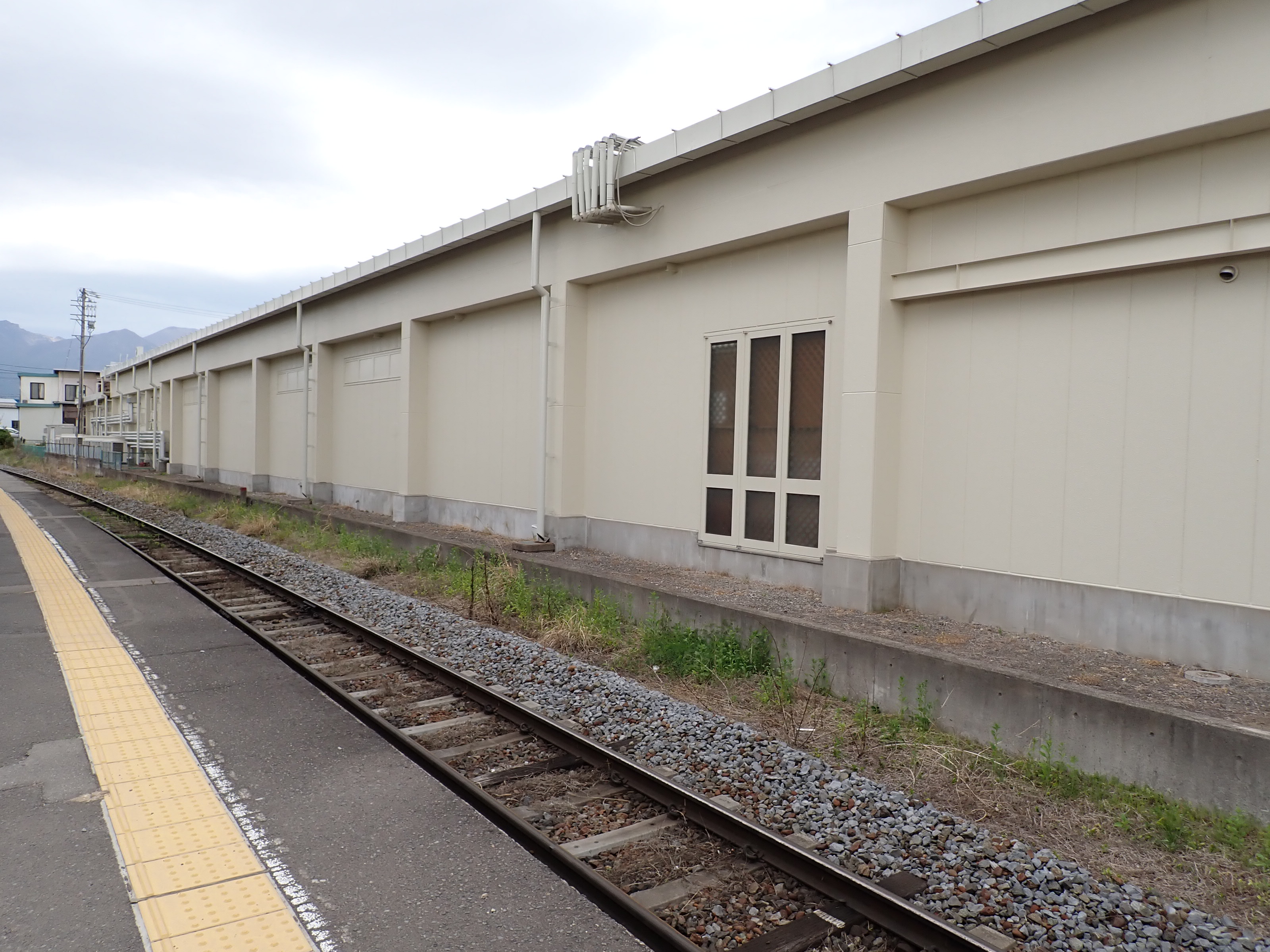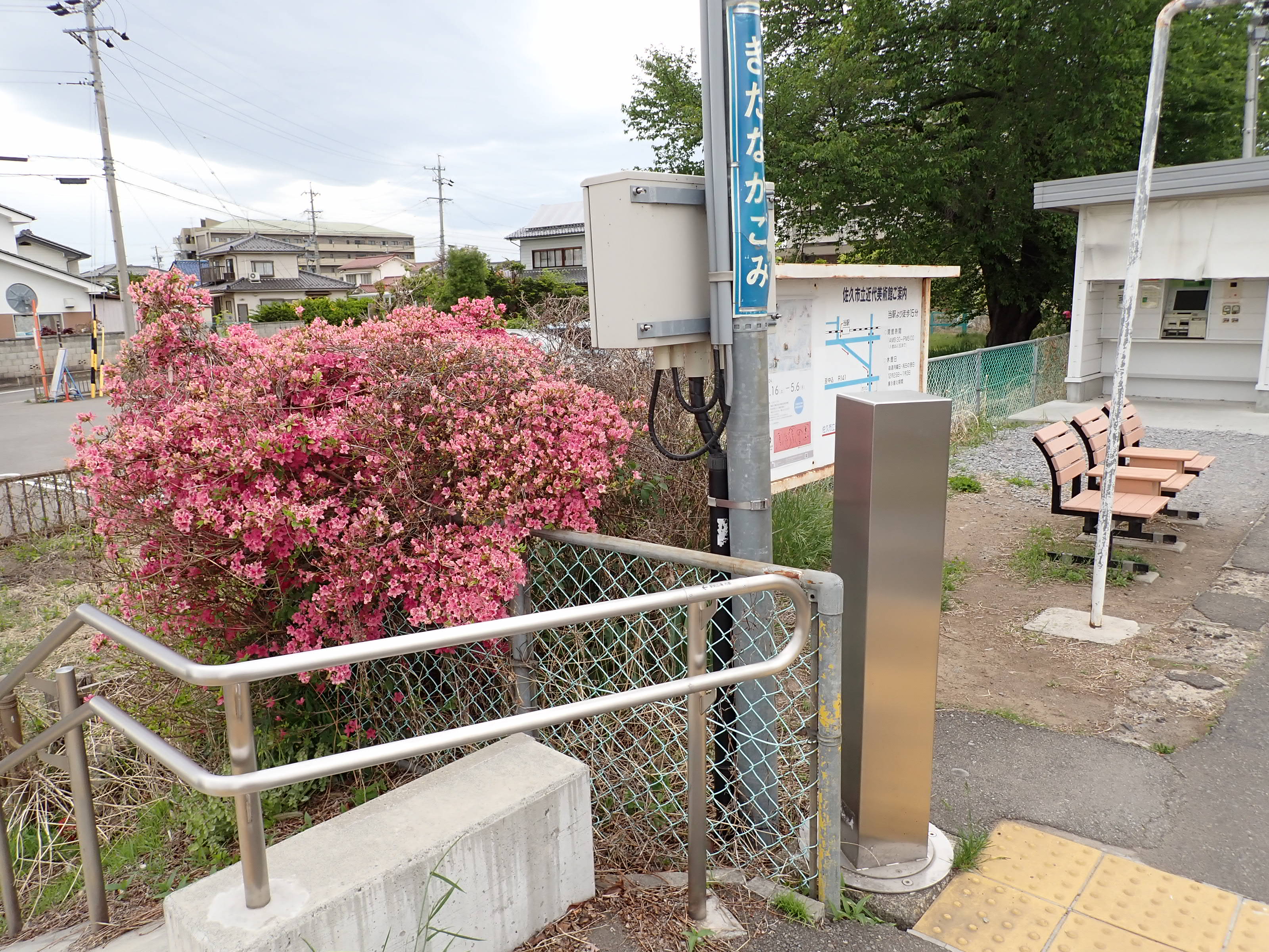 ホームの向かい側はショッピングセンターで、その他にもロードサイド型の店が駅のそばにあります。公園のような雰囲気の広い駅前広場があります。この駅から滑津駅方向に進んで行くと佐久市役所があります。