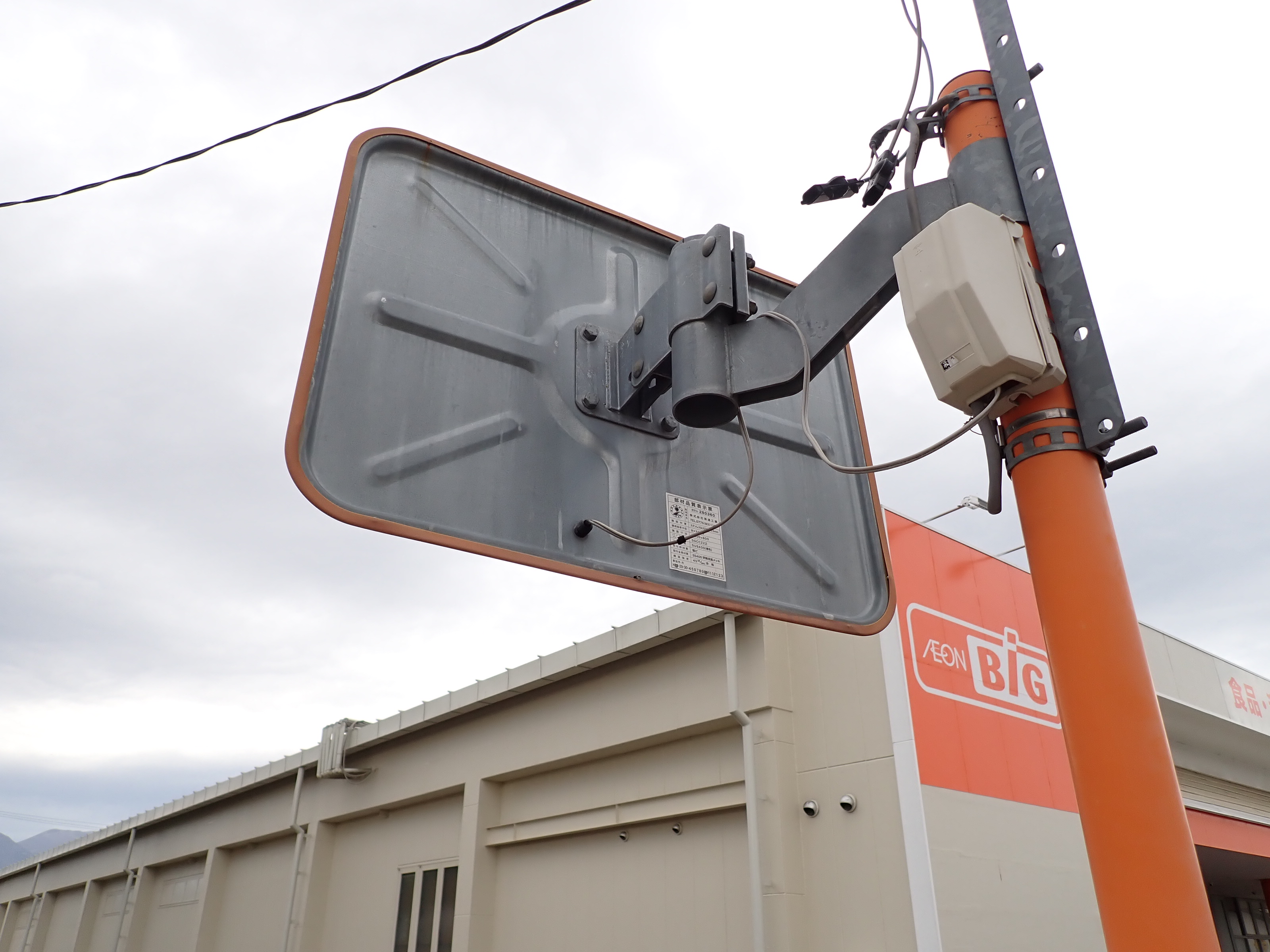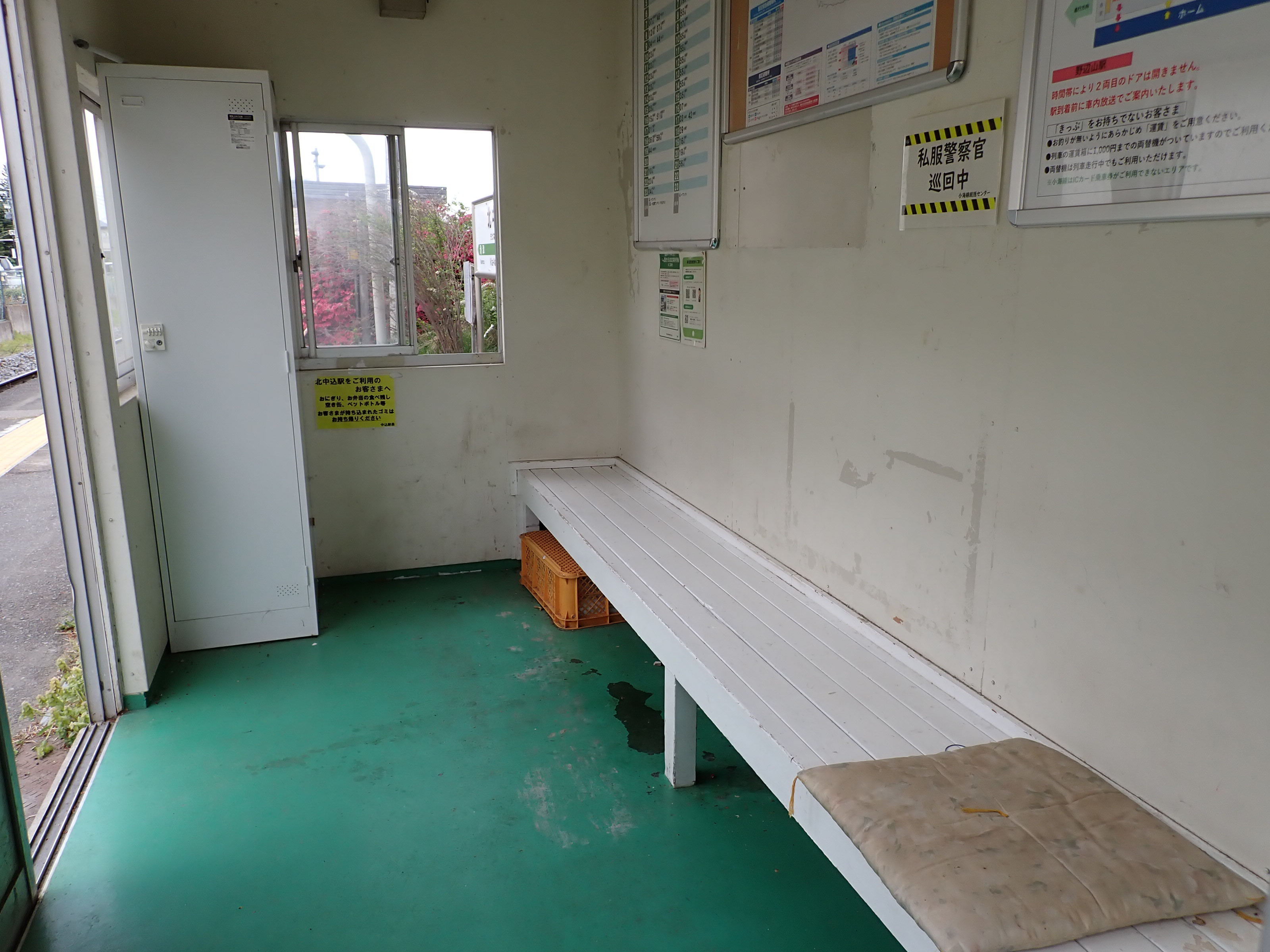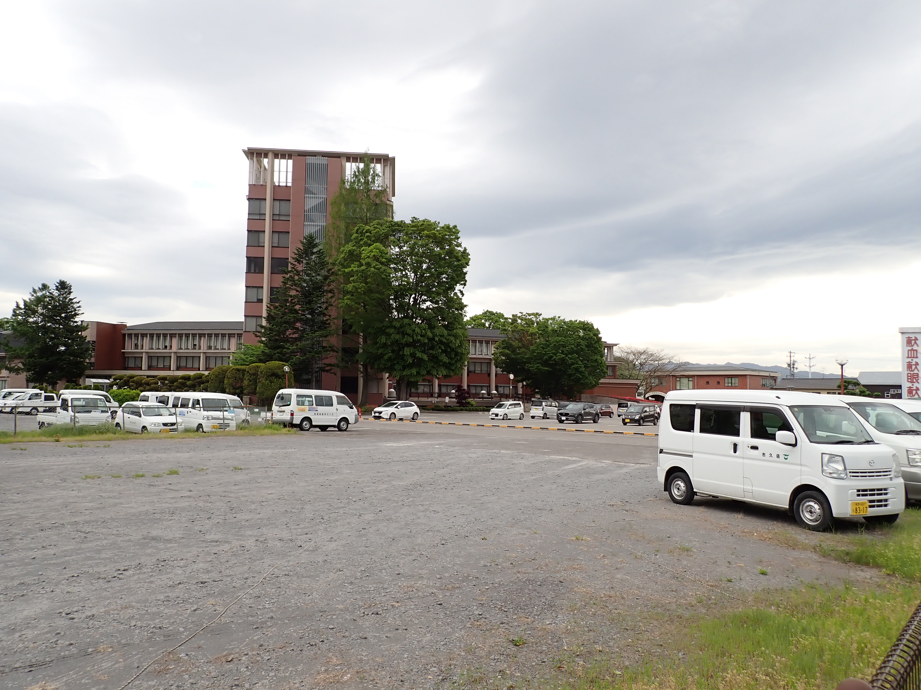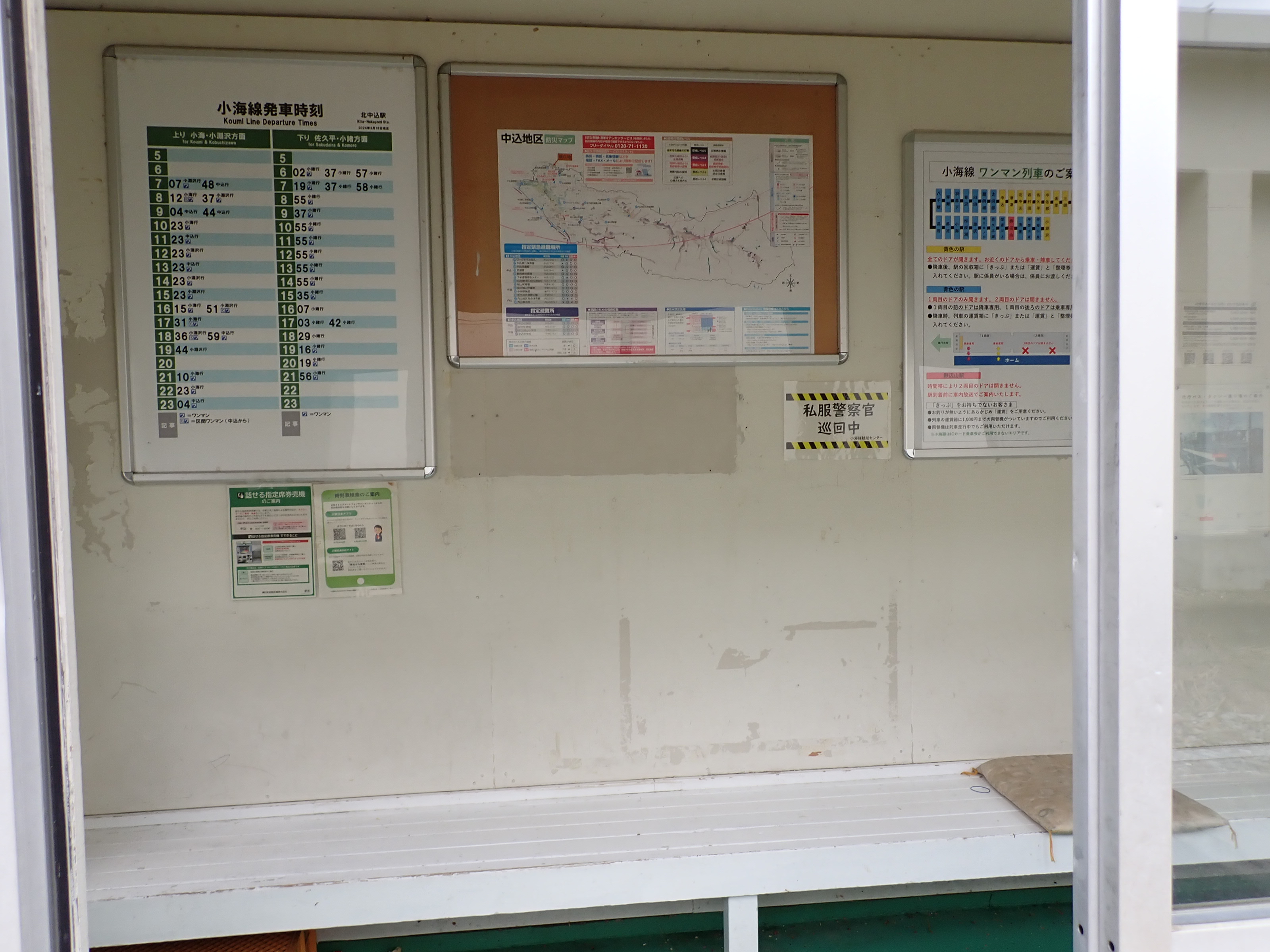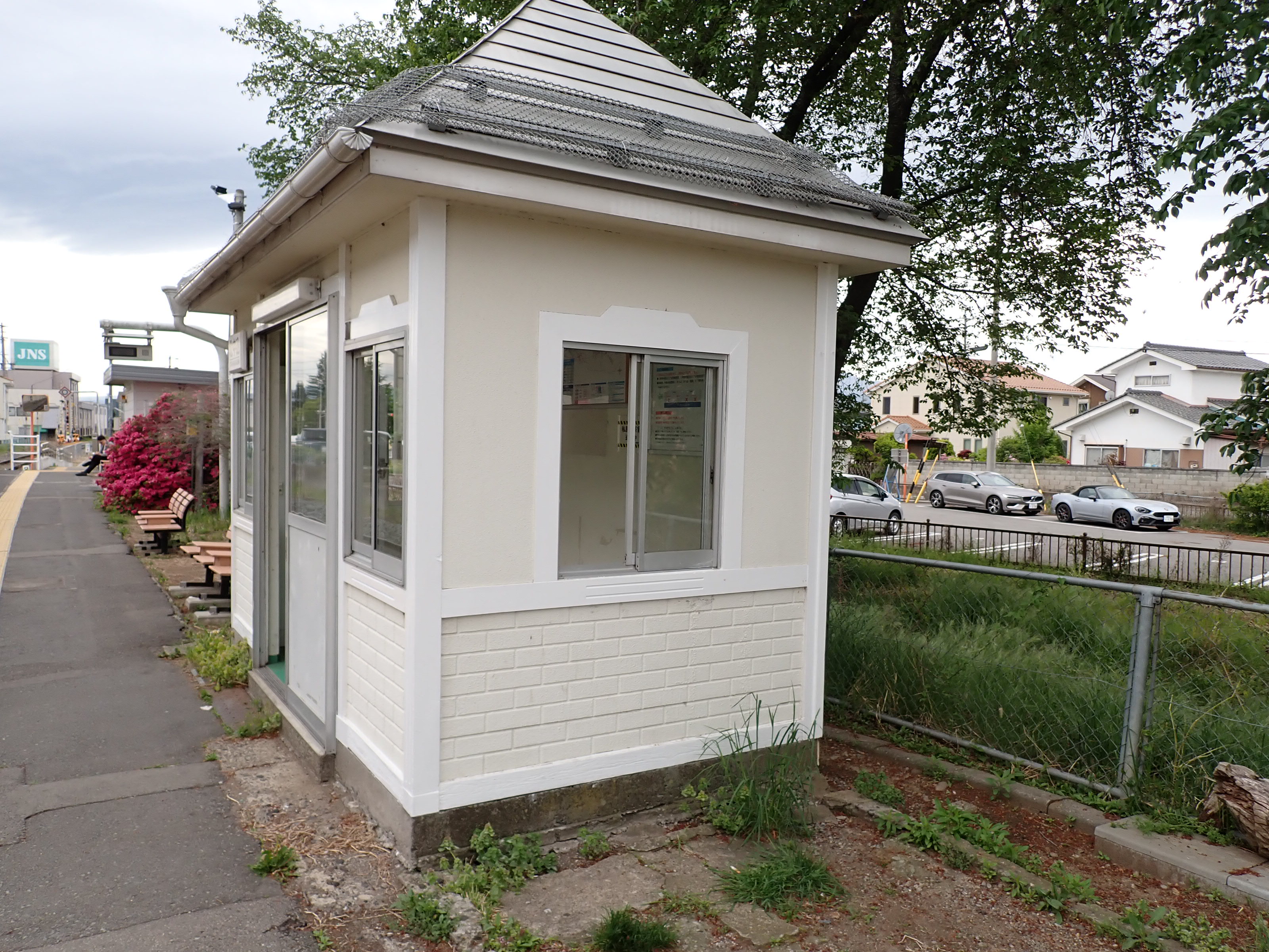 ホームの向かい側はショッピングセンターで、その他にもロードサイド型の店が駅のそばにあります。公園のような雰囲気の広い駅前広場があります。この駅から滑津駅方向に進んで行くと佐久市役所があります。
