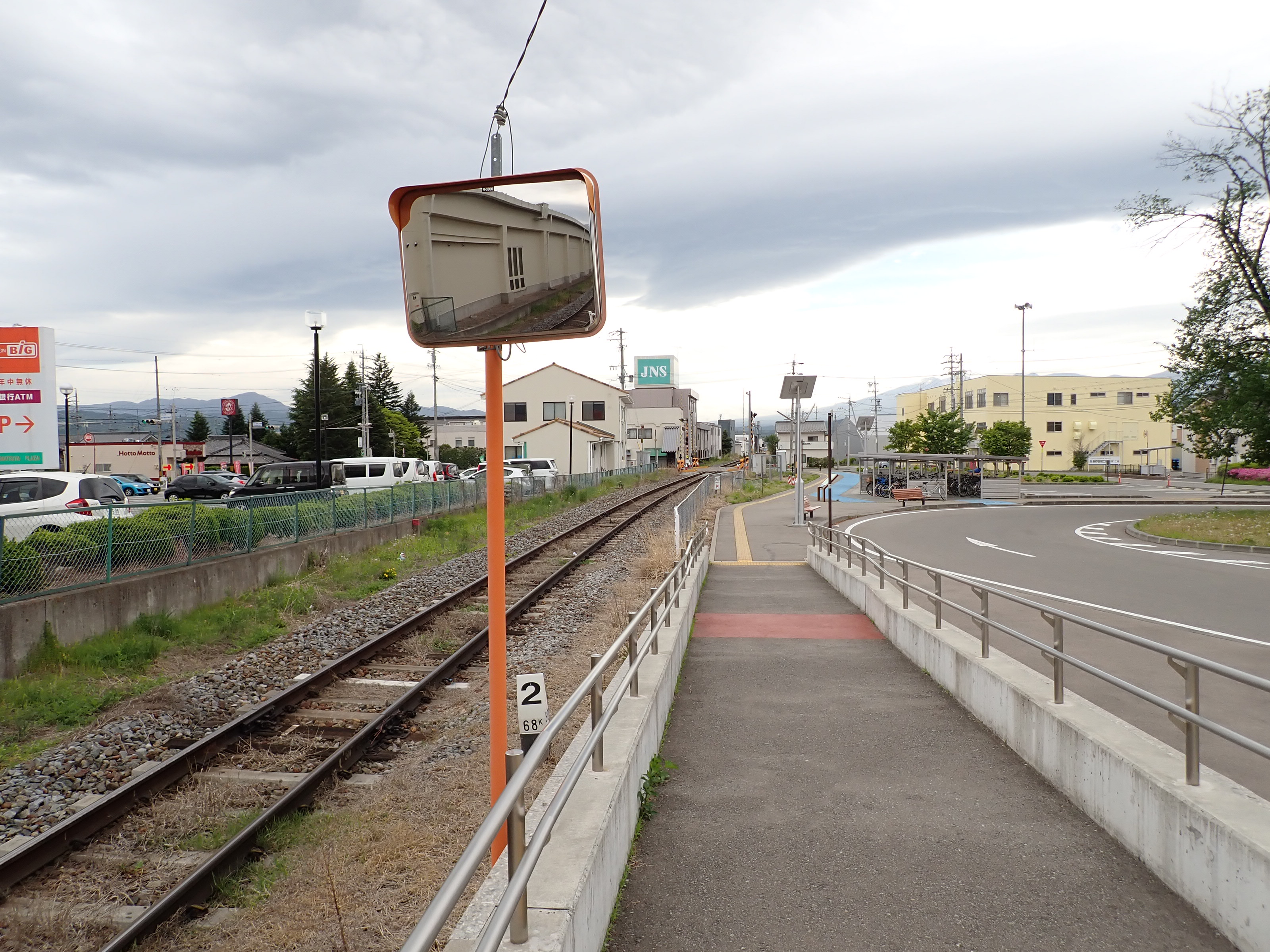 戻りは早めに踏切を渡り、線路沿いの道を進みます。