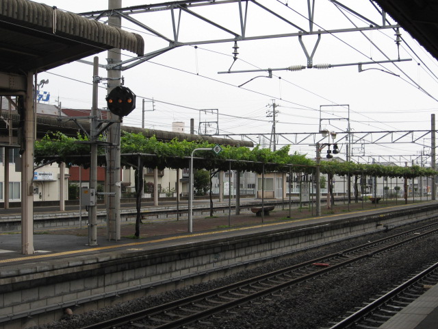 1・2番線から見た3・4番線の上屋付近とぶどう園。