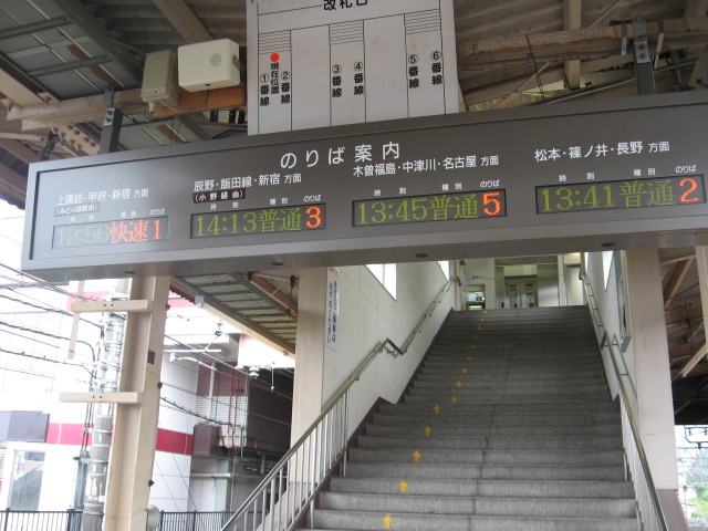 1・2番線から階段へ上がって行くところ。乗換の案内表示器がありました。