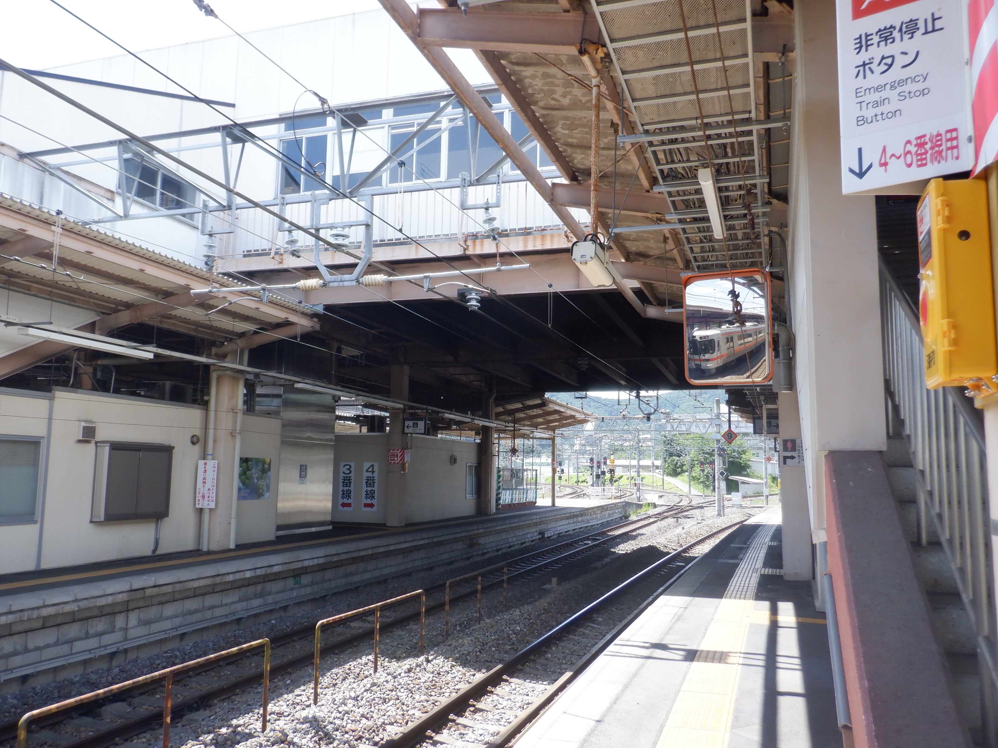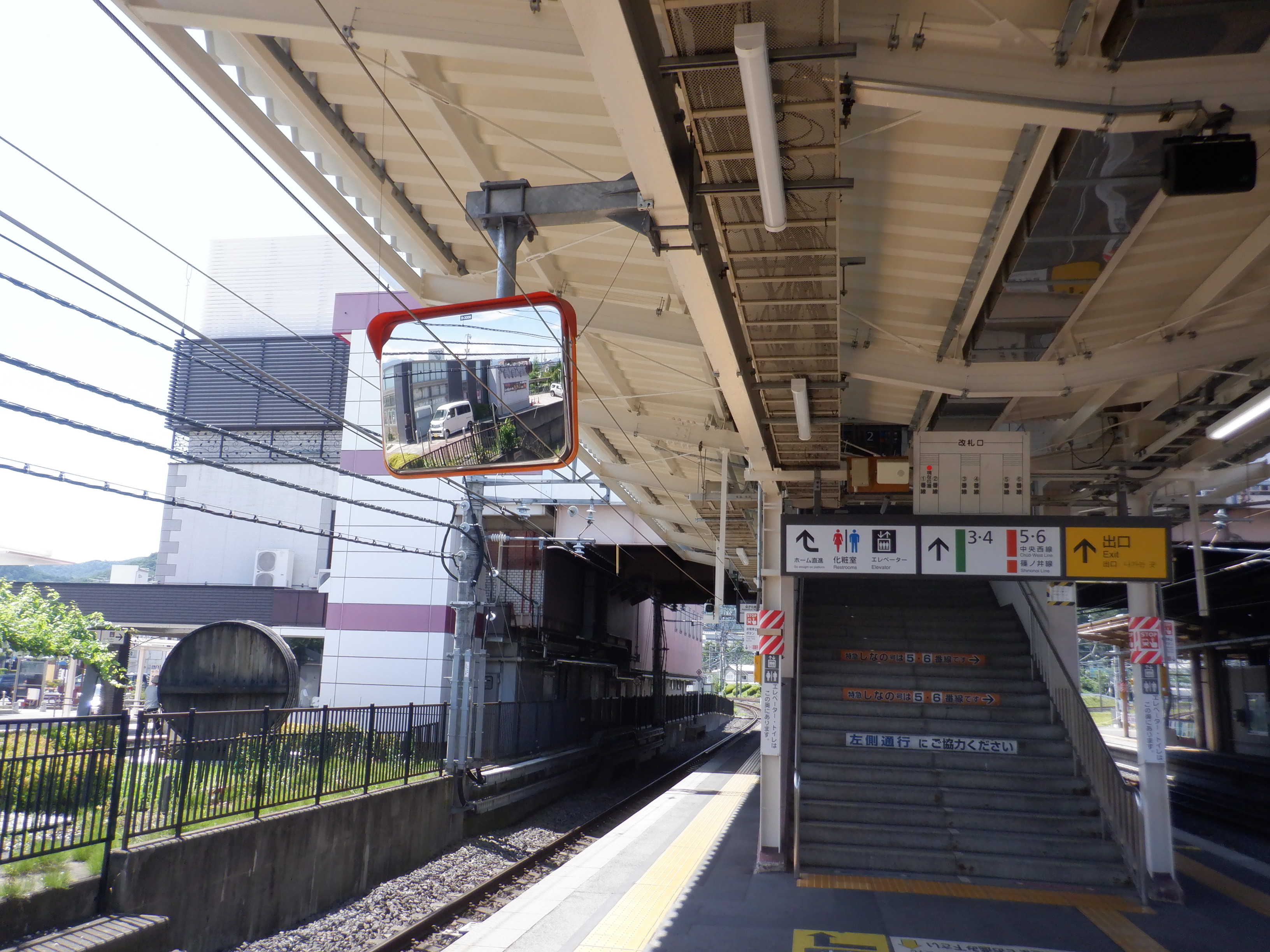 3・4番線の広丘駅側のワンマンミラー。