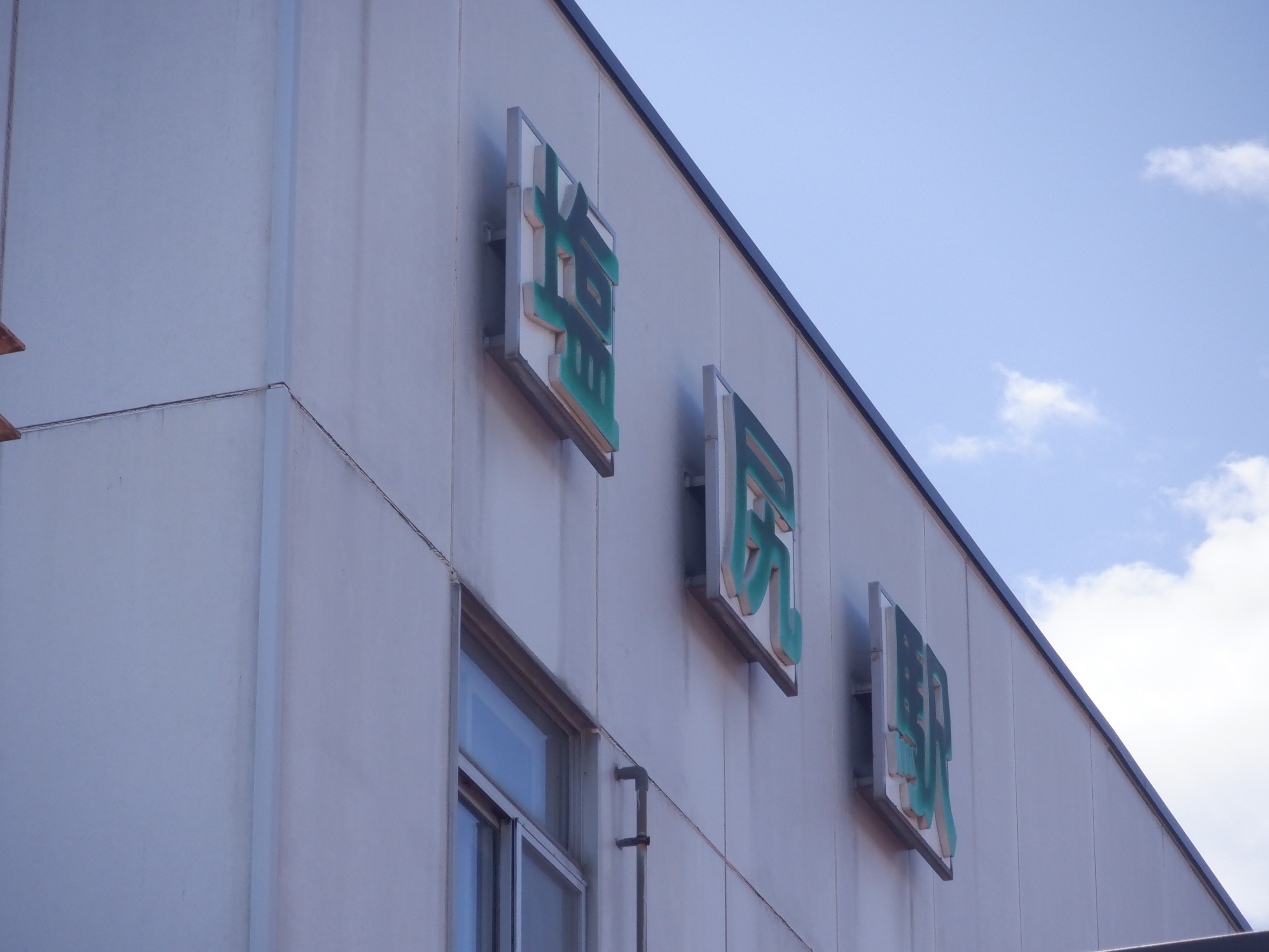 駅名標と駅舎。