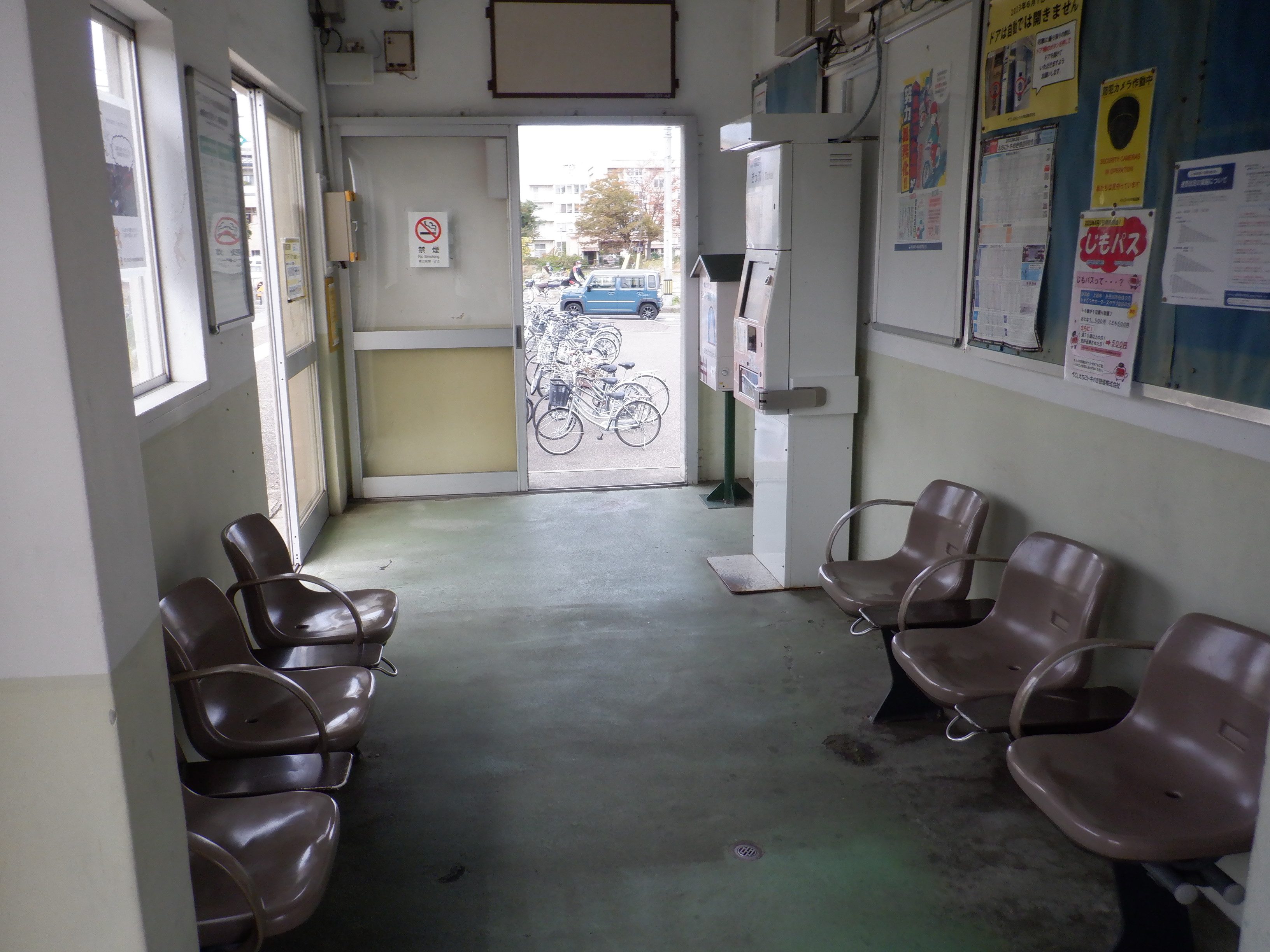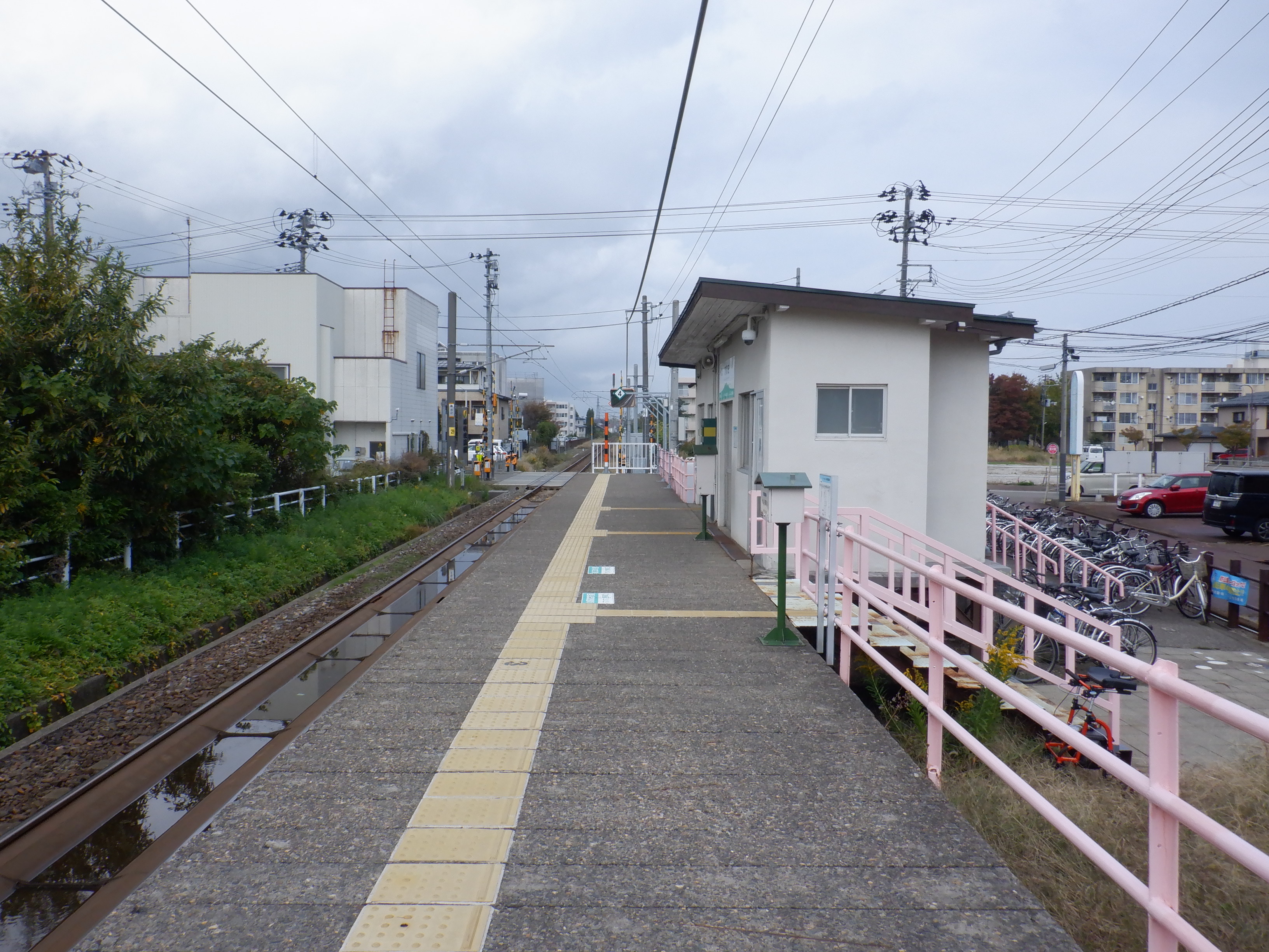 市街地にある棒線駅で、駅舎というよりも少し大きめの待合室には列車が来る時間帯になると多くの人が集まってきます。2024年4月よりネーミングライツによる副駅名として「有沢製作所前」が追加されています。