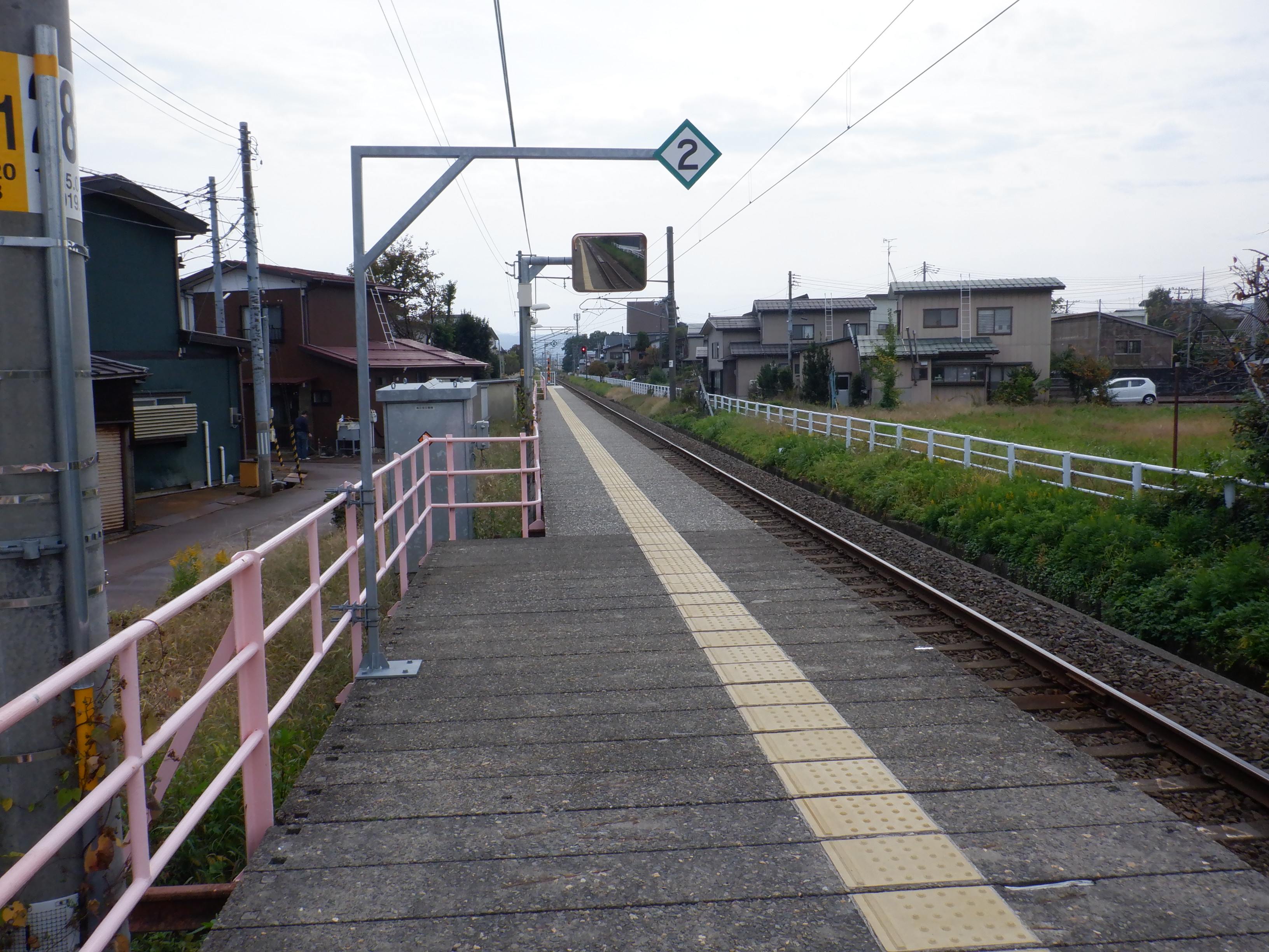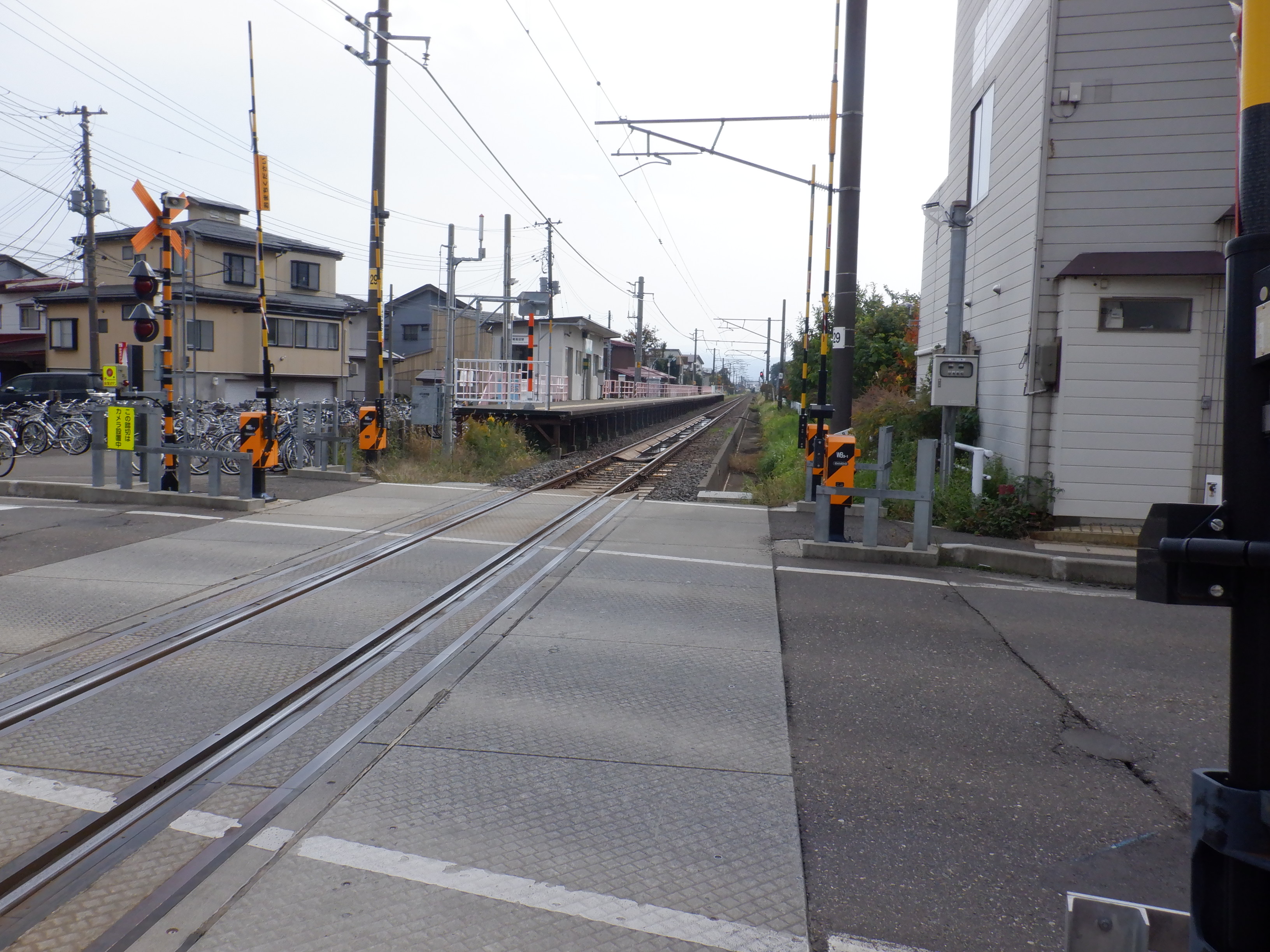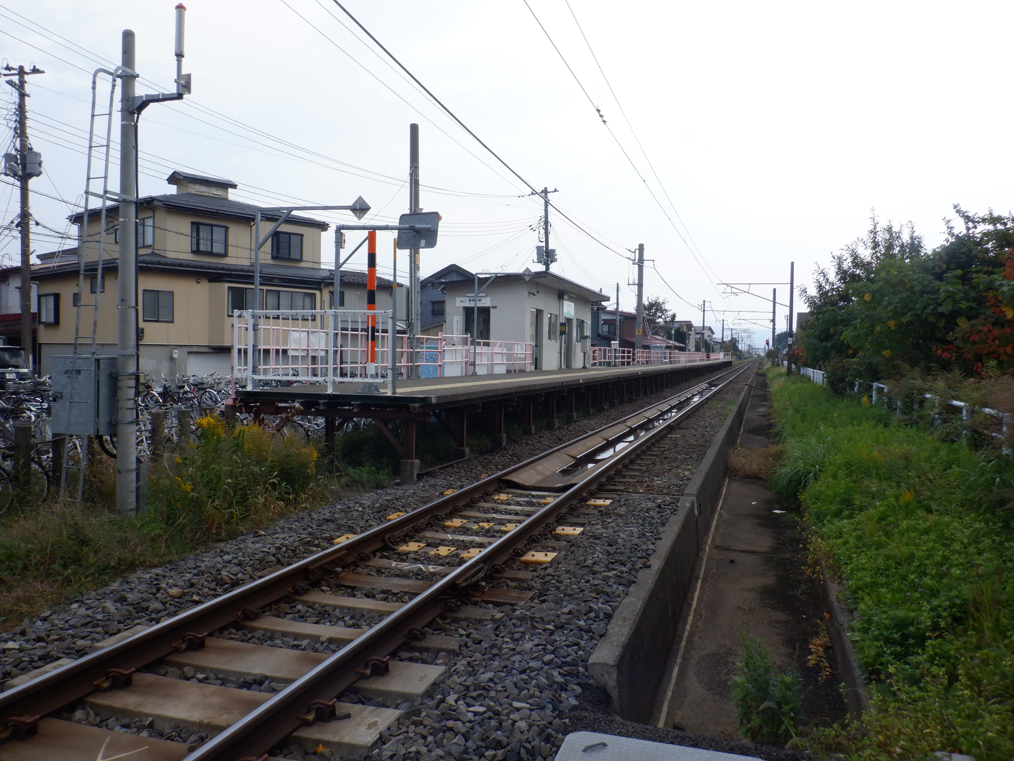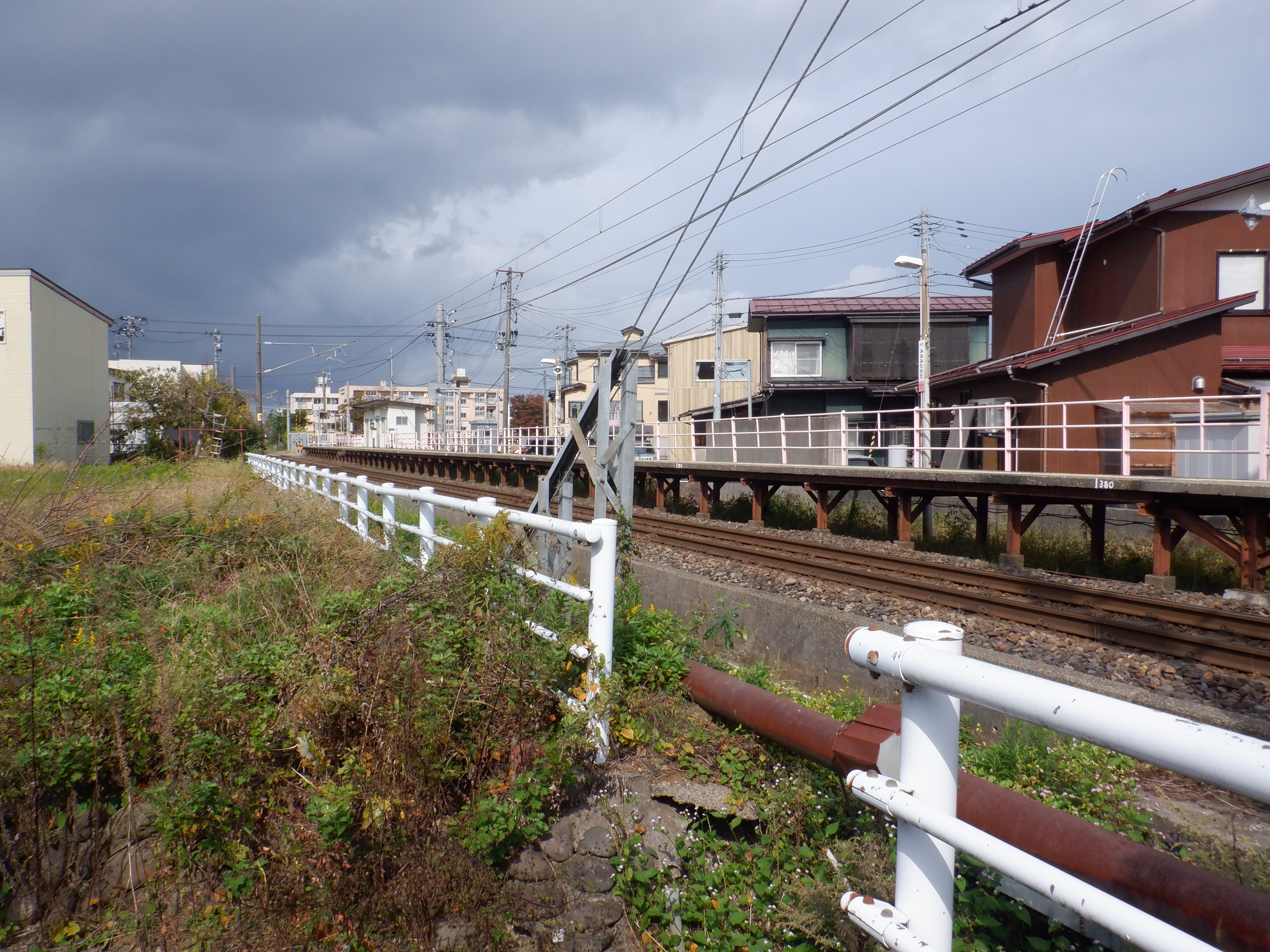 踏切を渡って少し進んだところから線路と平行に進んだところ。ホームの反対側に出ました。