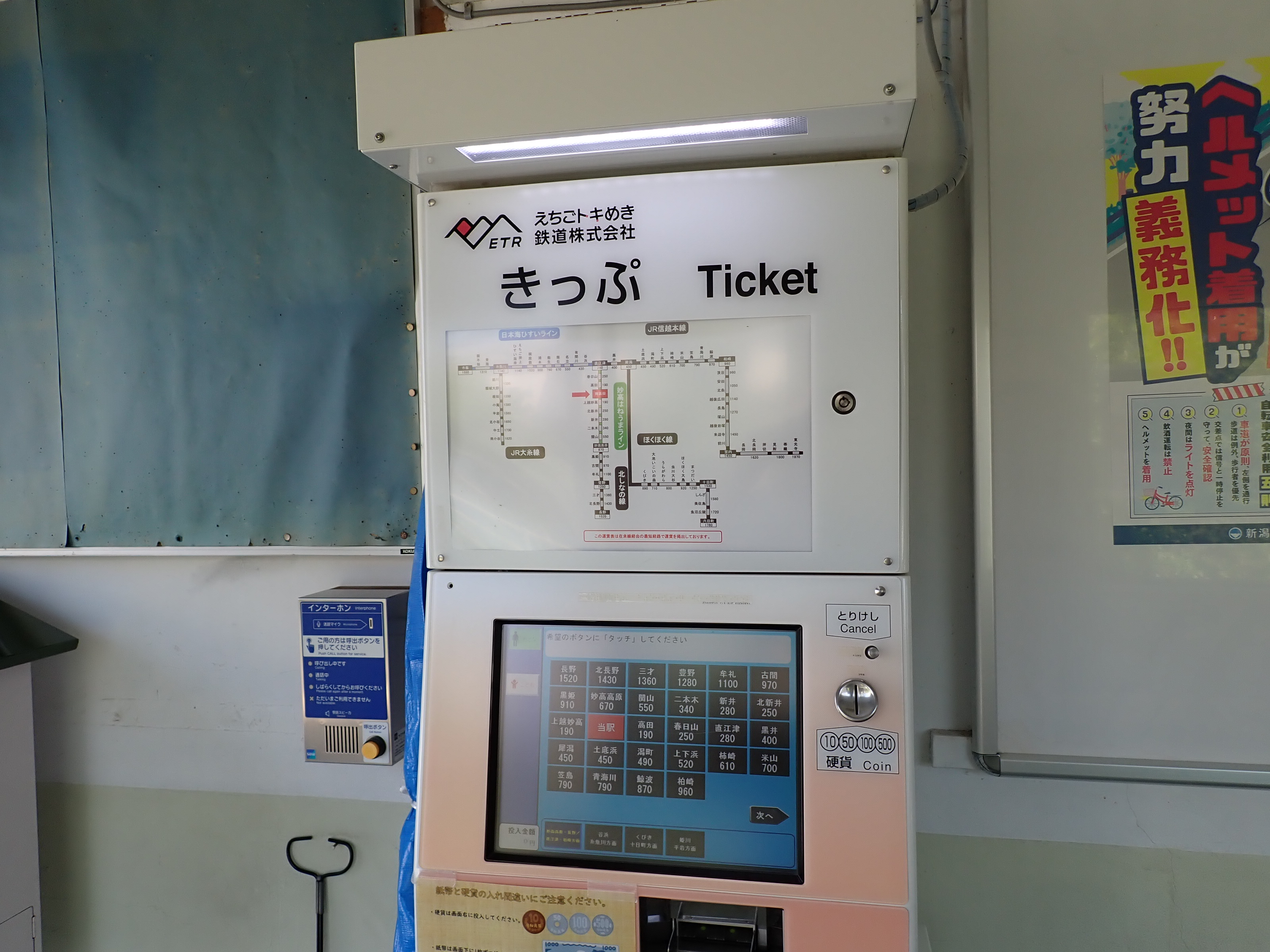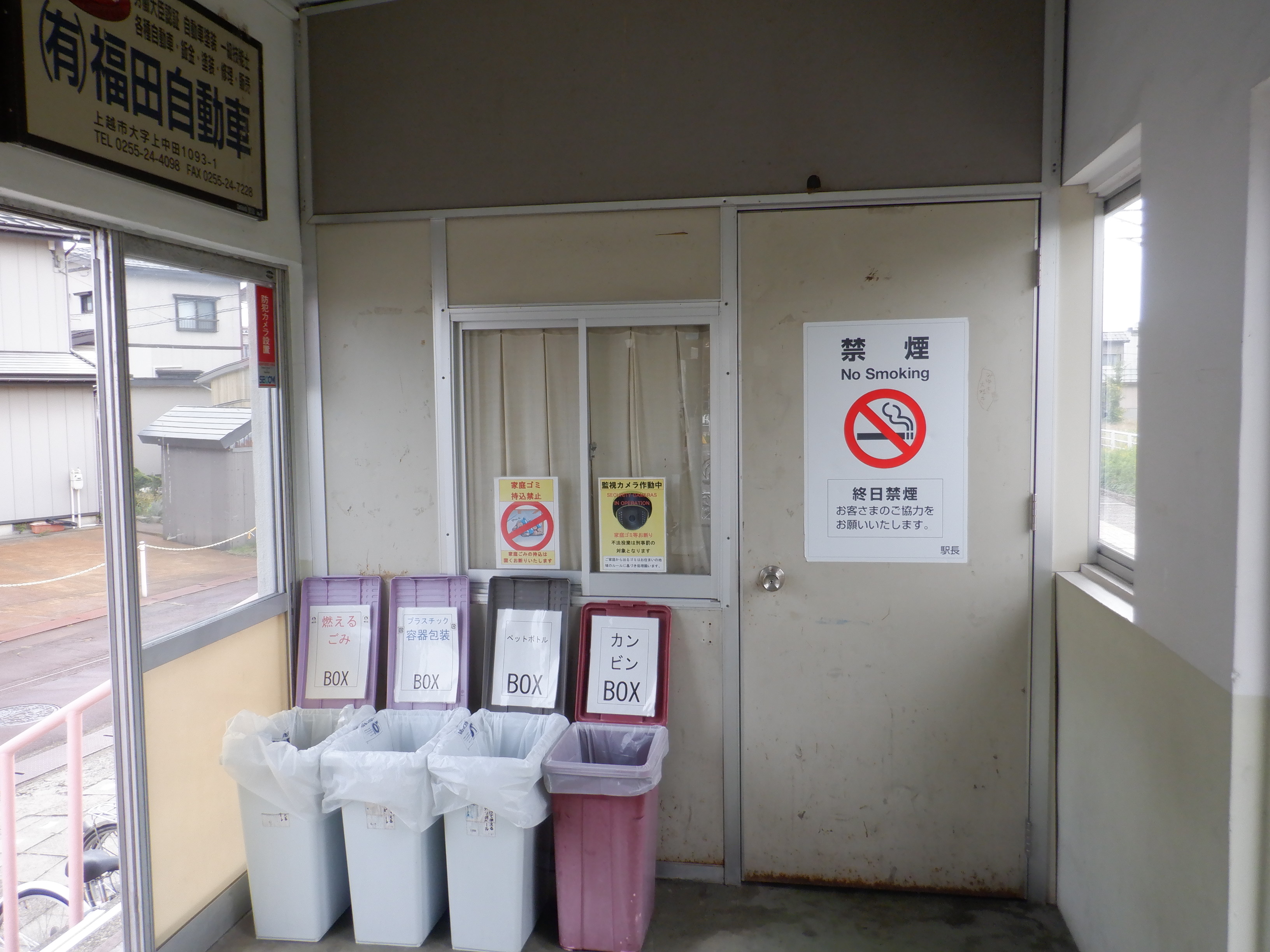 駅舎の上越妙高駅側にある階段の運賃箱等。