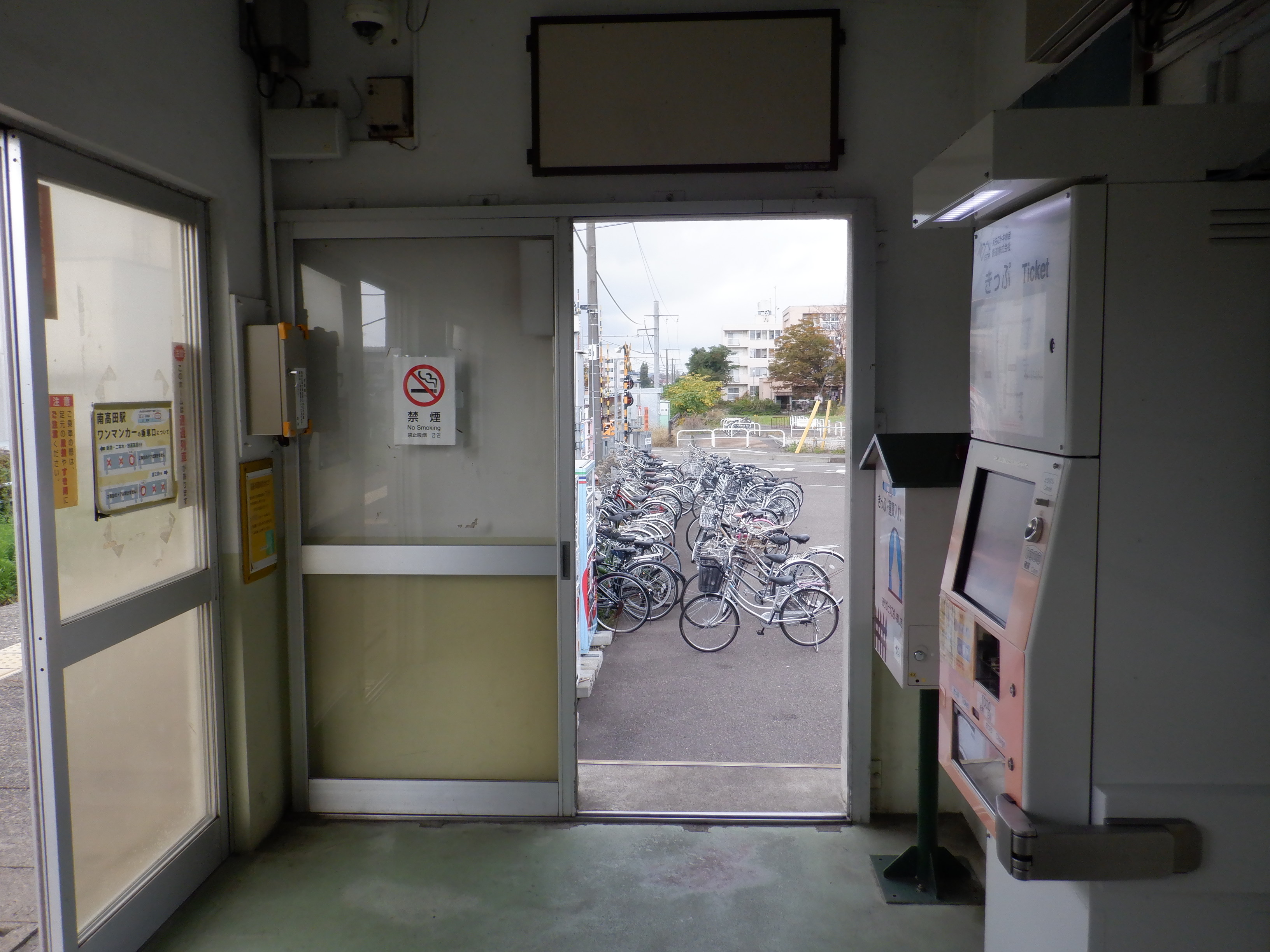 駅舎の各方向出入口と駅舎を通らない出入口、また駅舎の財産標。