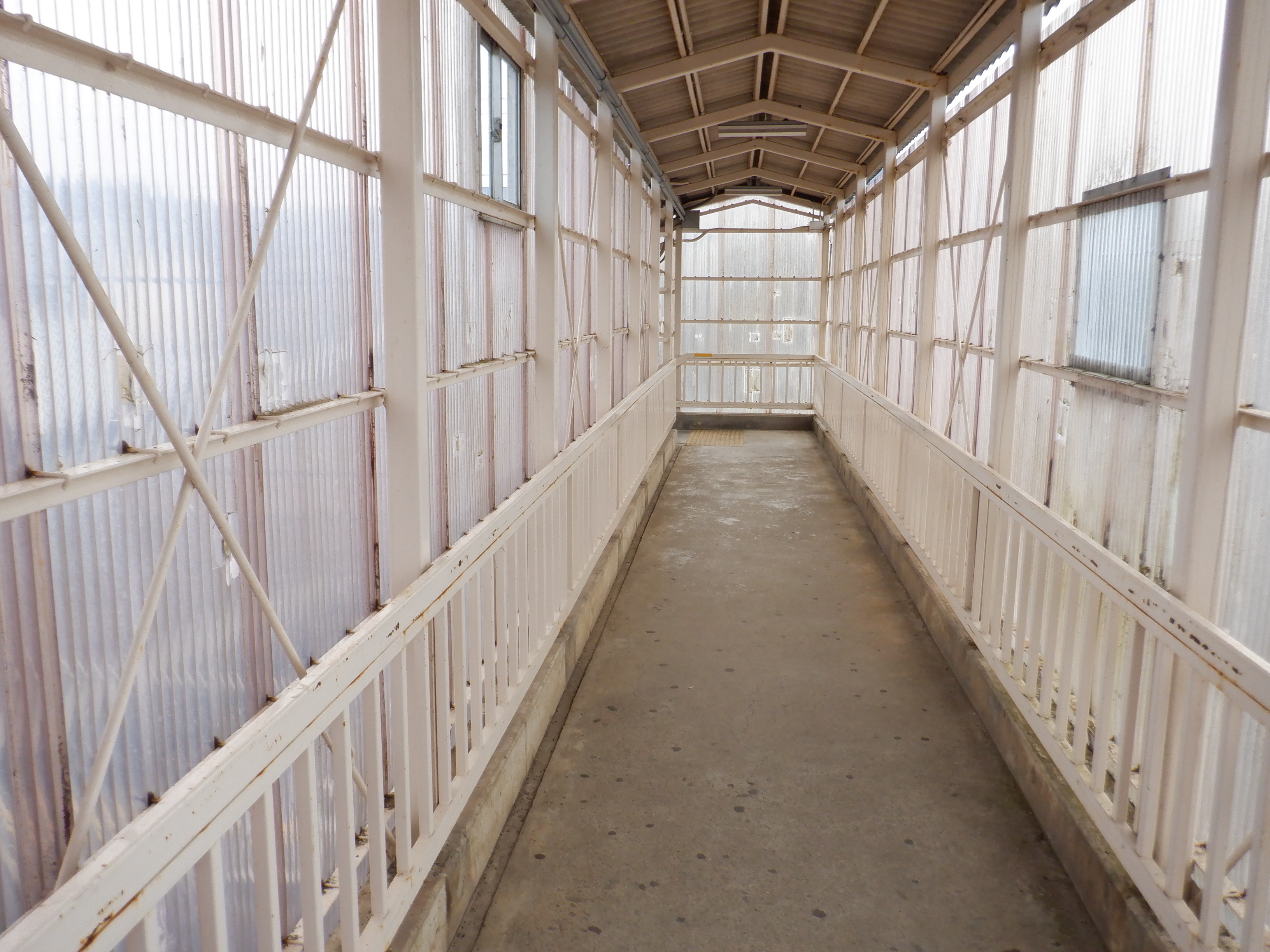 駅舎側ホームから見た反対側の跨線橋支柱付近。