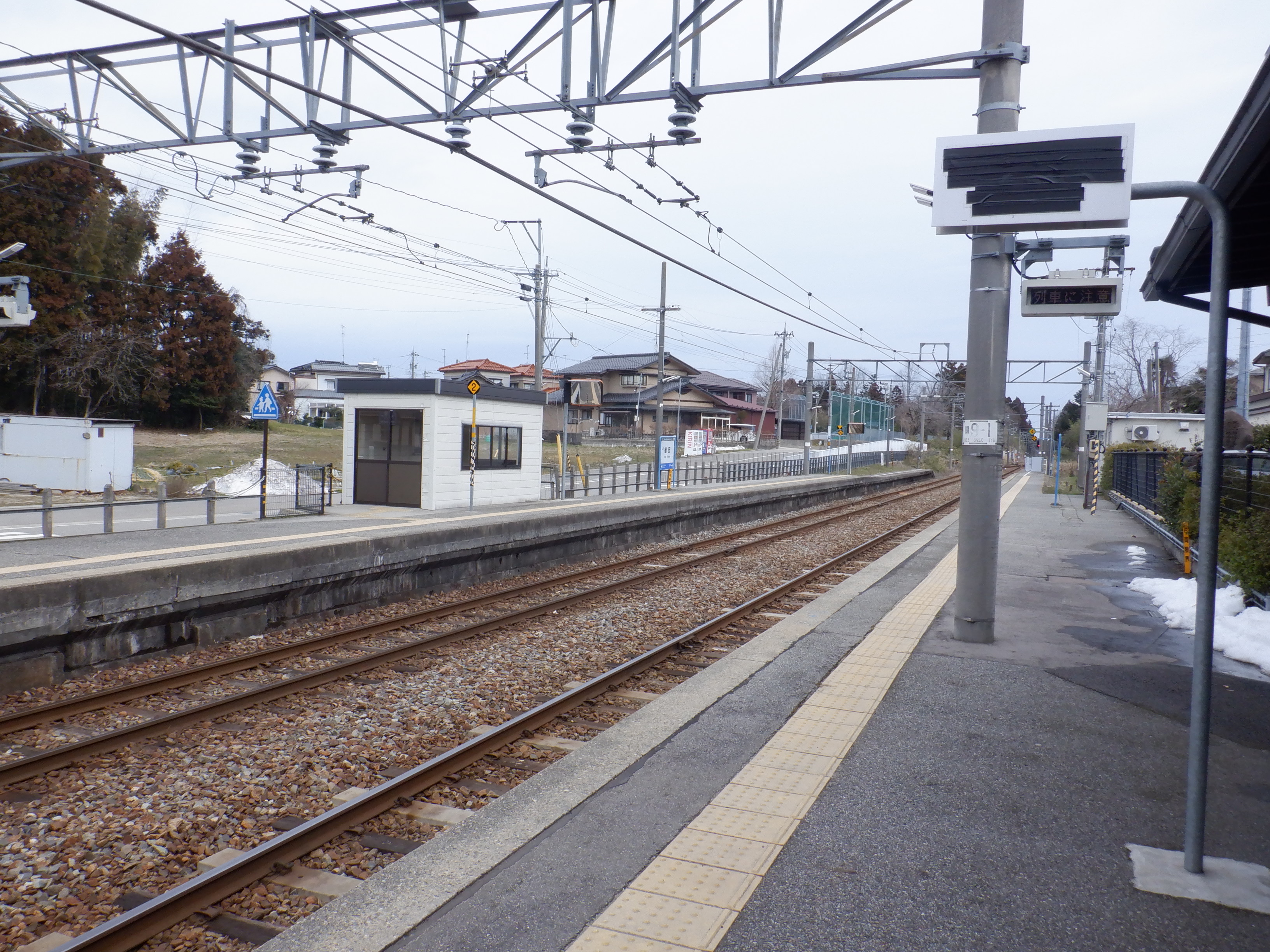 駅舎と反対側のホームから見た駅舎側のホーム。