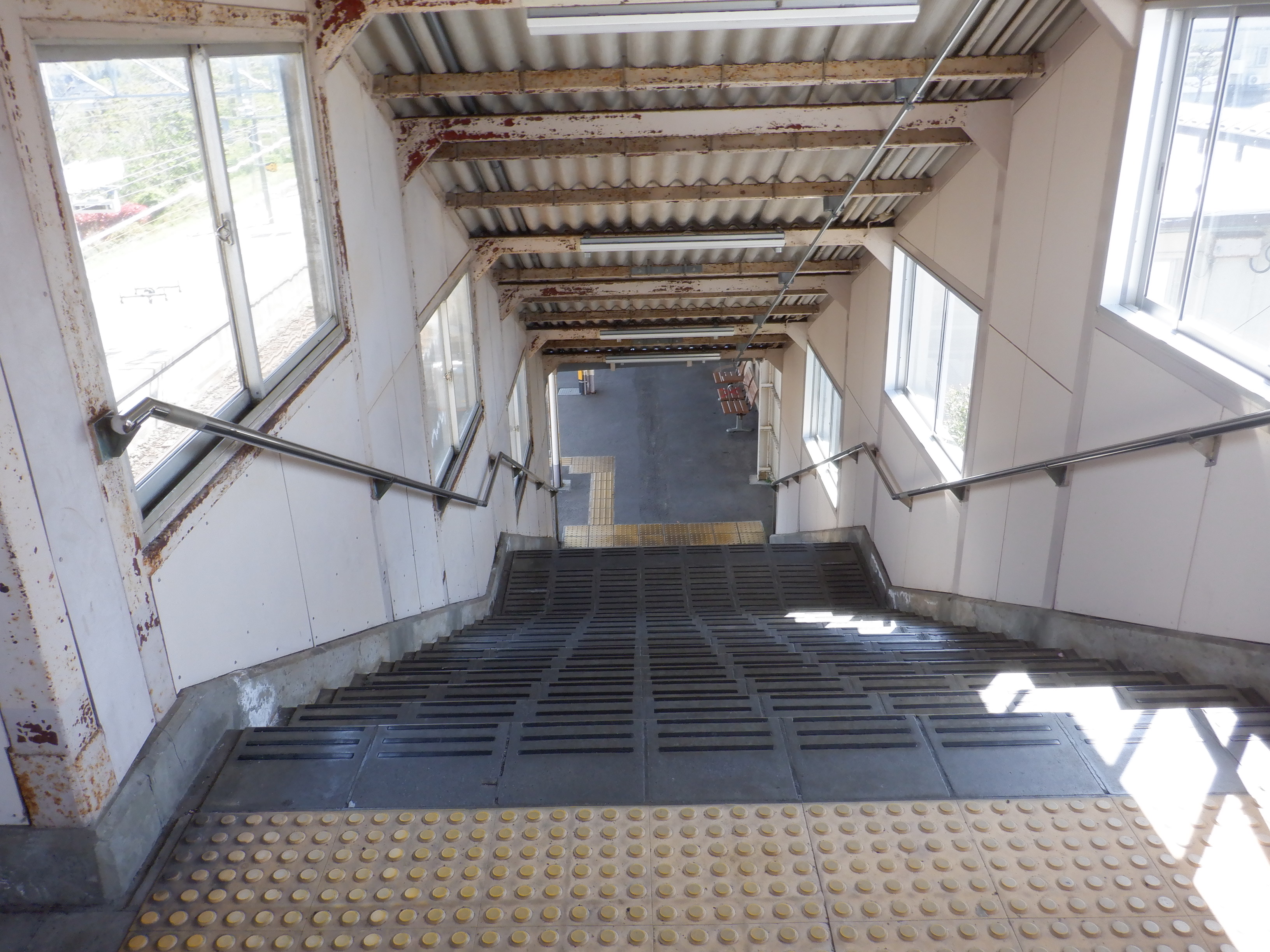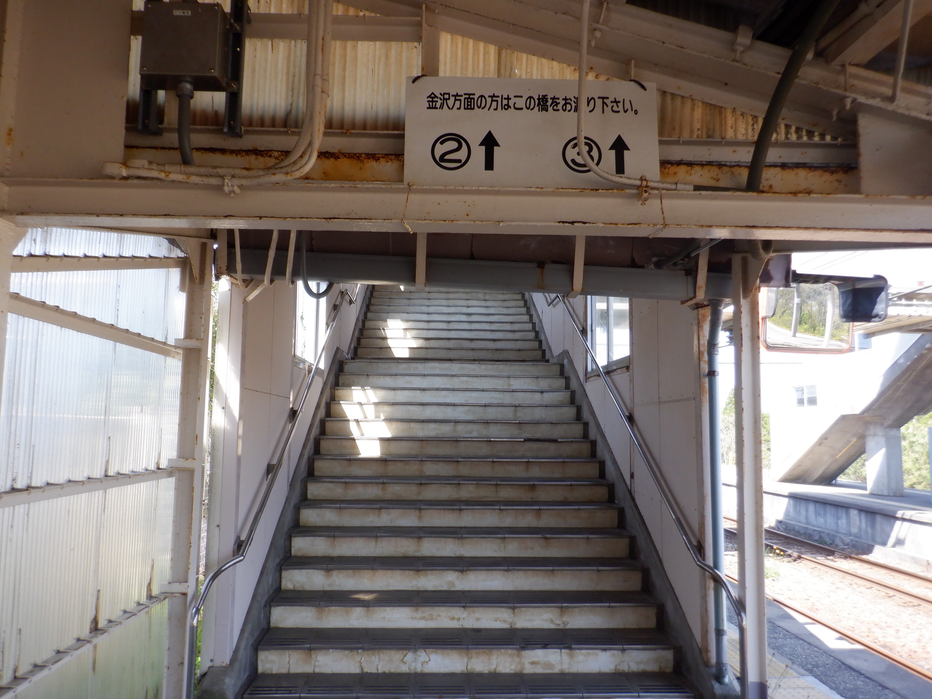 2・3番のりば跨線橋階段の横山駅側を見おろしたところ。