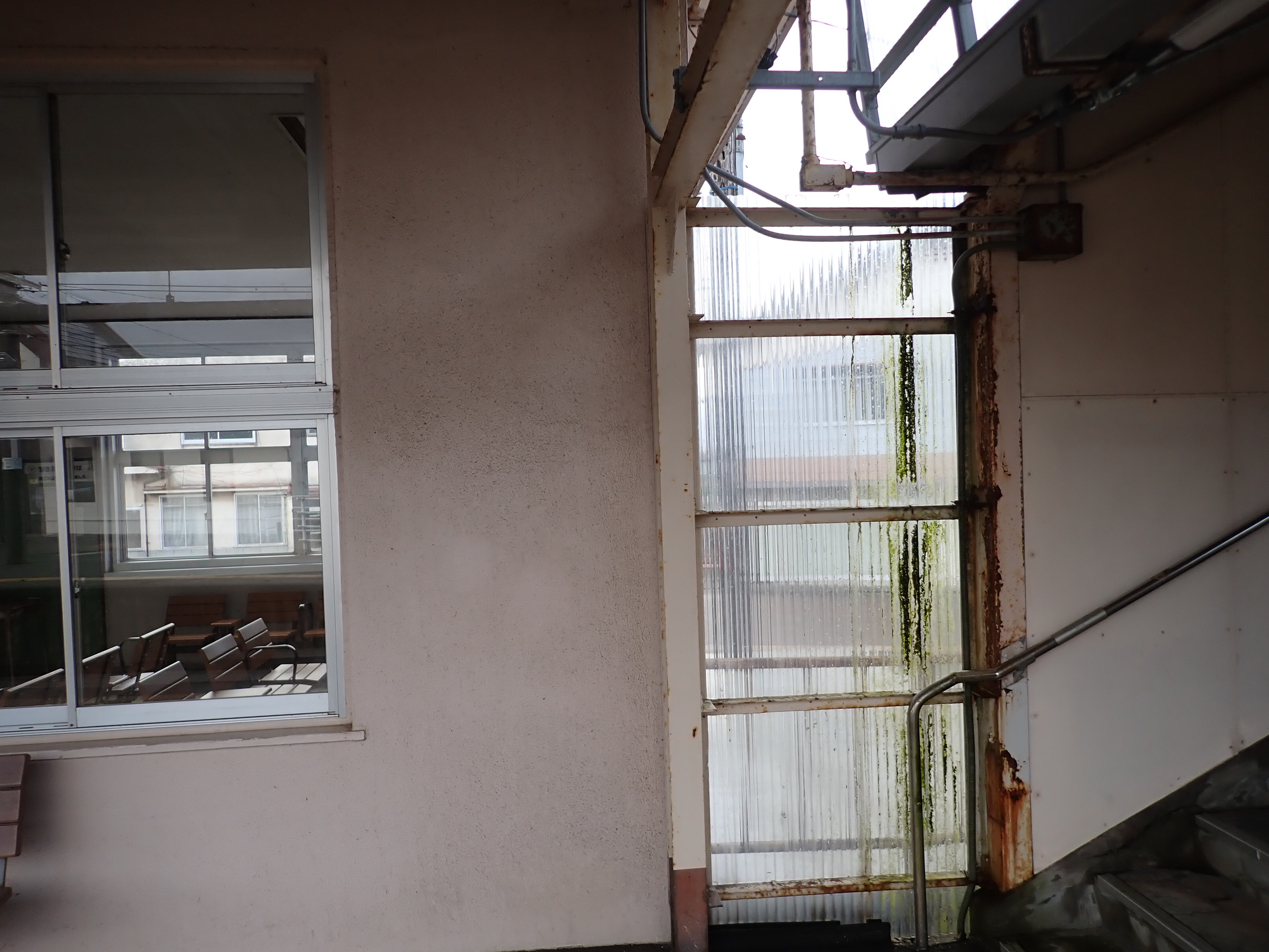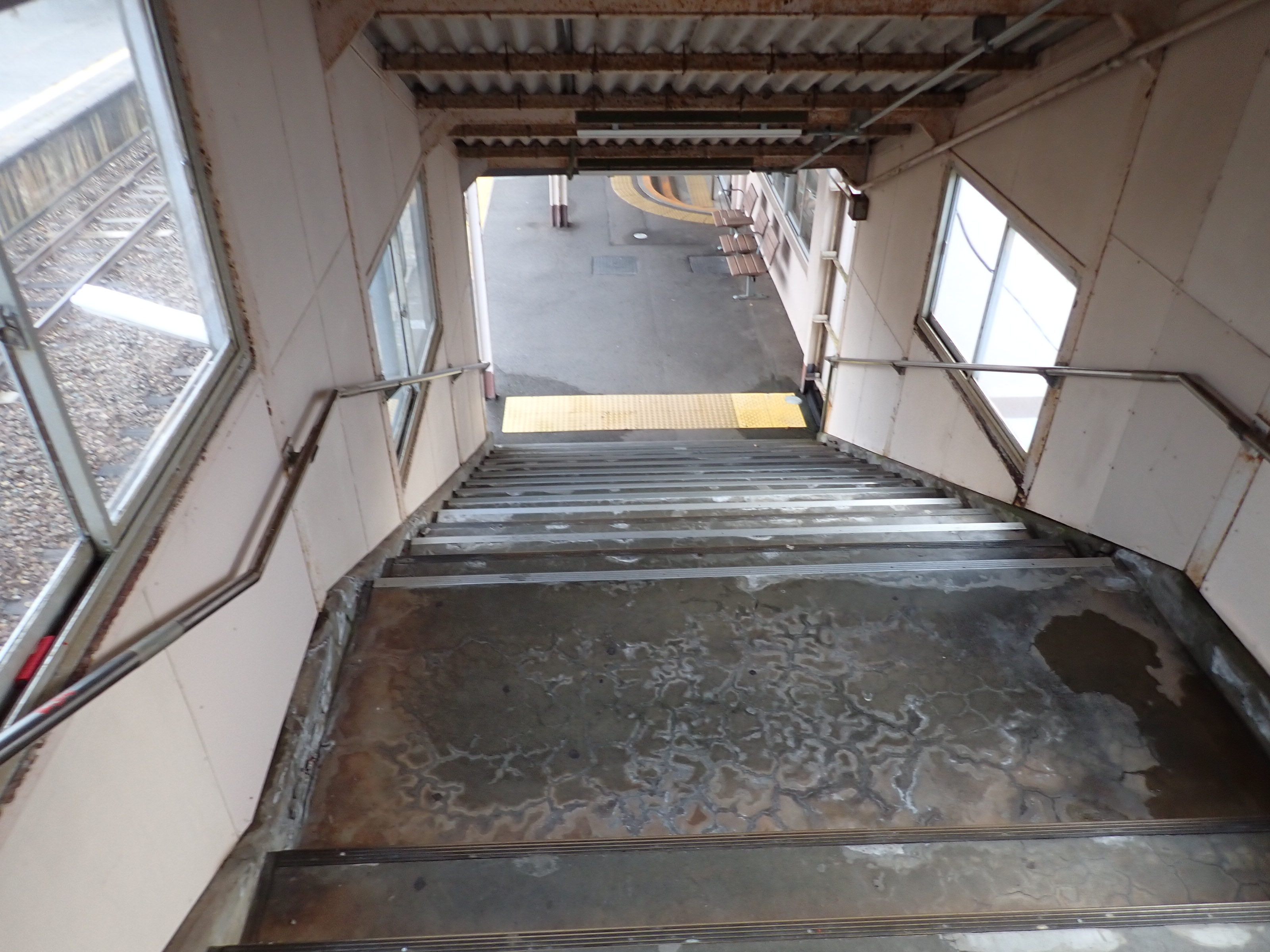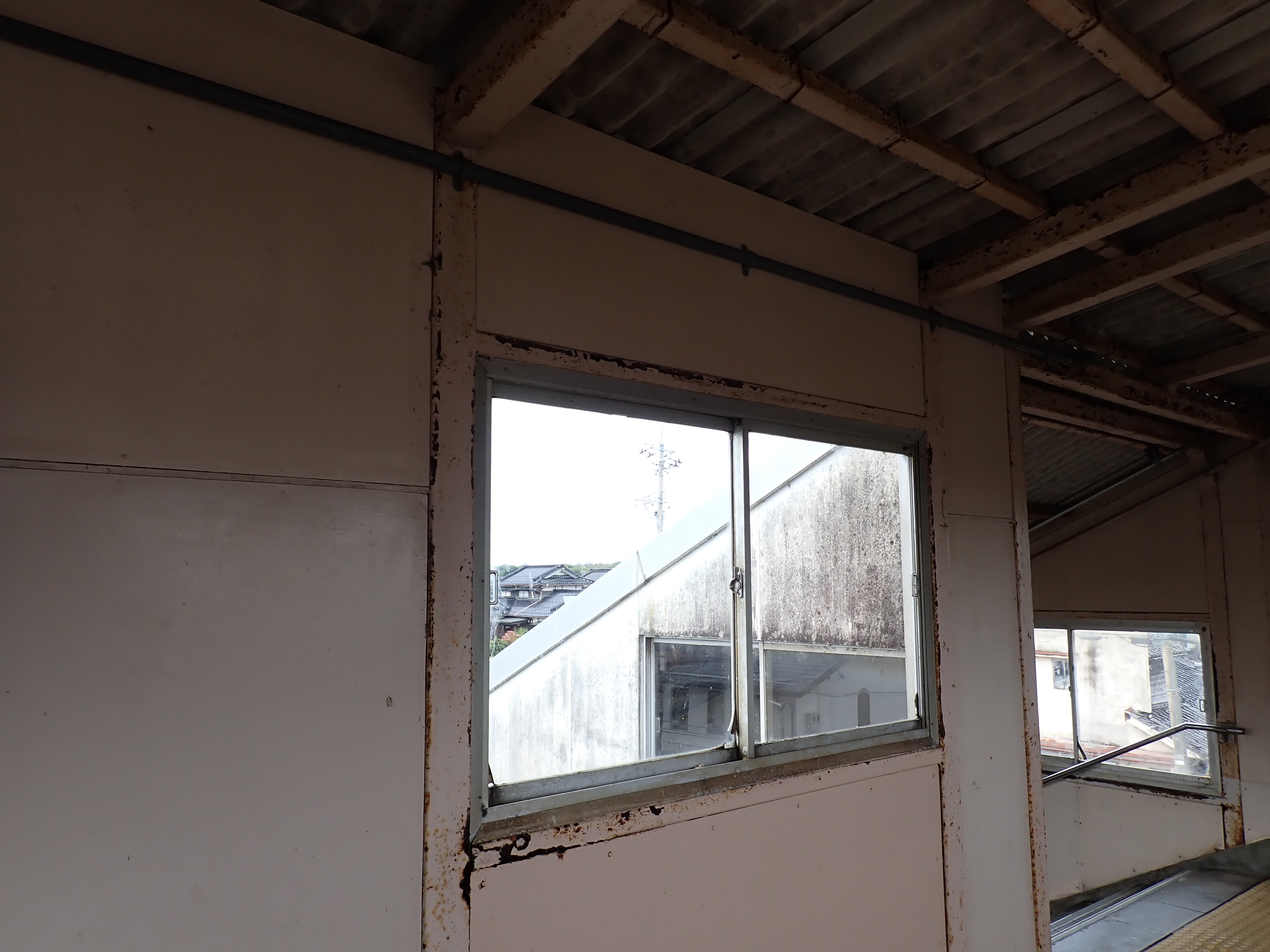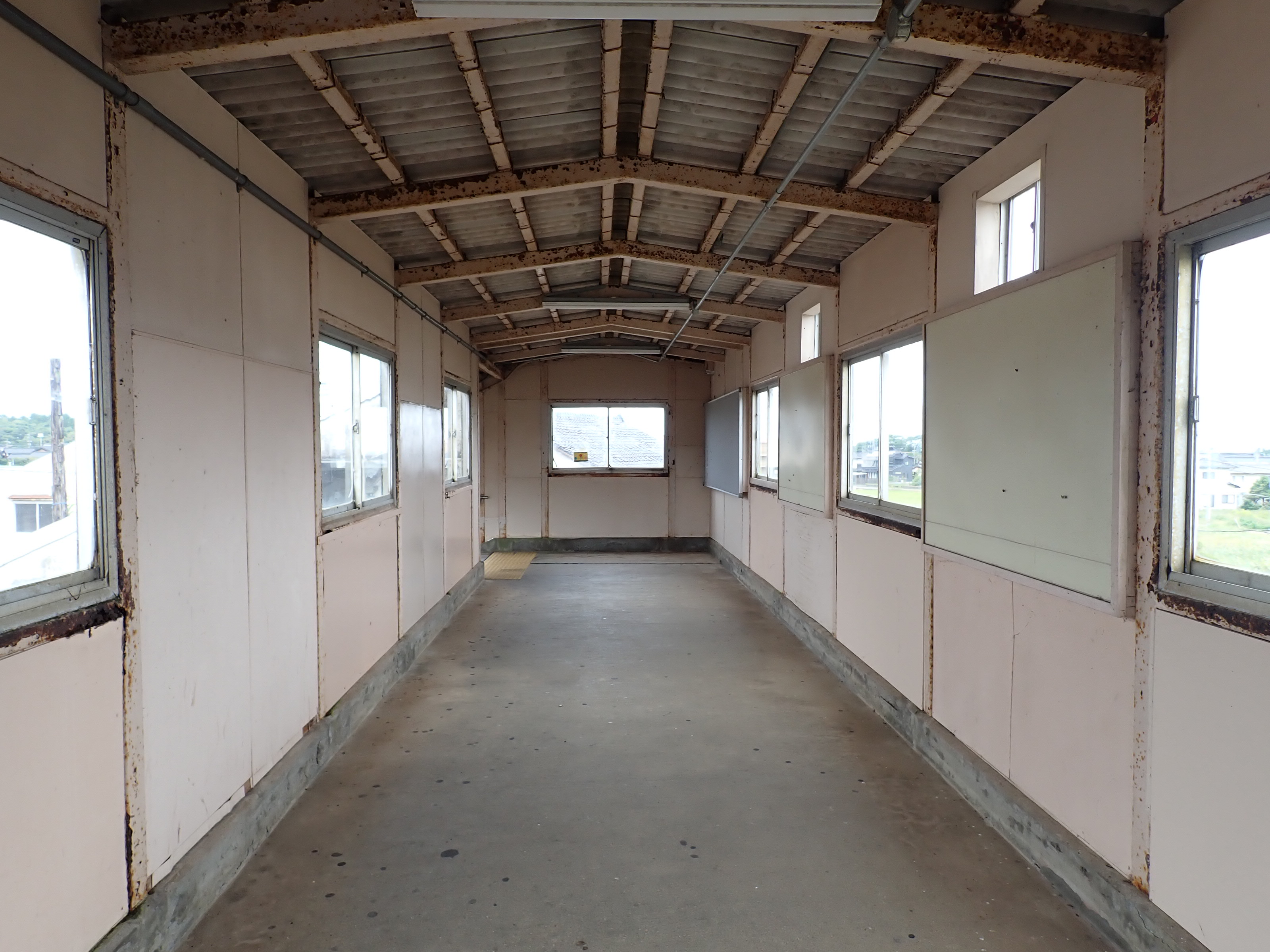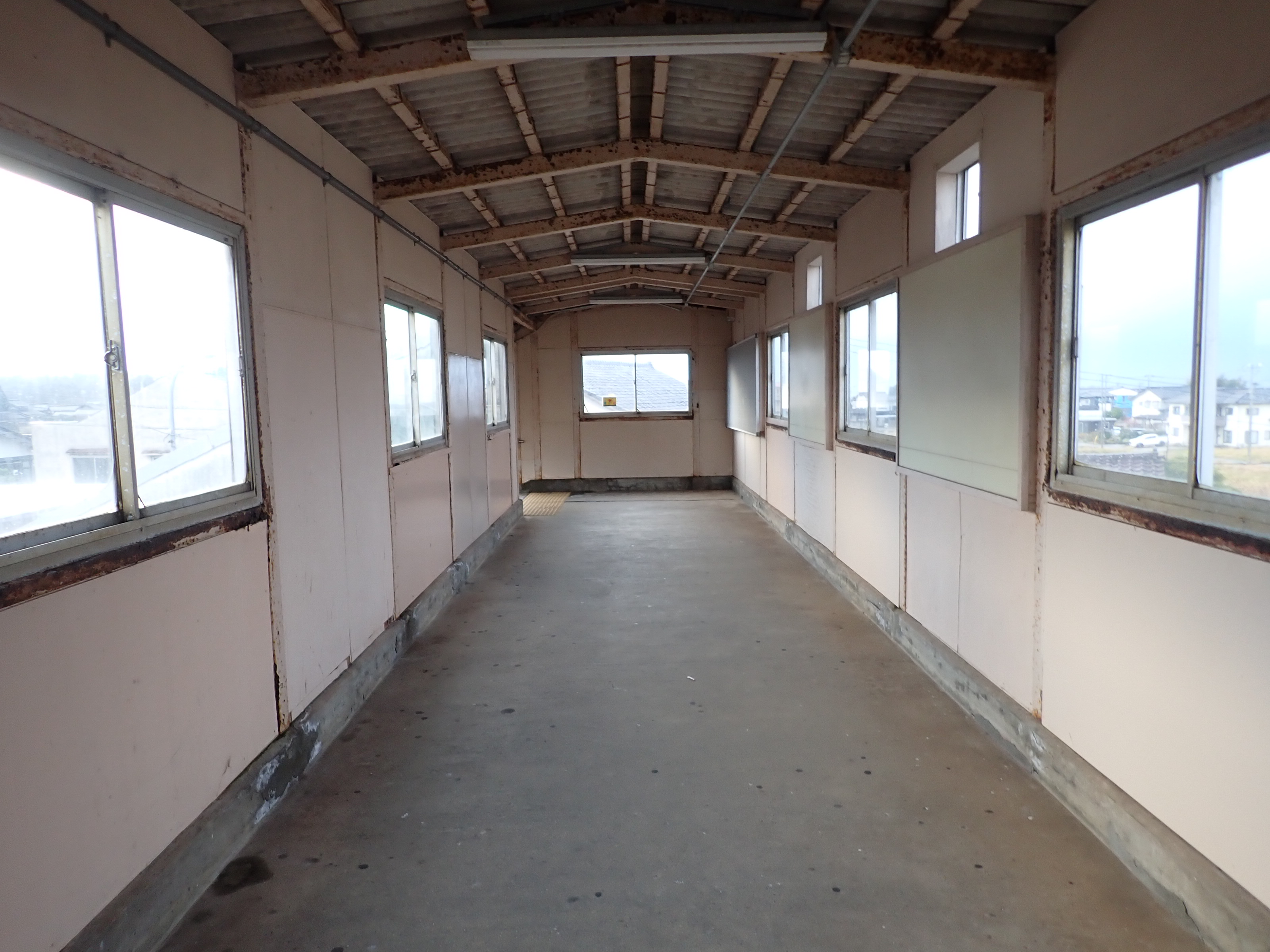 跨線橋内の様子。この駅ではこの時点で跨線橋の小窓が残っています。