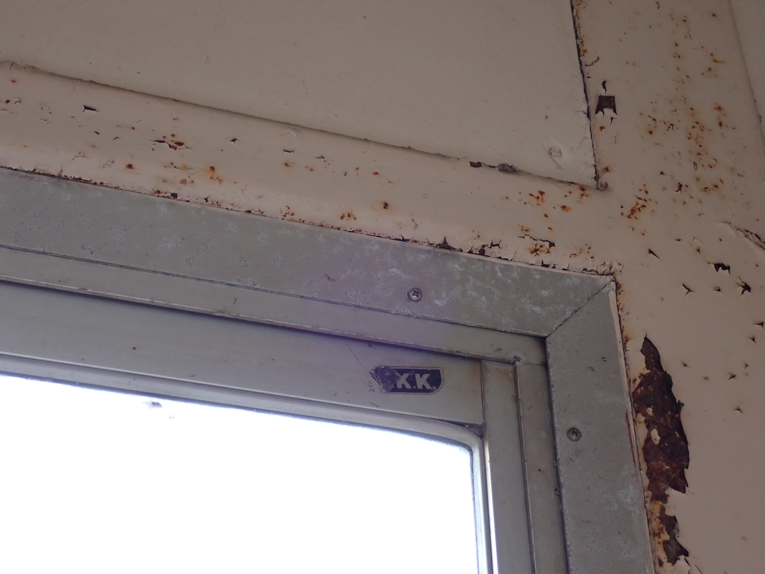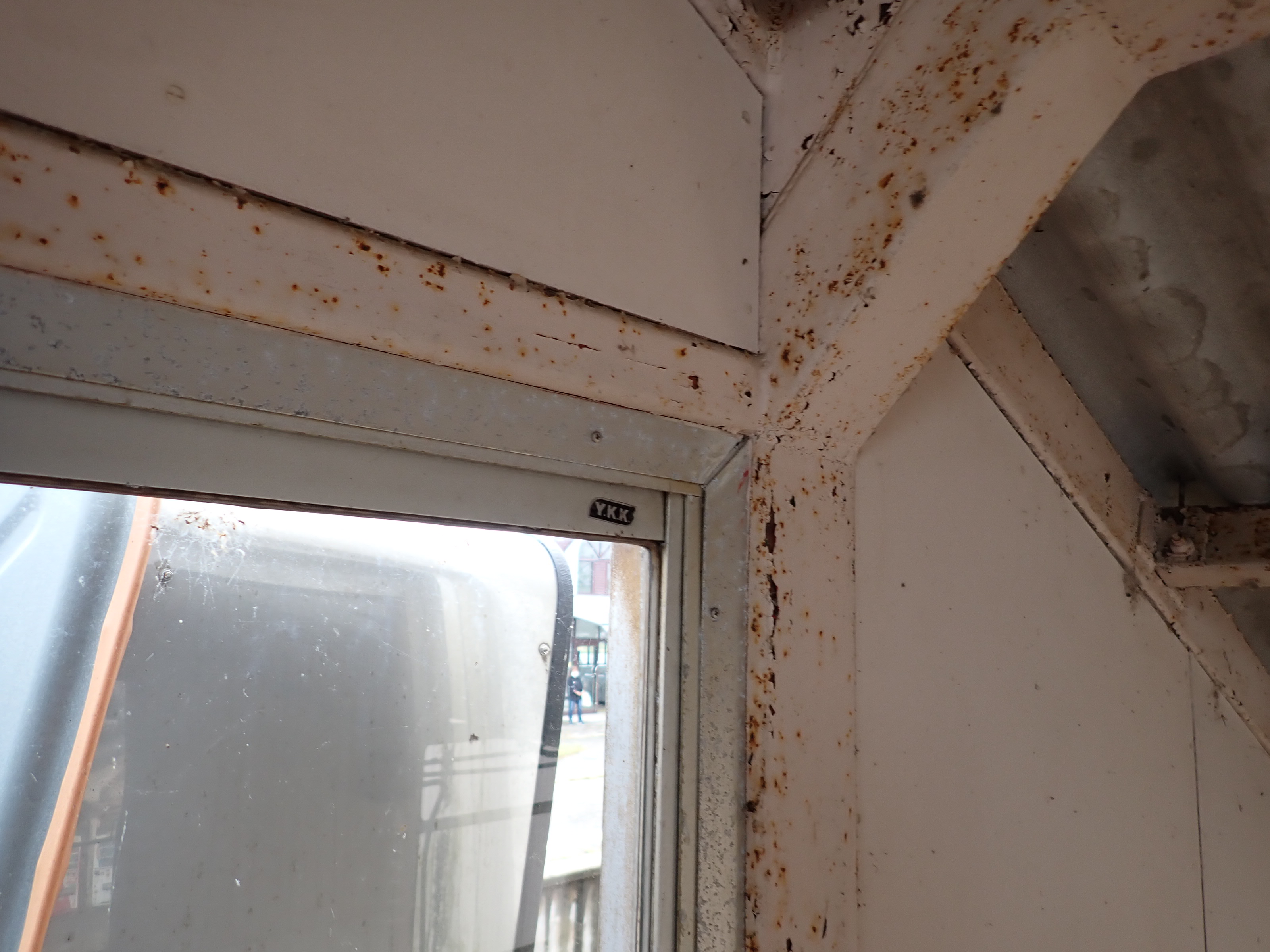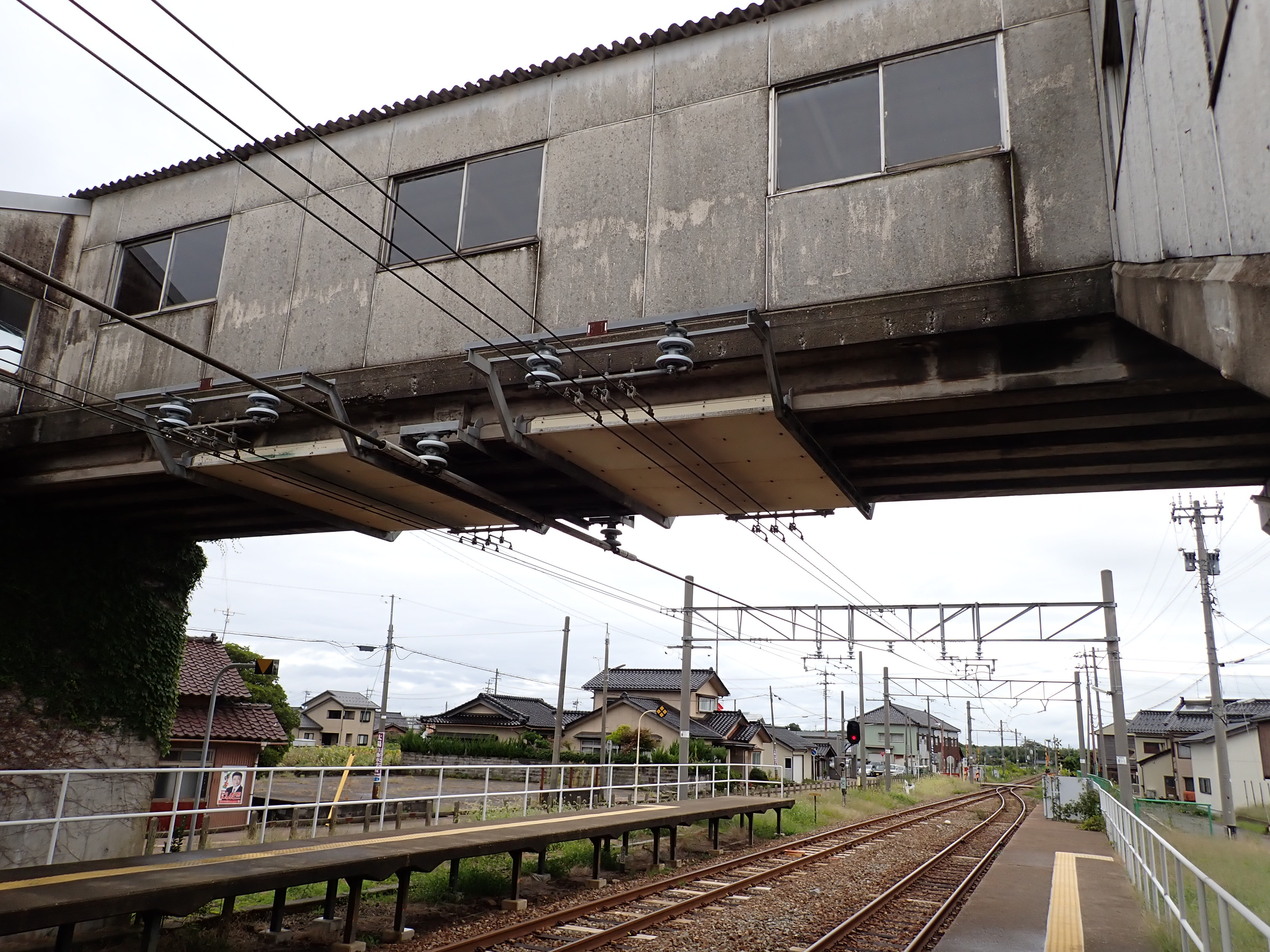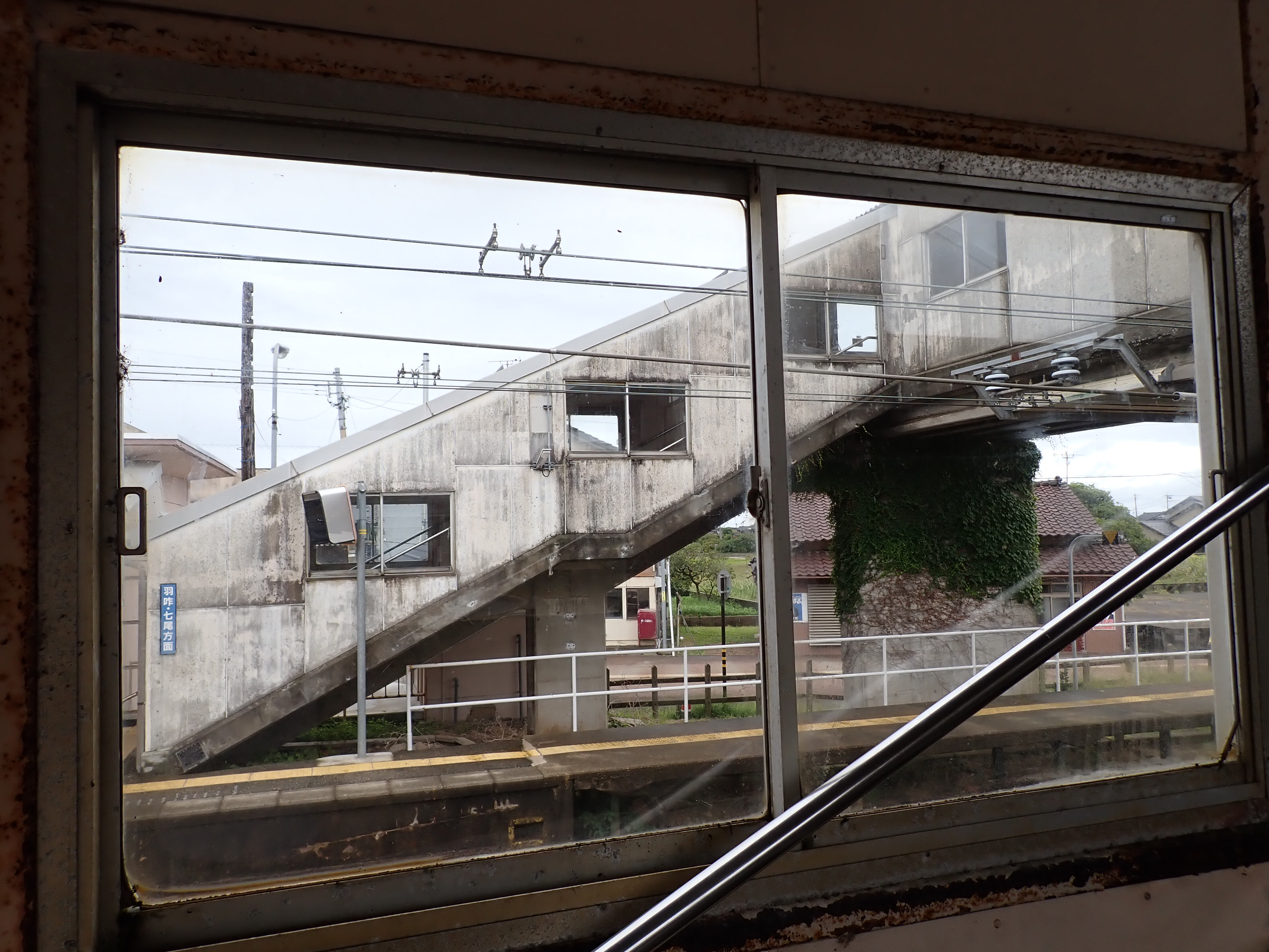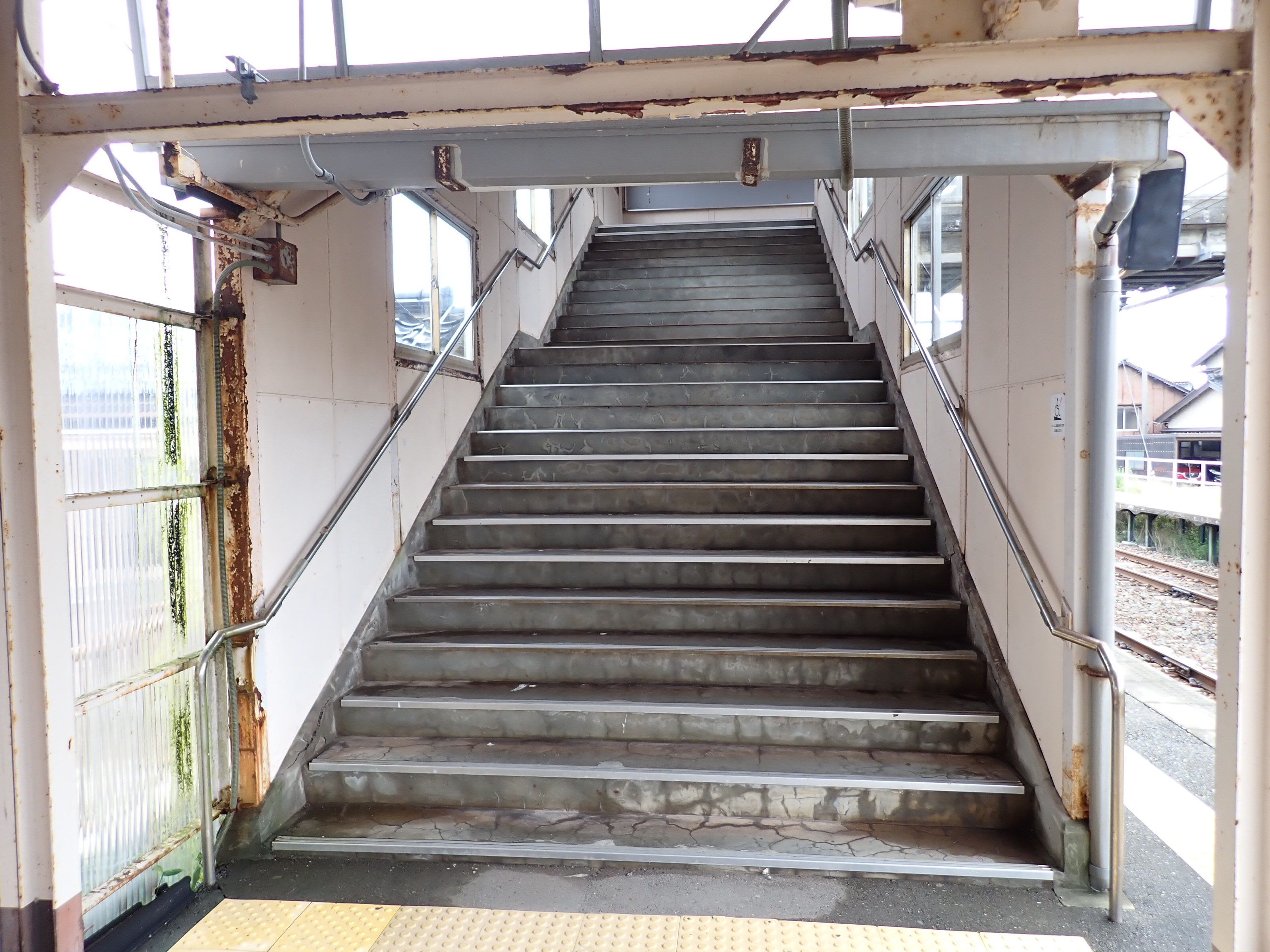 跨線橋内の様子。この駅ではこの時点で跨線橋の小窓が残っています。