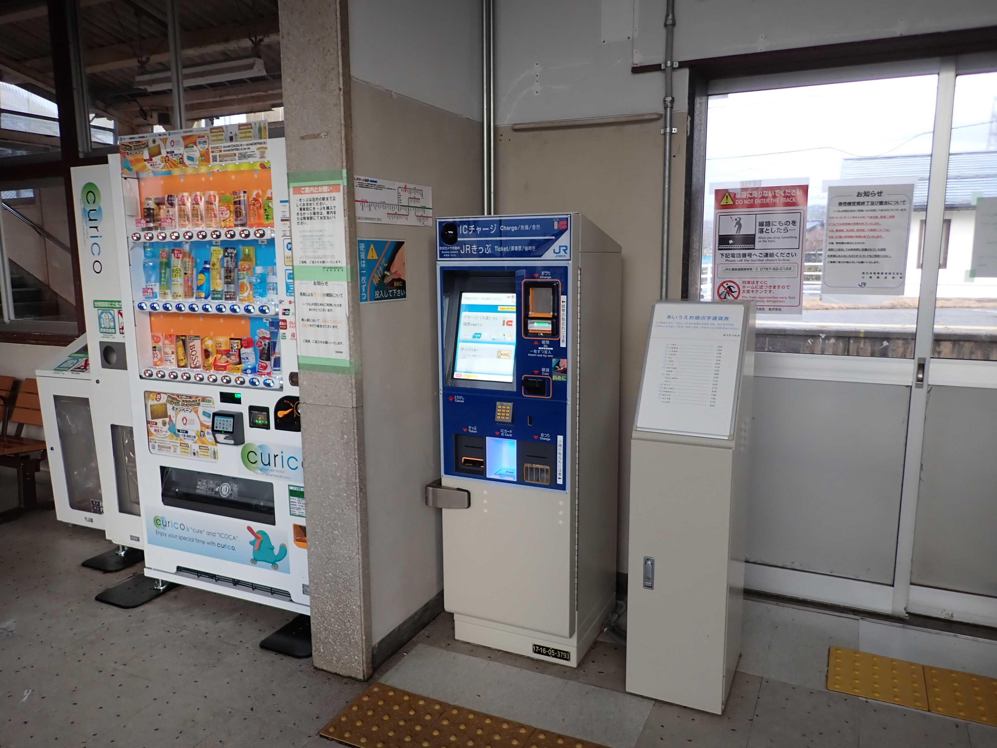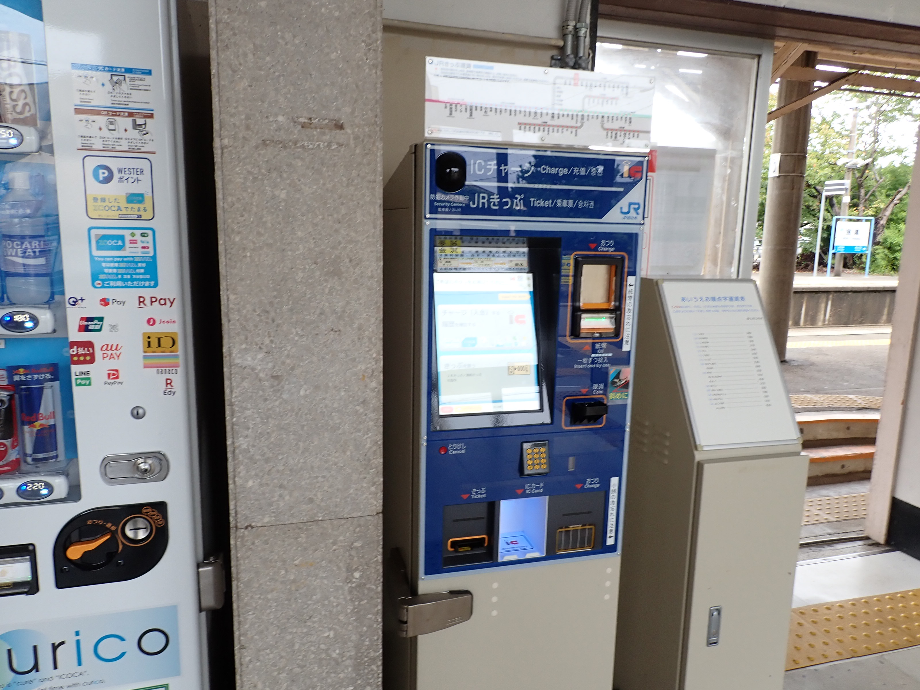 券売機の様子。路線図が壁から券売機の上部に移動しています。