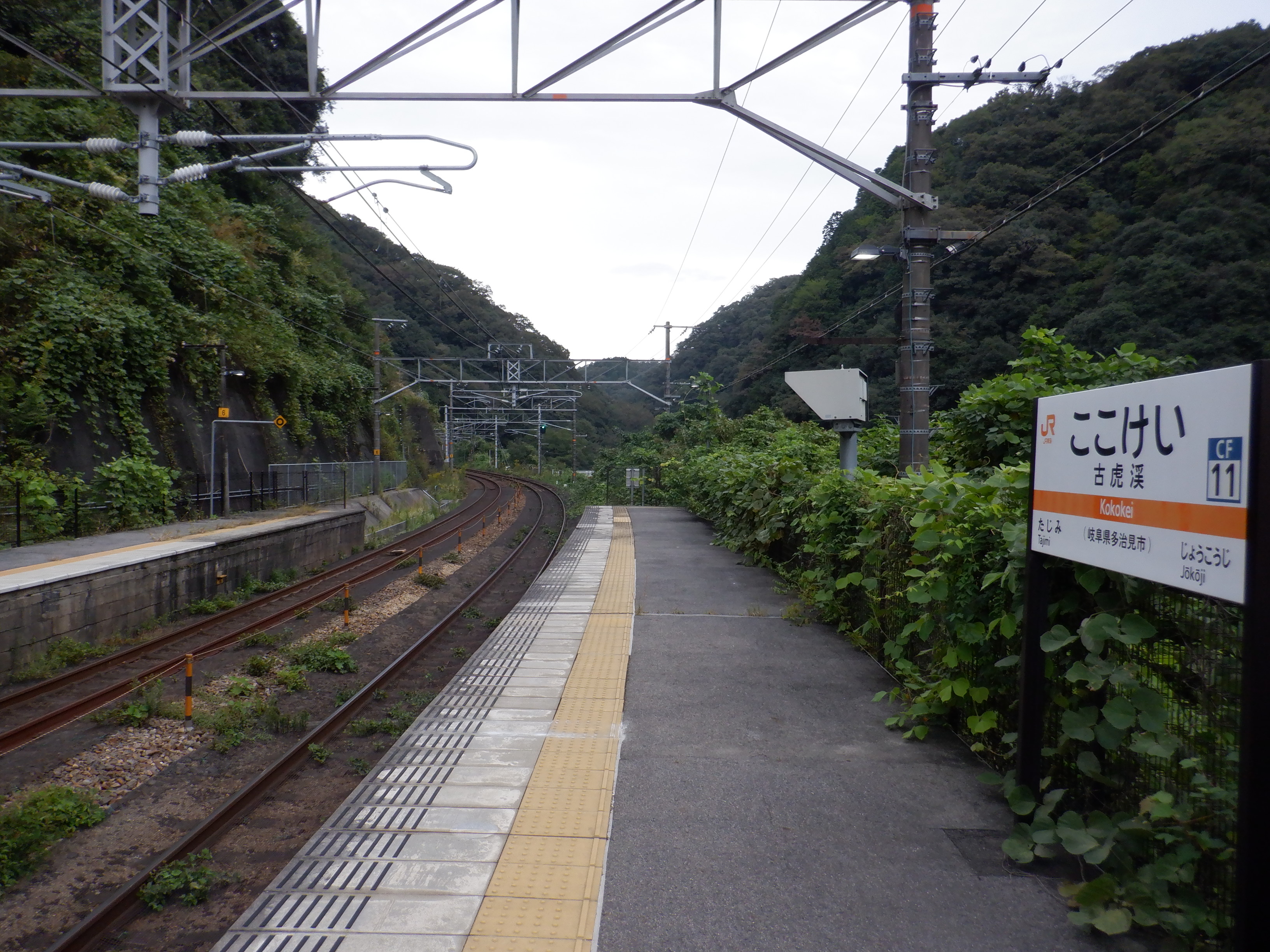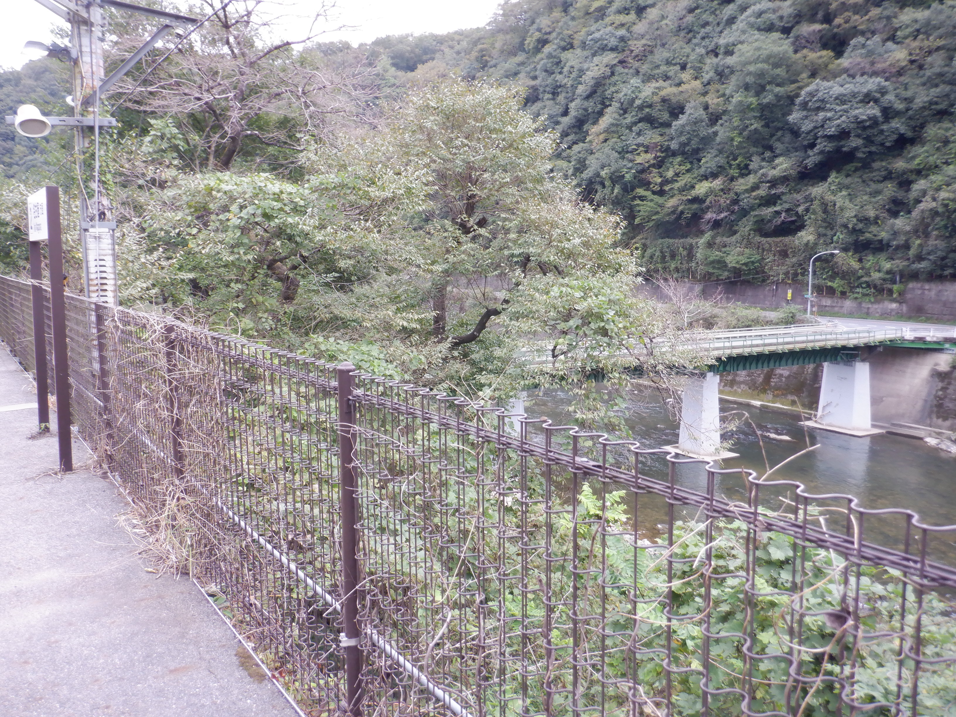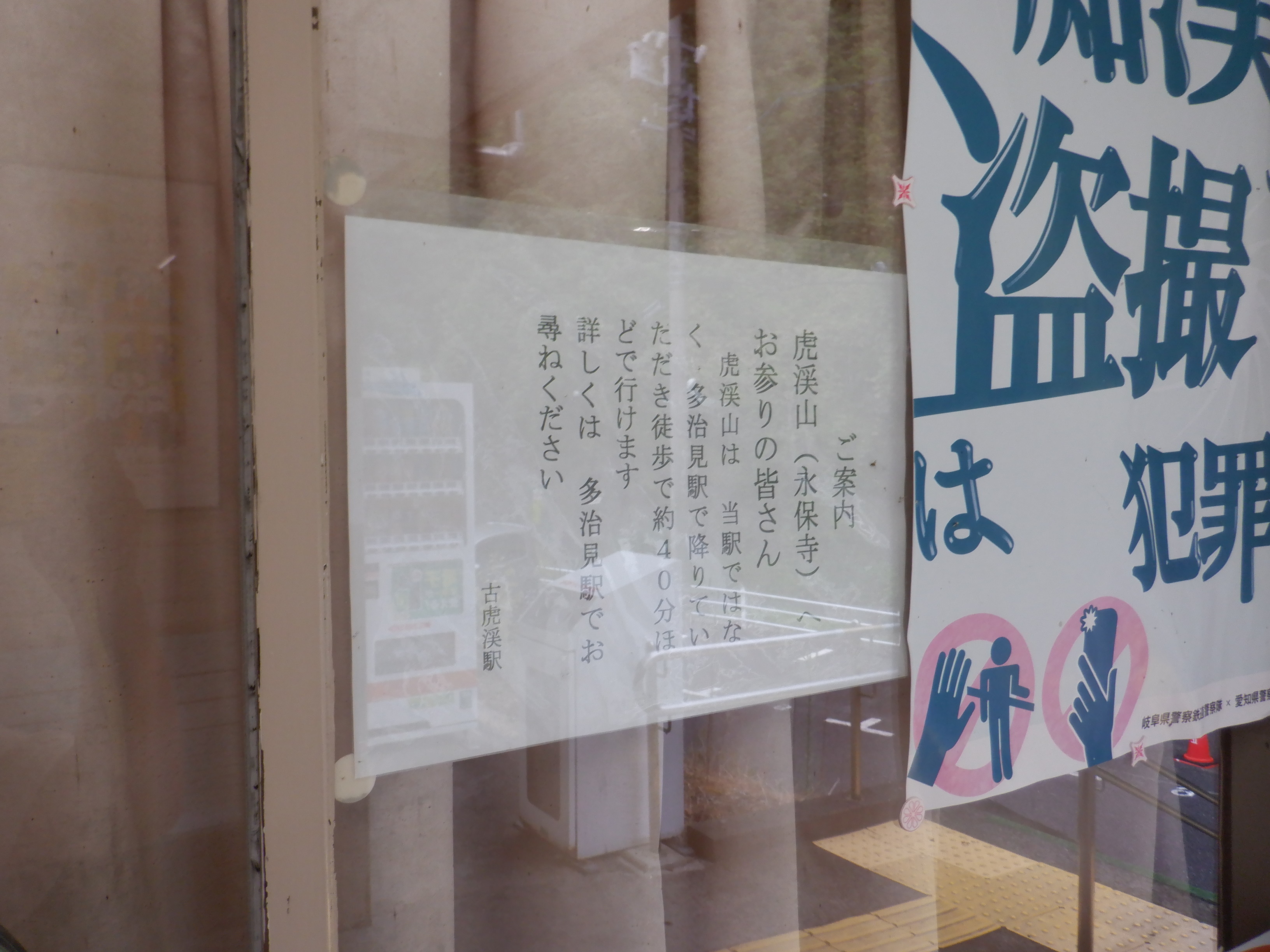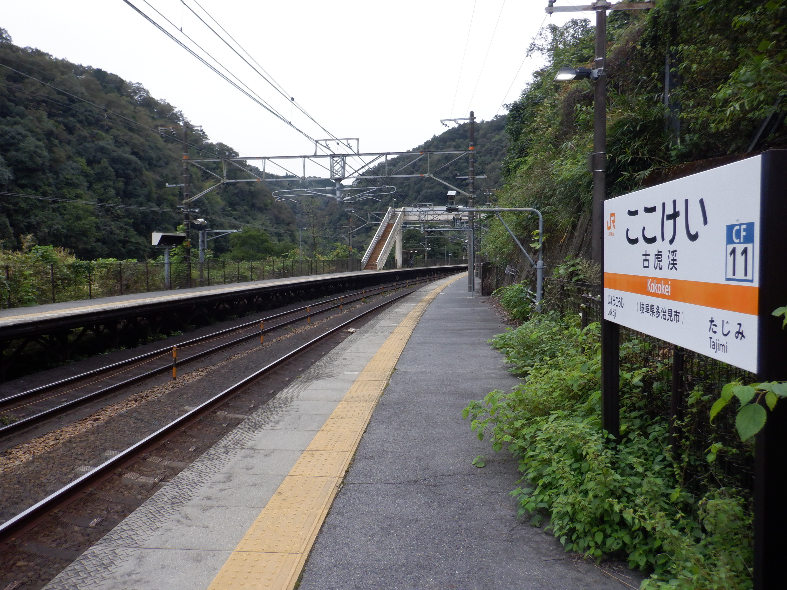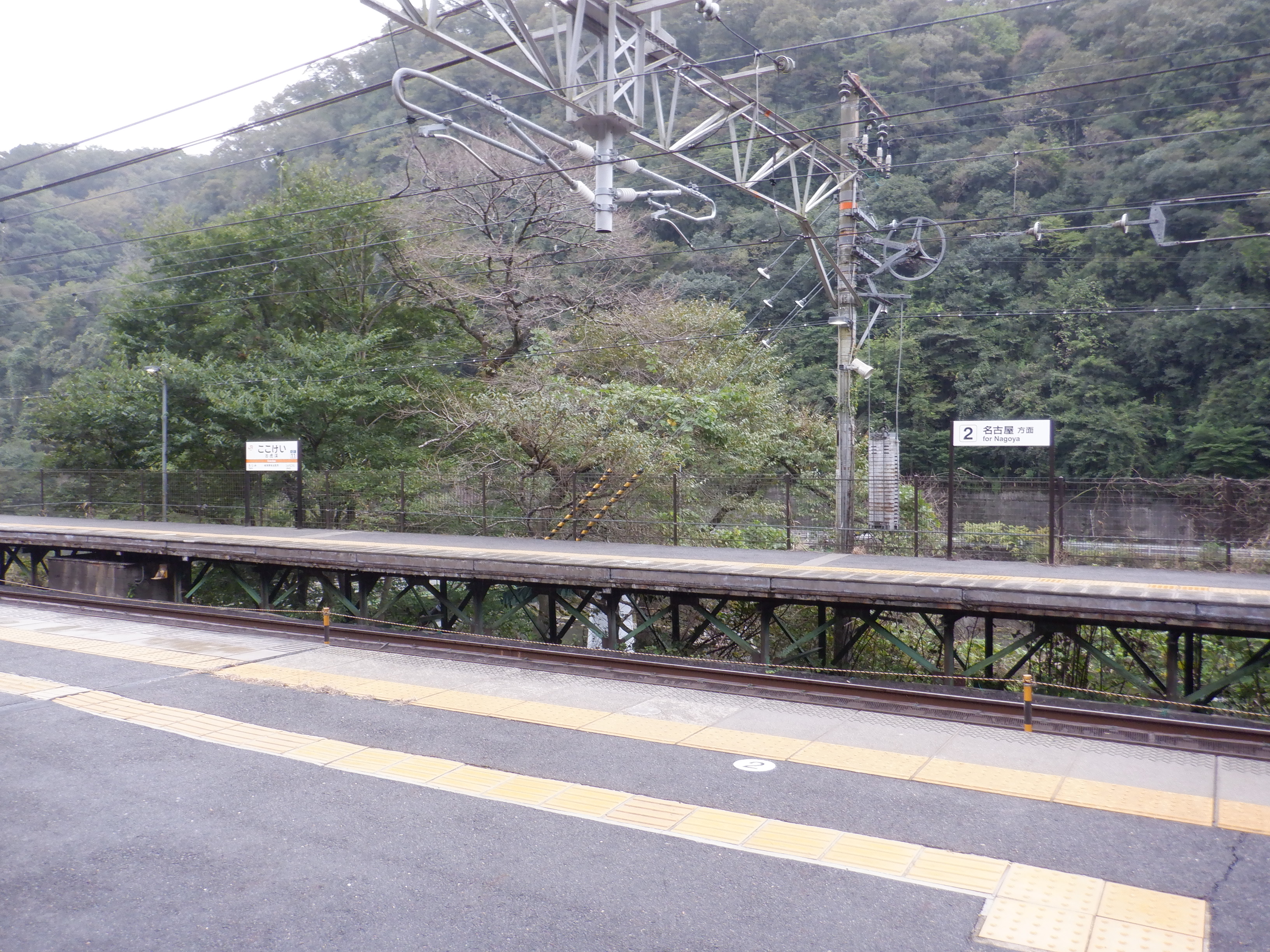 土岐川が作る渓谷の中にある駅で、両方向から来てもこの駅と隣の定光寺駅付近は雰囲気が異なっています。線路のある側は愛知県境までまだ距離がありますが、対岸は県境が近く、道を少し進むと愛知県瀬戸市に入ります。