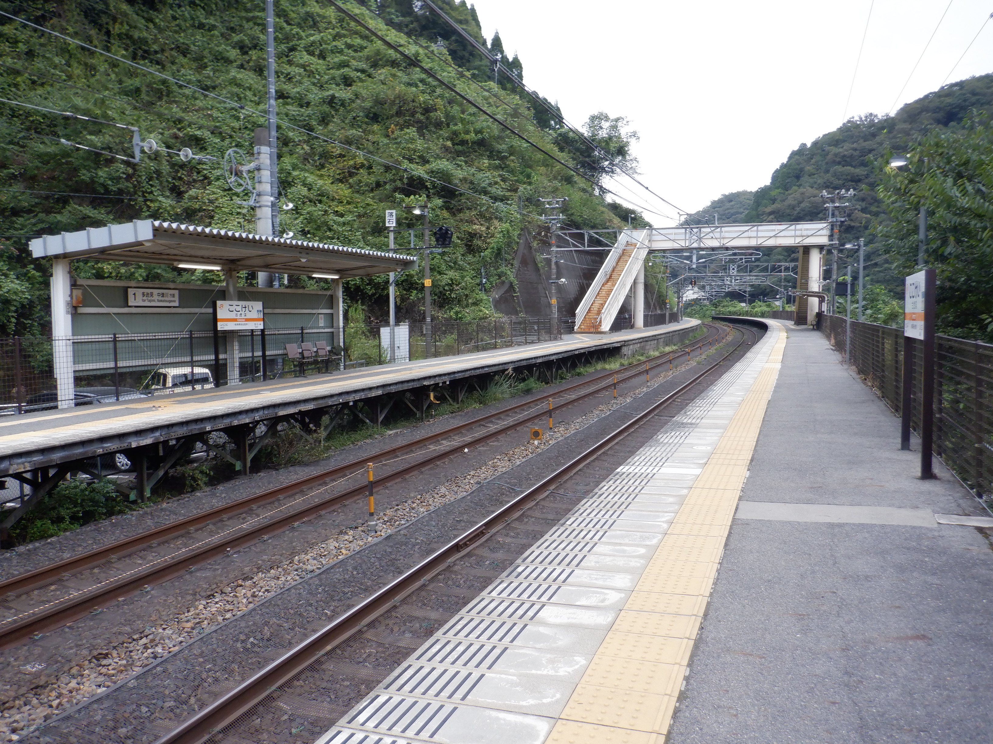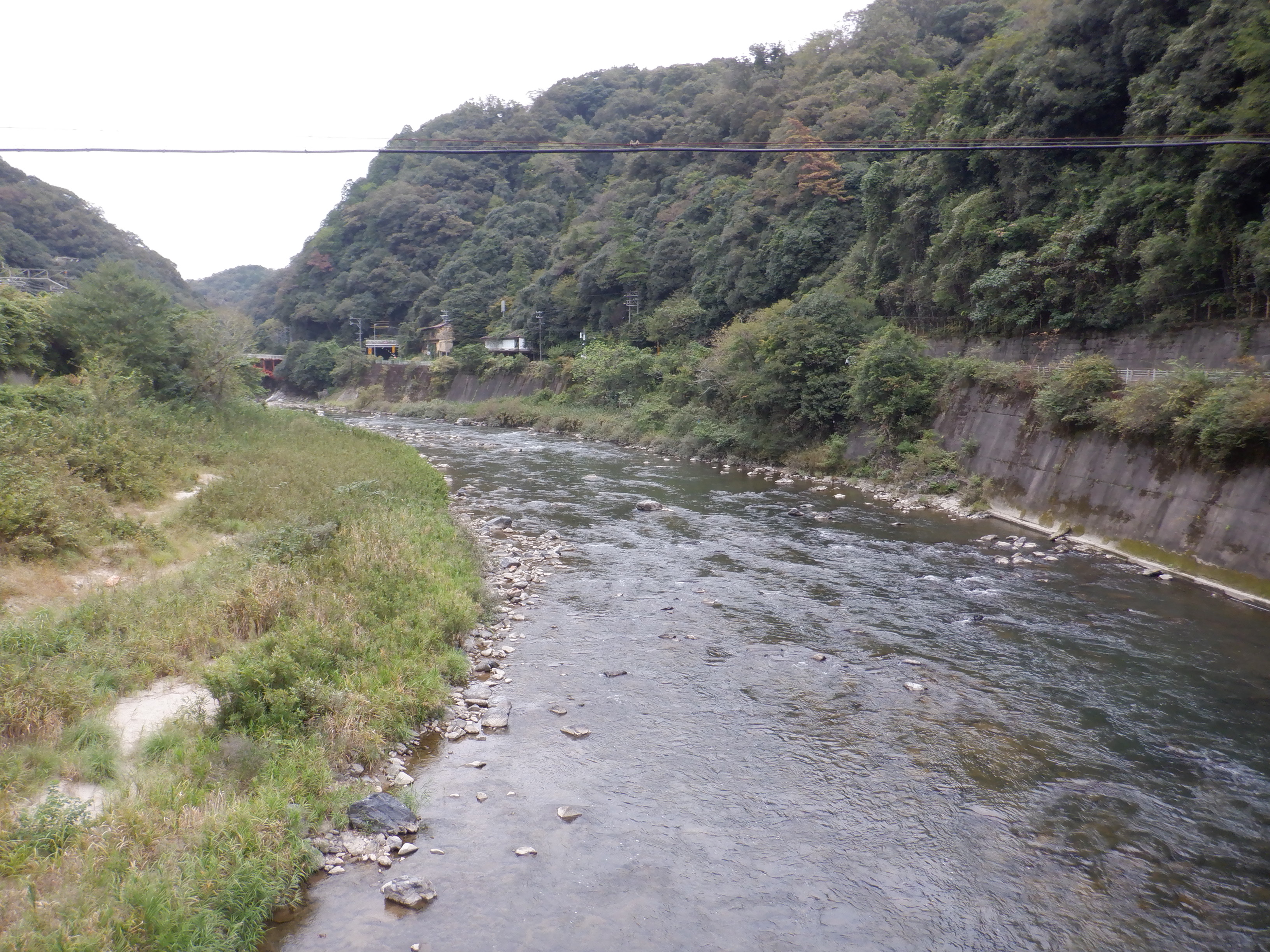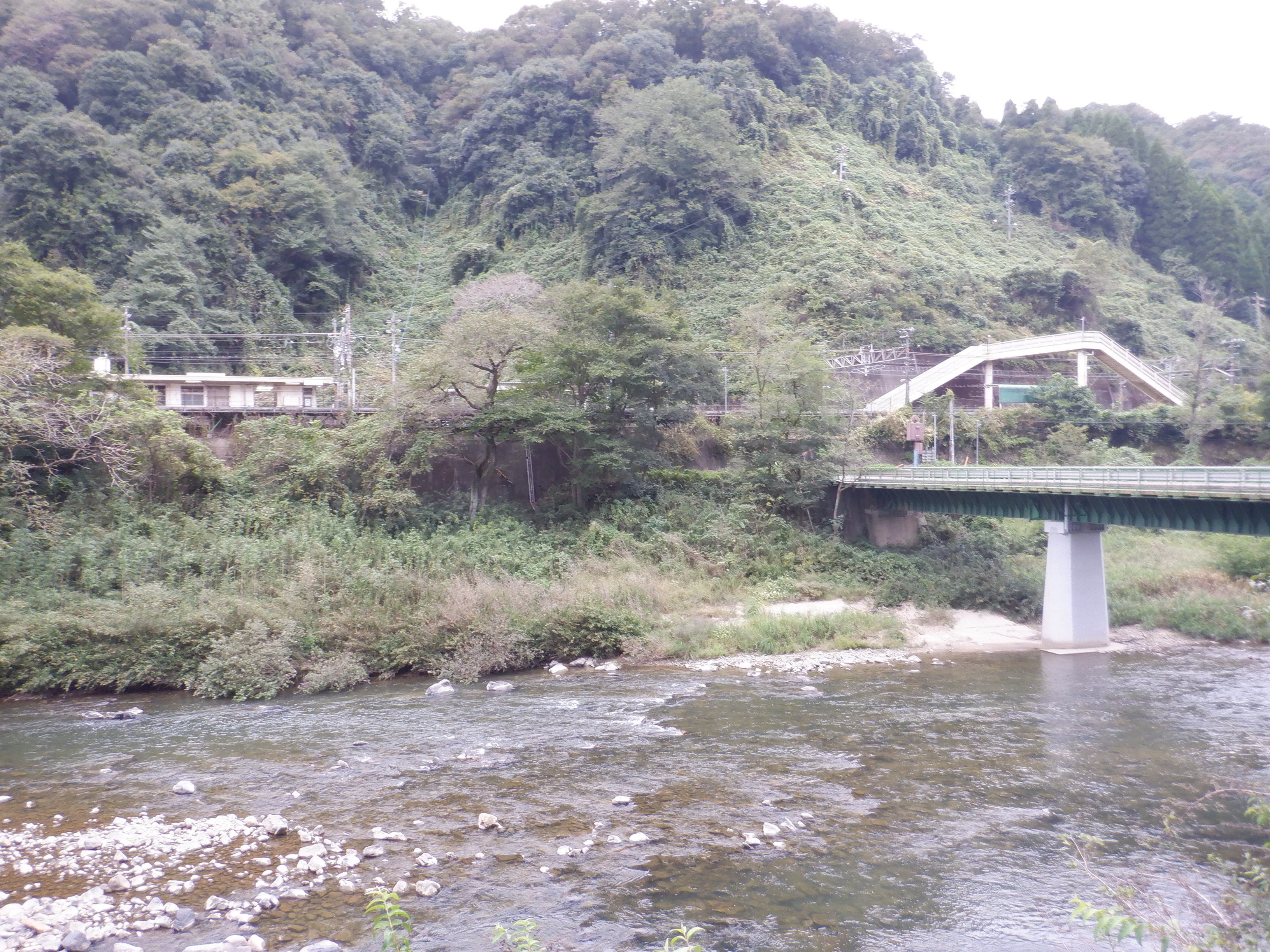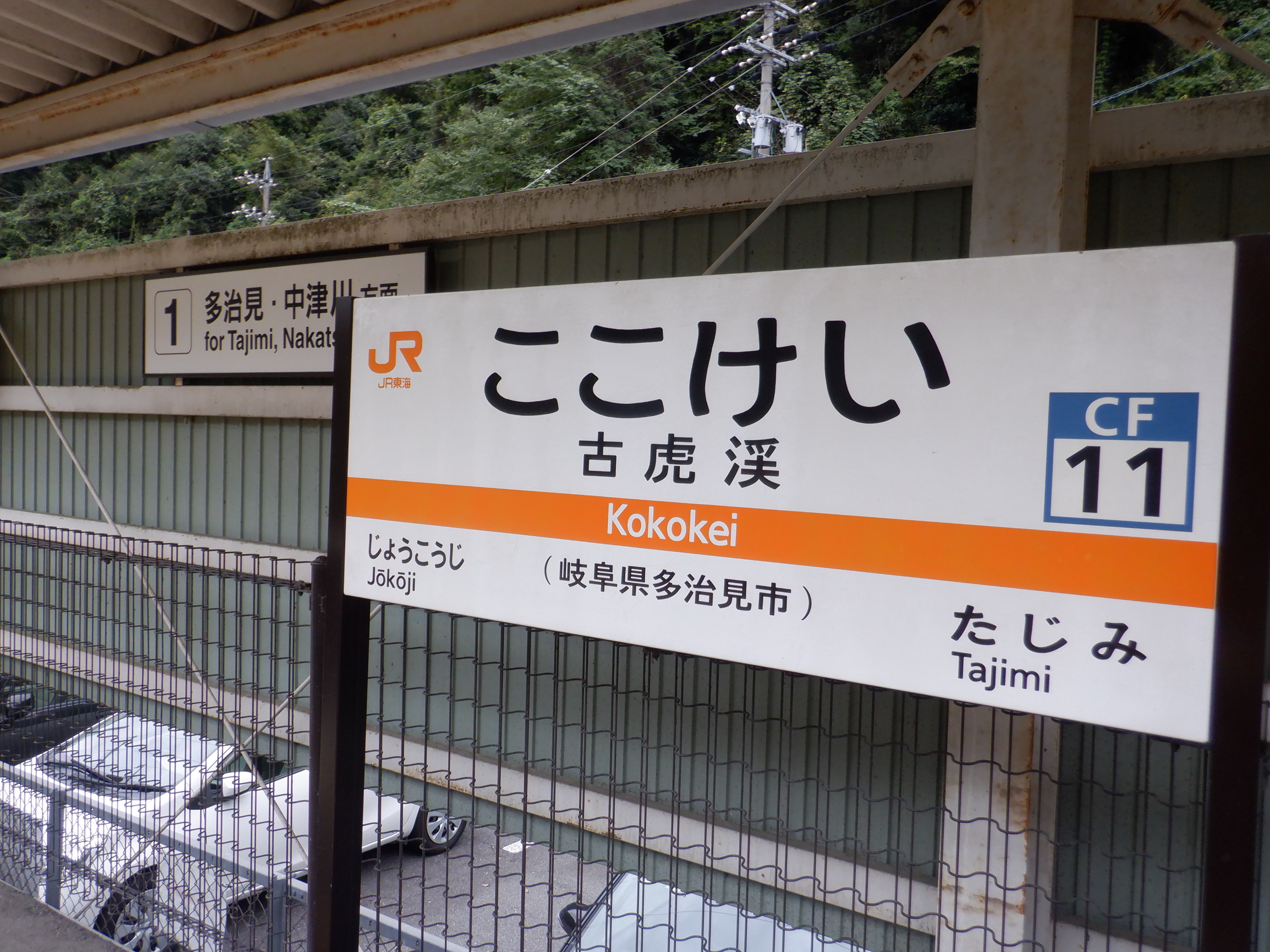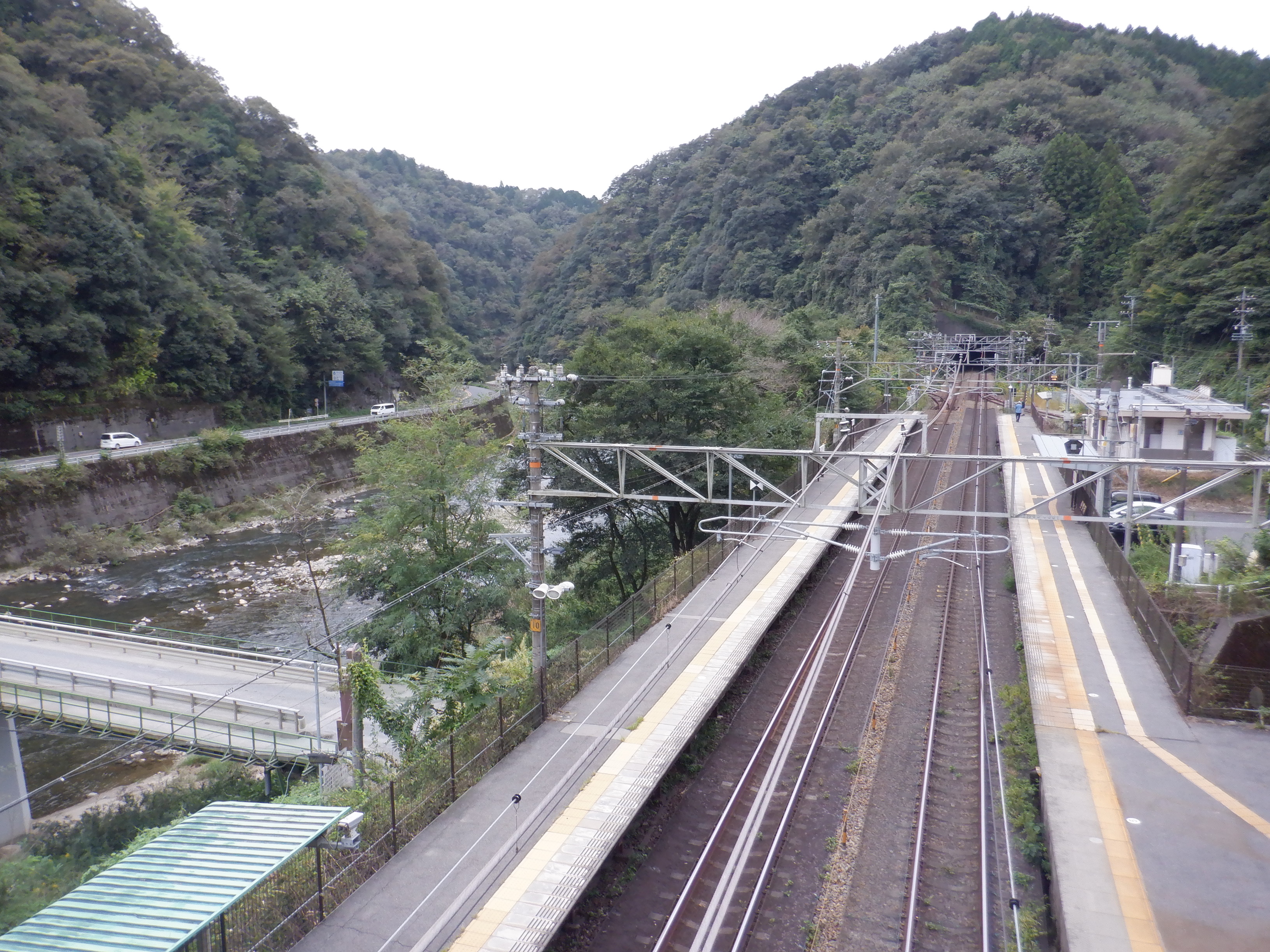 土岐川が作る渓谷の中にある駅で、両方向から来てもこの駅と隣の定光寺駅付近は雰囲気が異なっています。線路のある側は愛知県境までまだ距離がありますが、対岸は県境が近く、道を少し進むと愛知県瀬戸市に入ります。