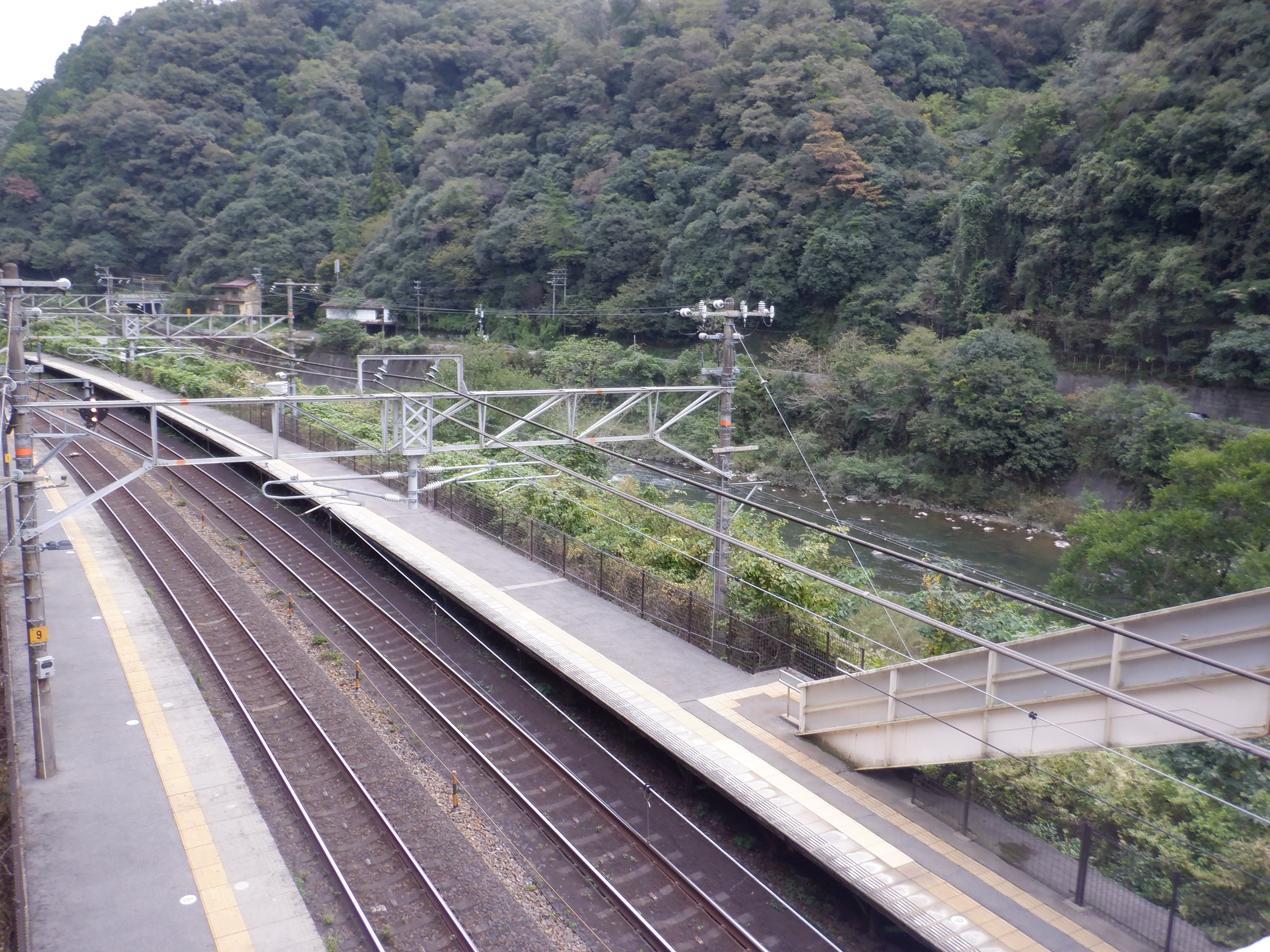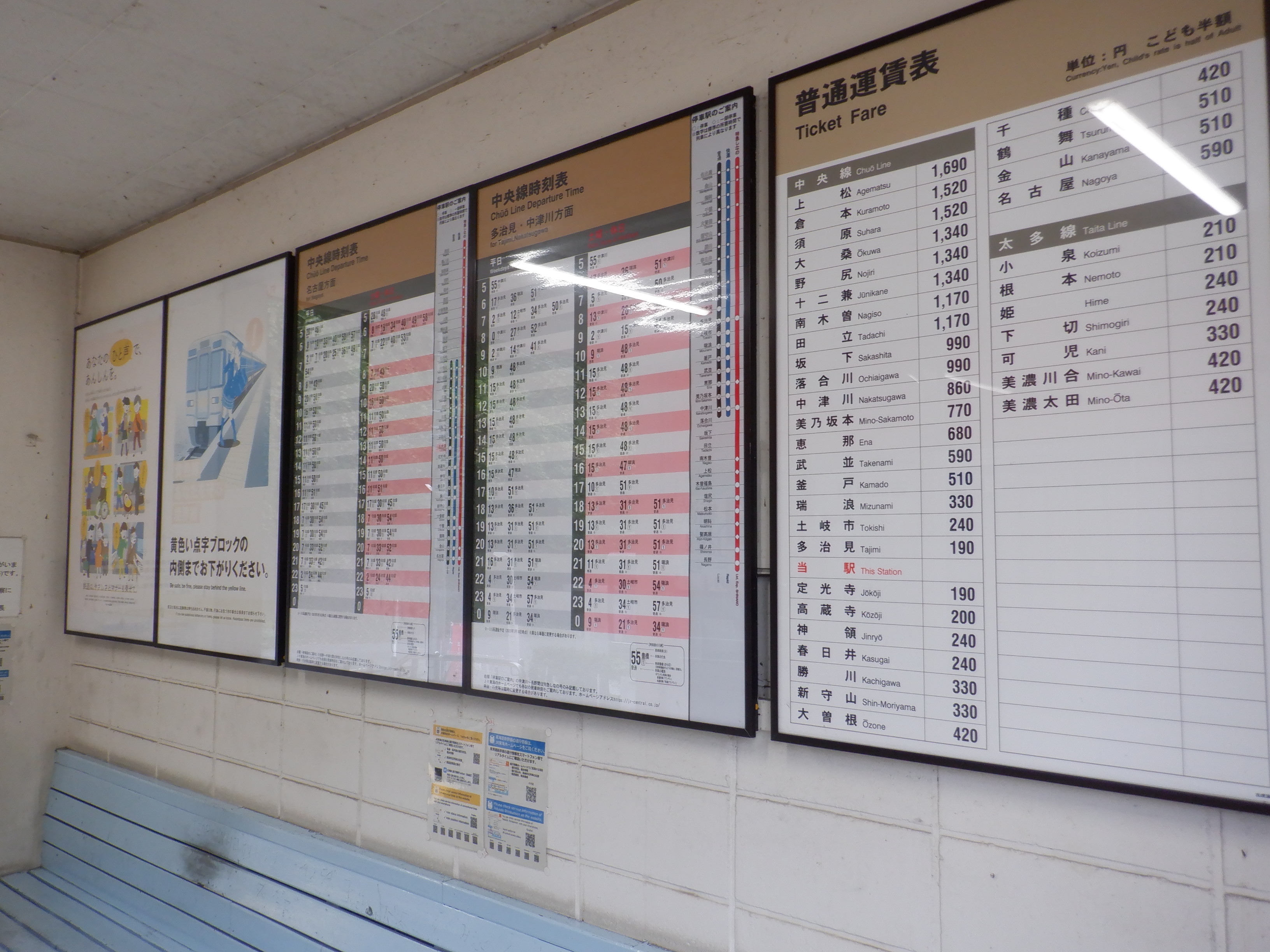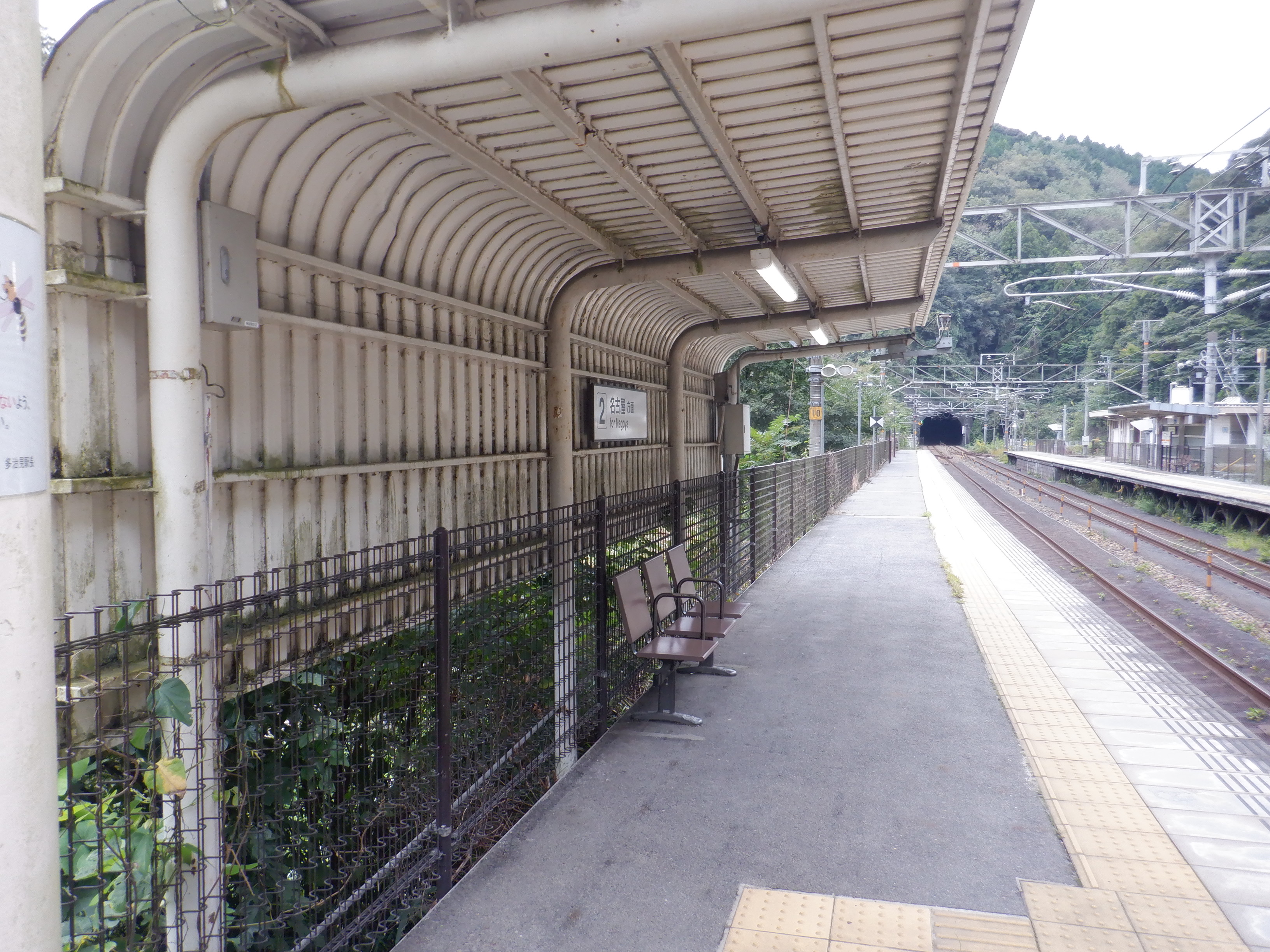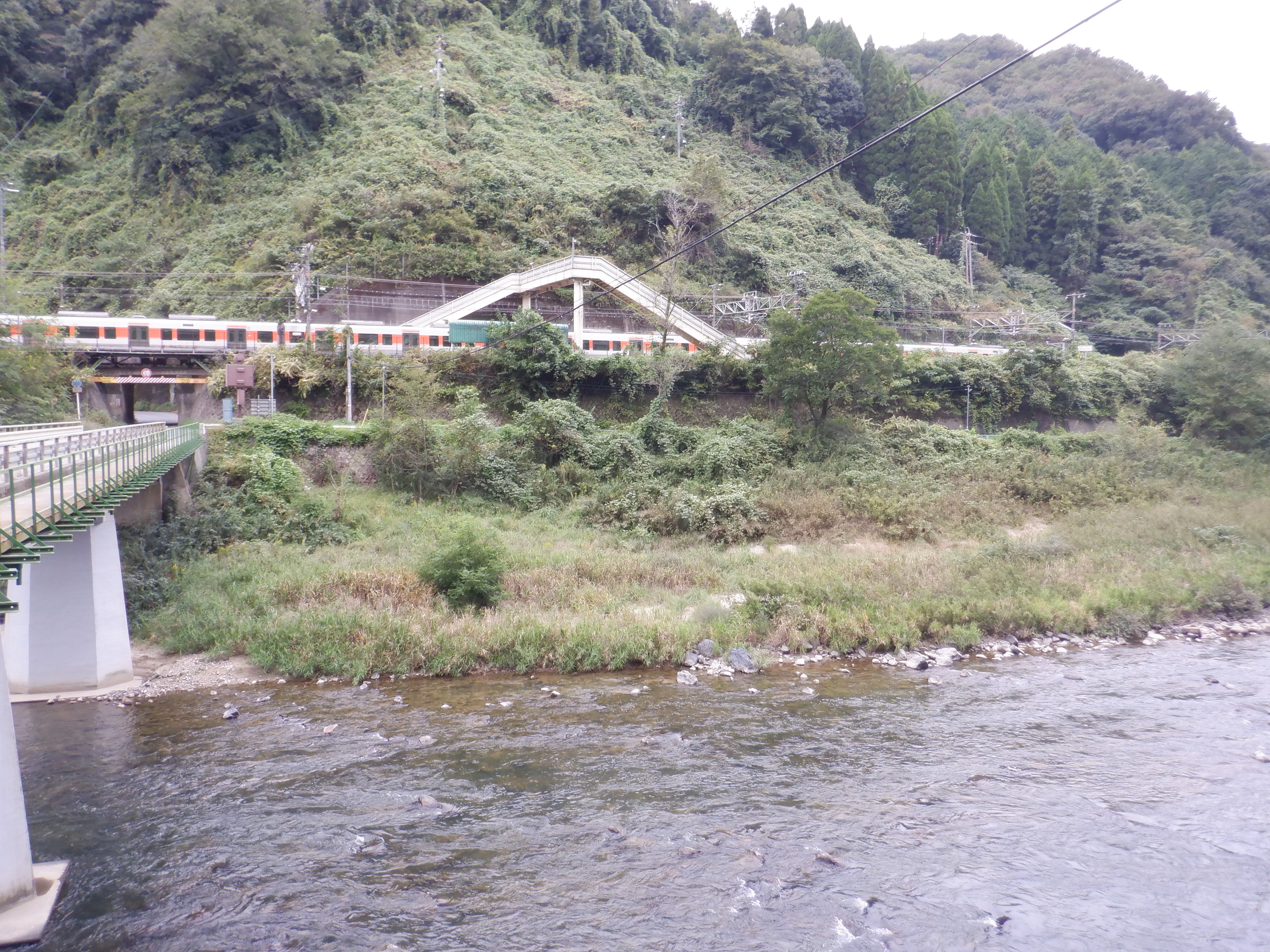 土岐川が作る渓谷の中にある駅で、両方向から来てもこの駅と隣の定光寺駅付近は雰囲気が異なっています。線路のある側は愛知県境までまだ距離がありますが、対岸は県境が近く、道を少し進むと愛知県瀬戸市に入ります。