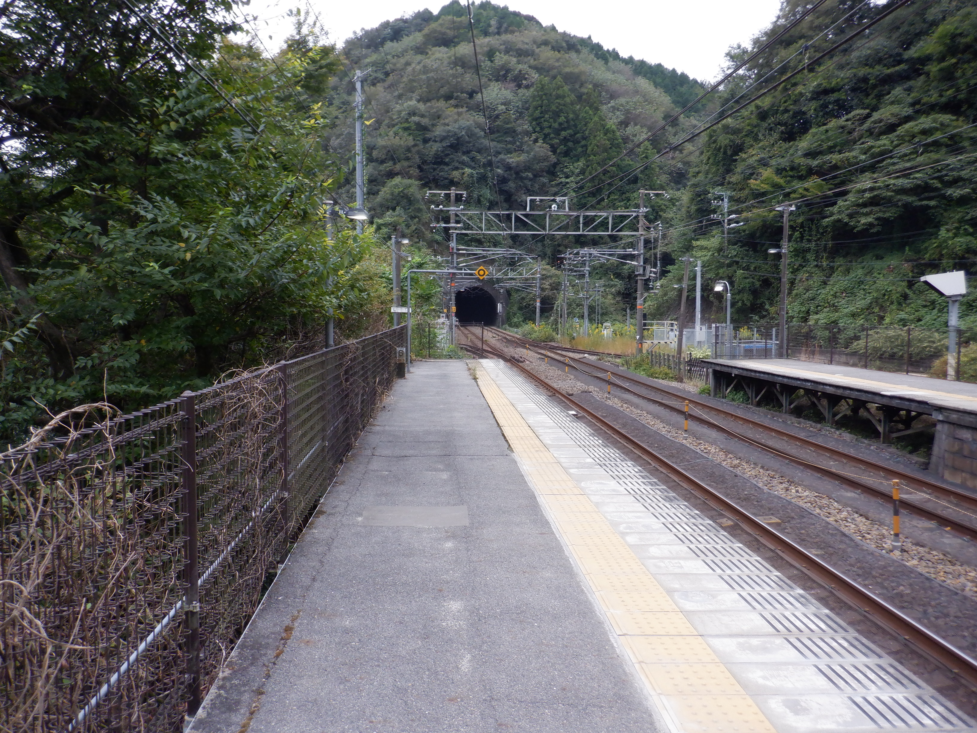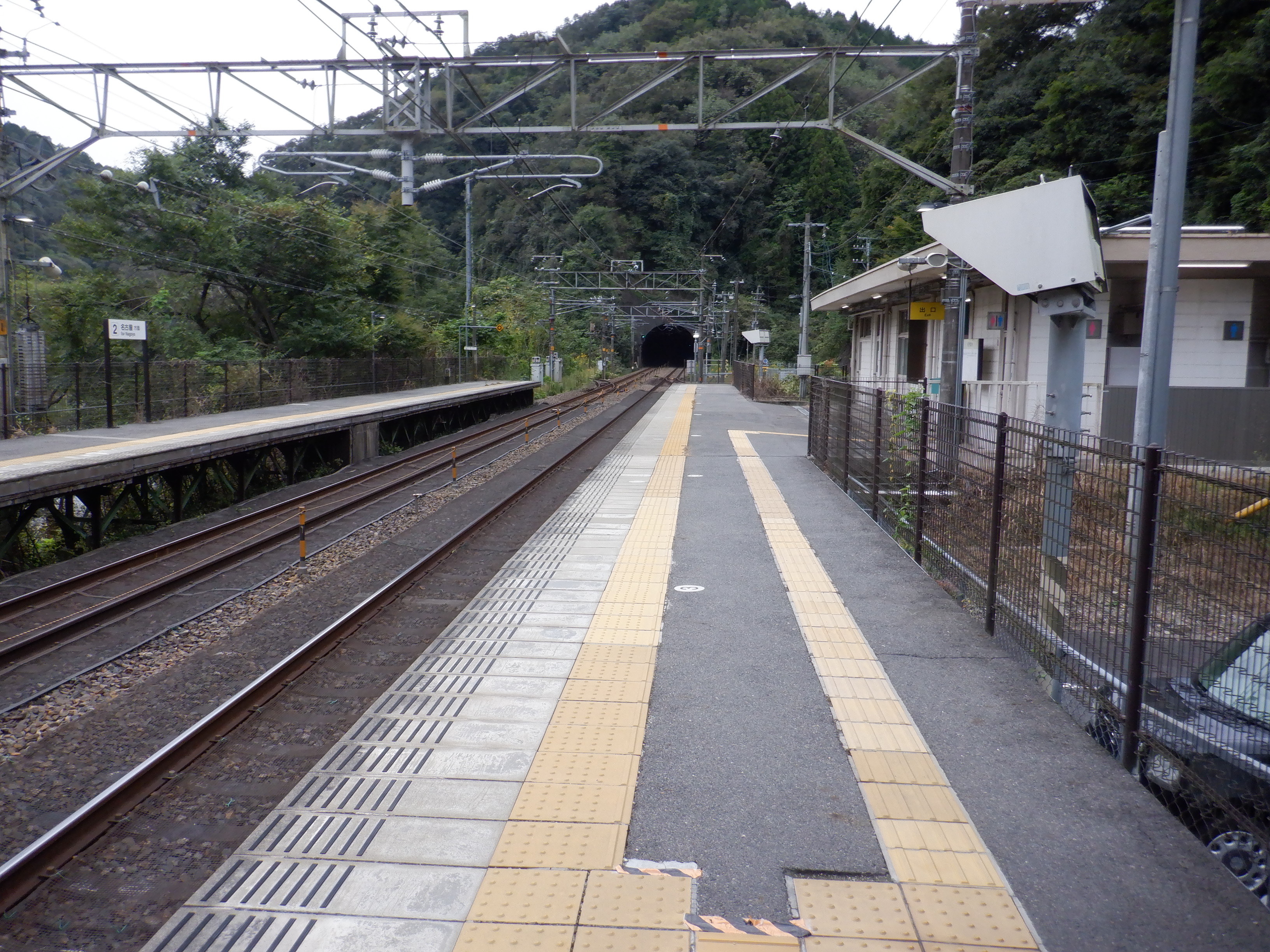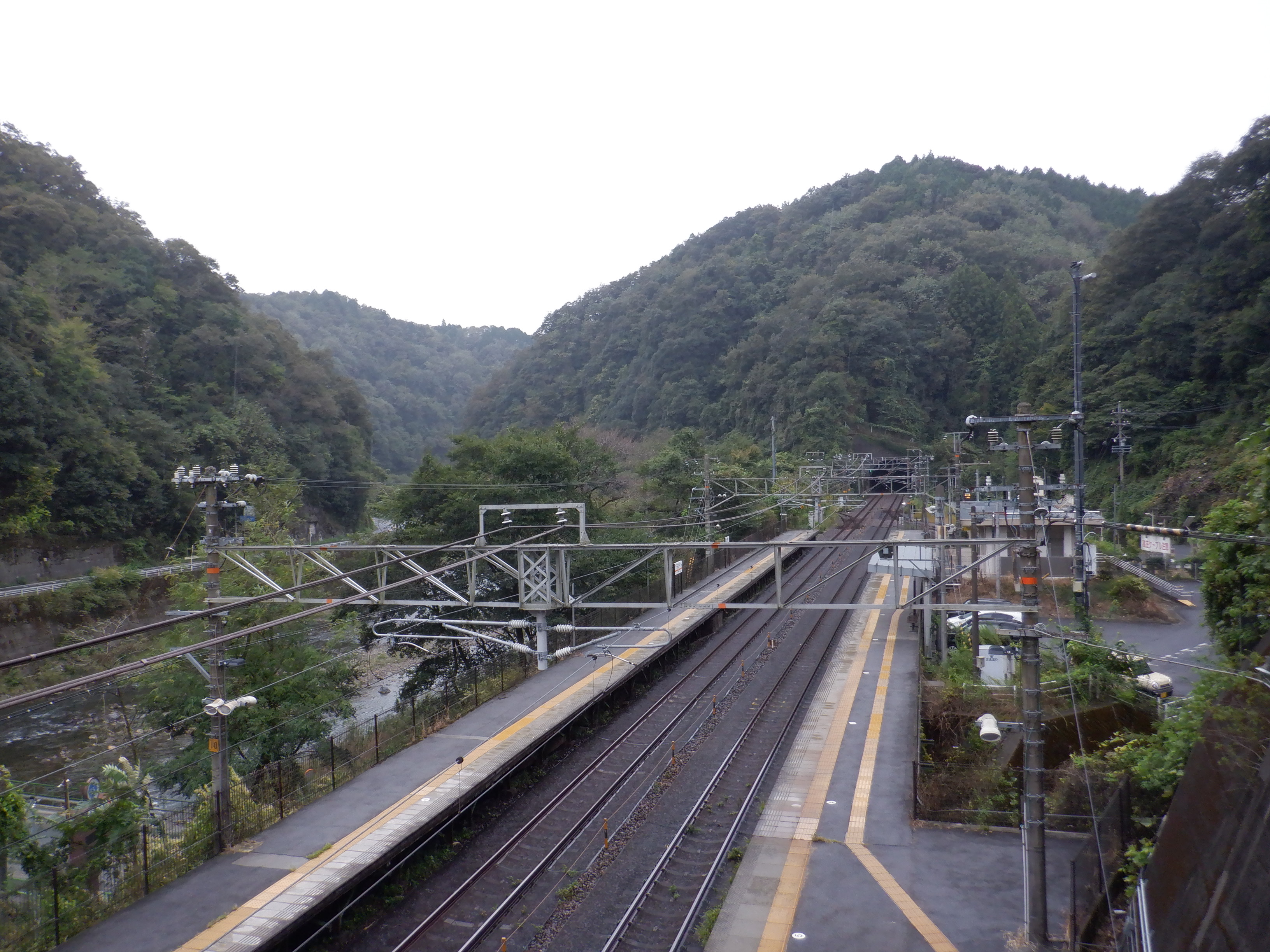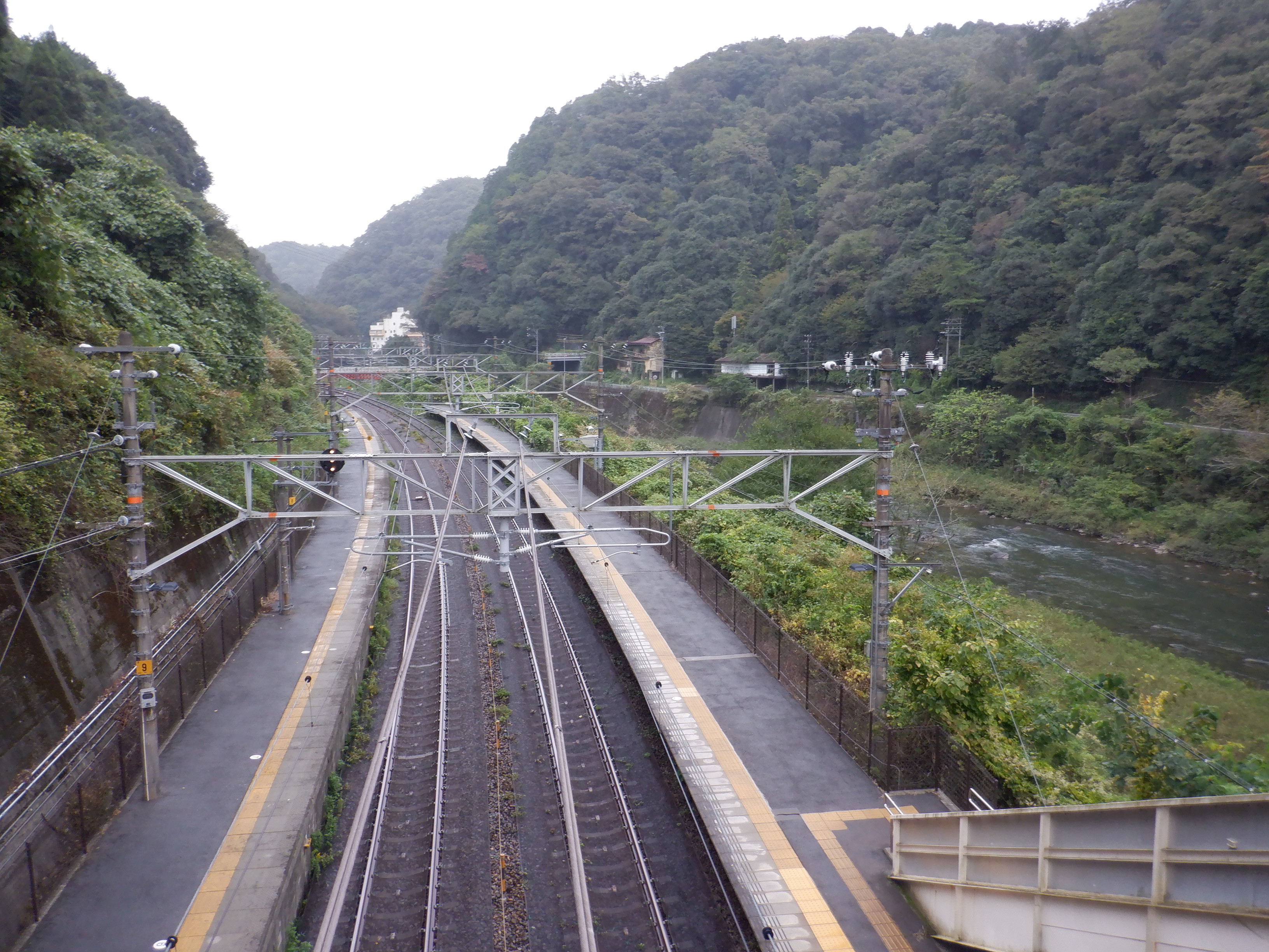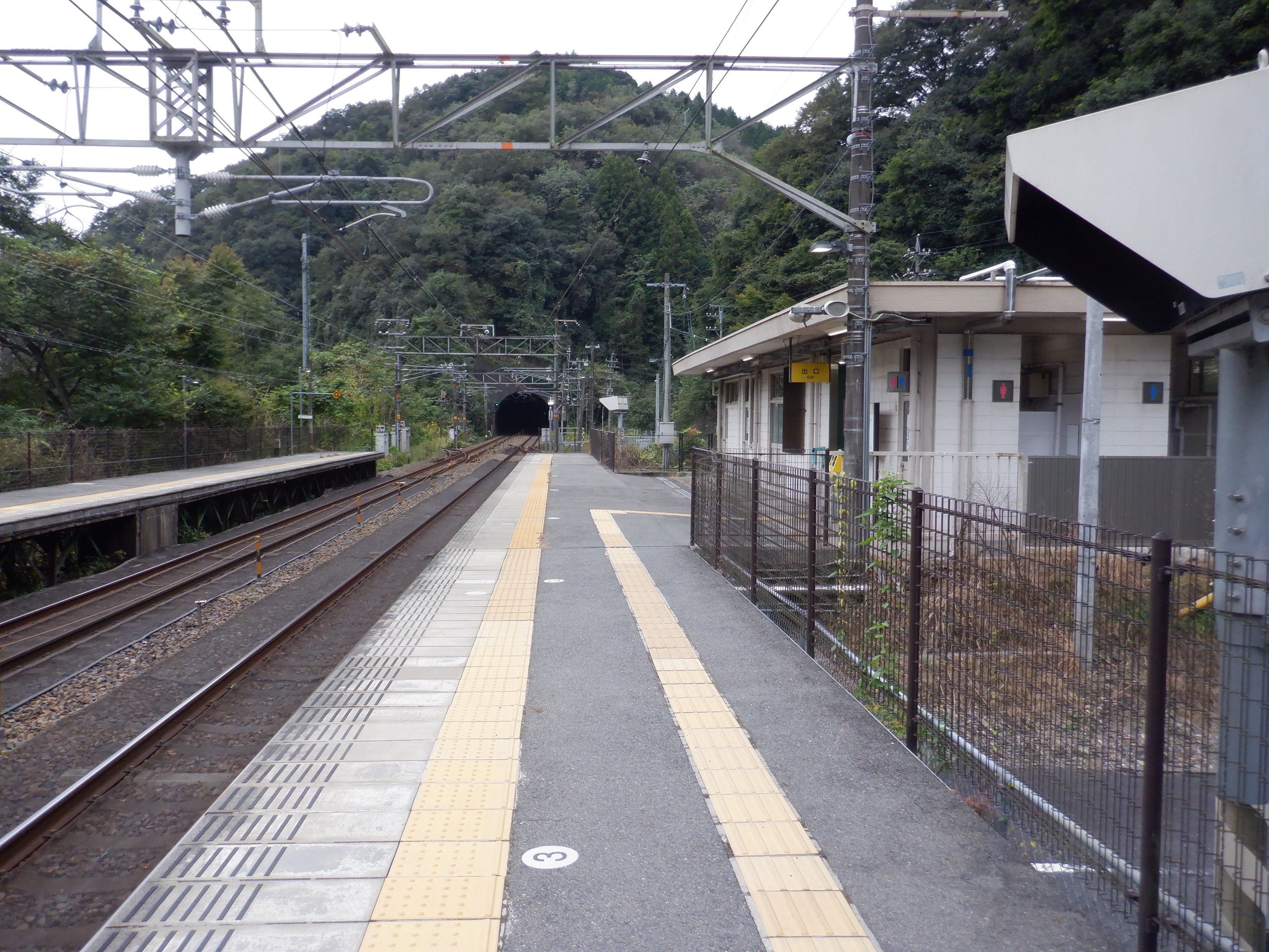 土岐川が作る渓谷の中にある駅で、両方向から来てもこの駅と隣の定光寺駅付近は雰囲気が異なっています。線路のある側は愛知県境までまだ距離がありますが、対岸は県境が近く、道を少し進むと愛知県瀬戸市に入ります。