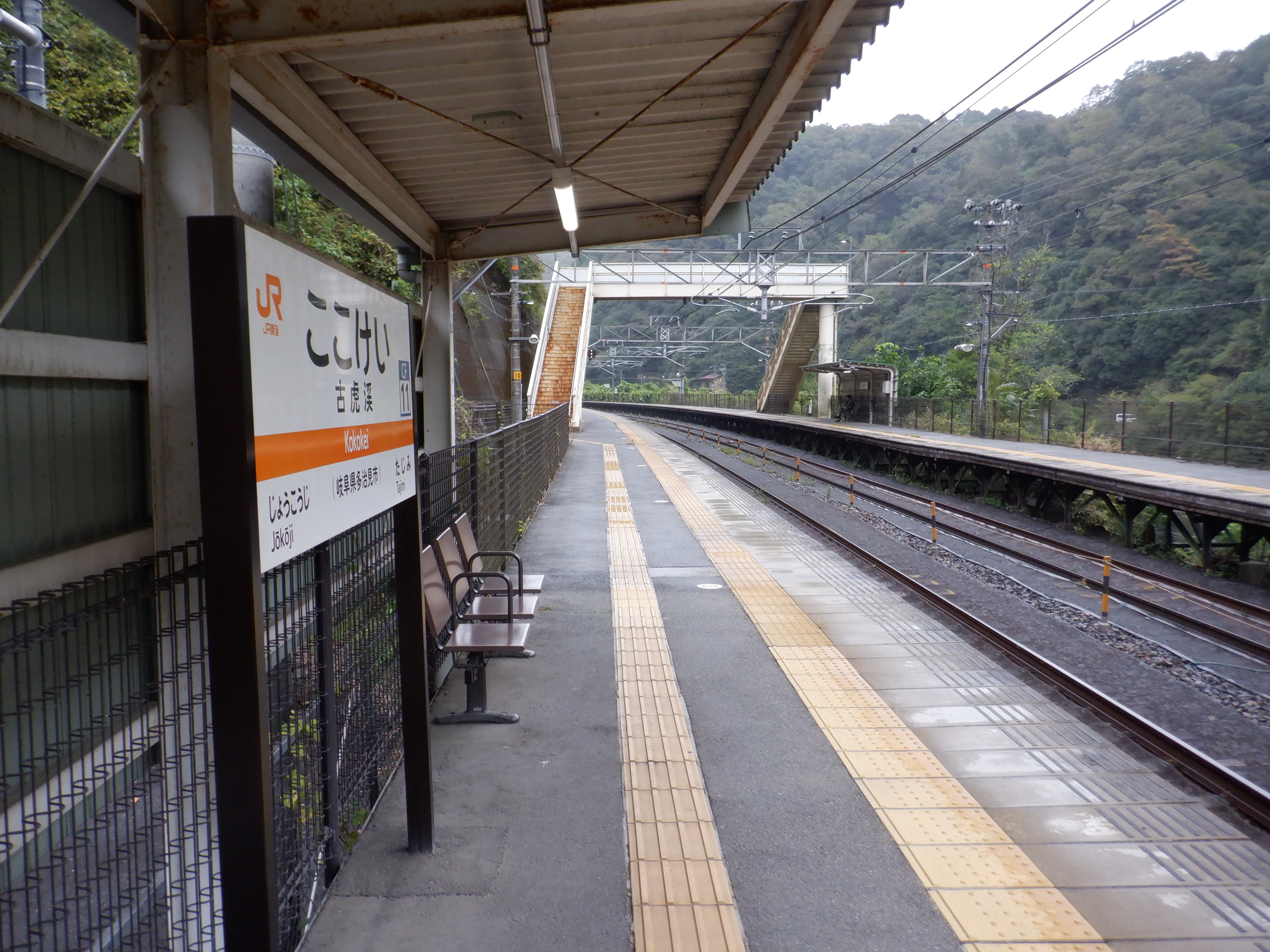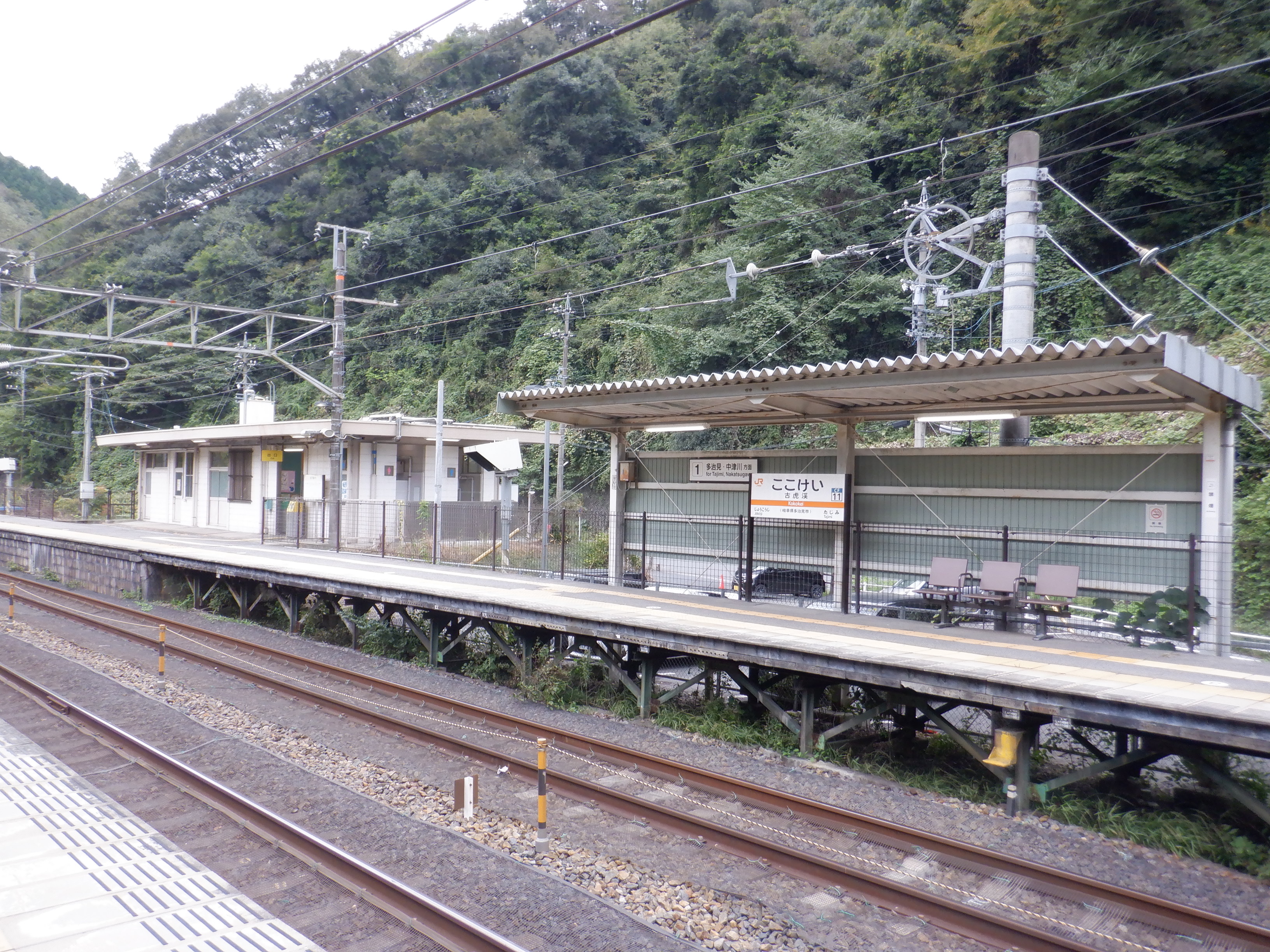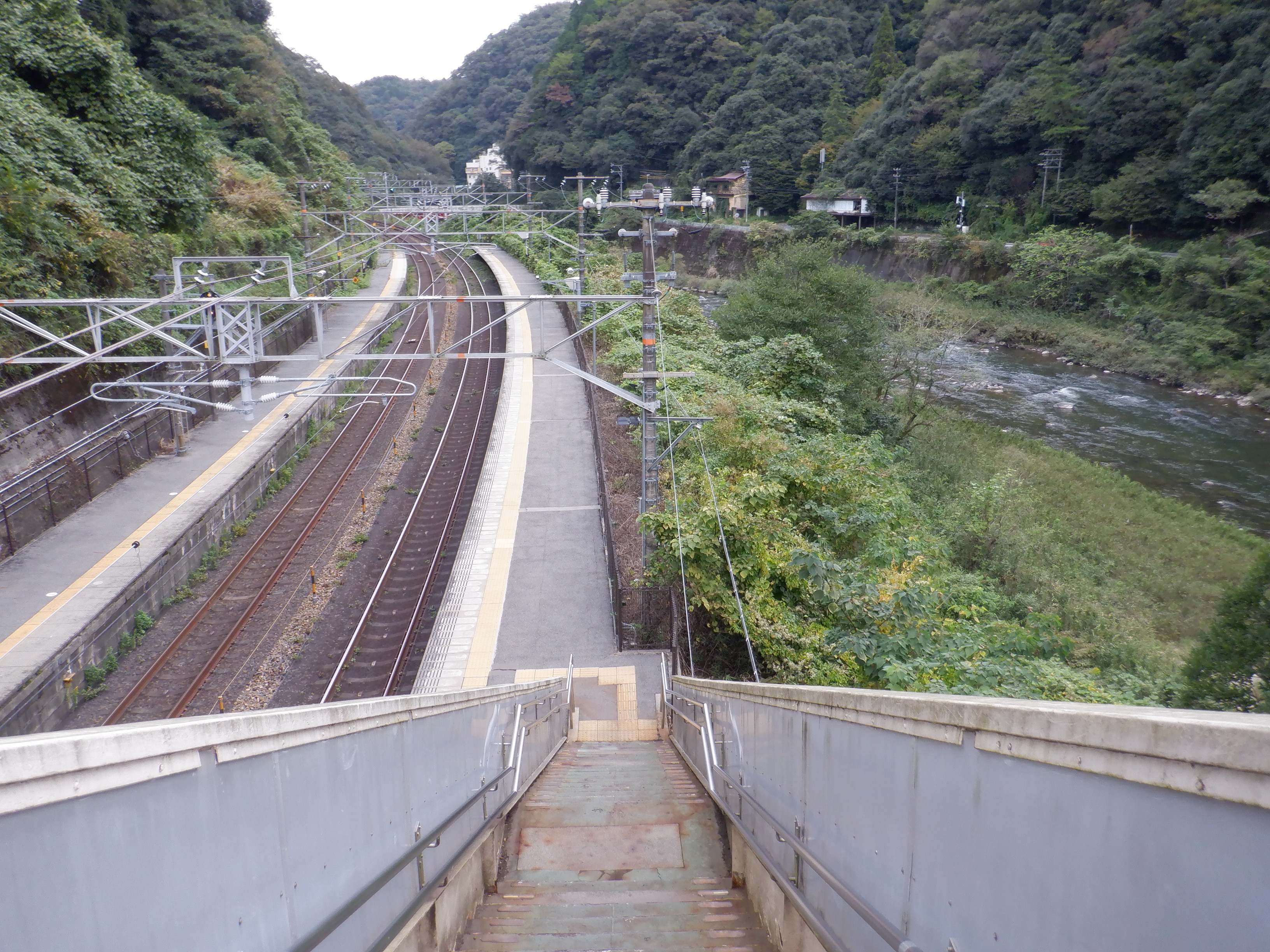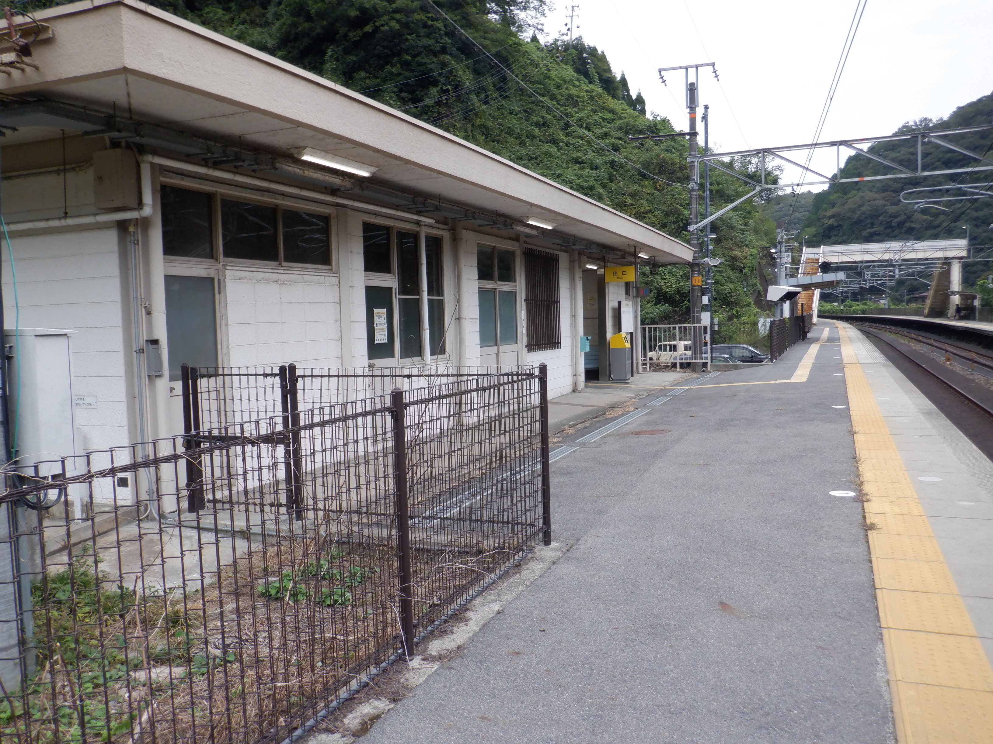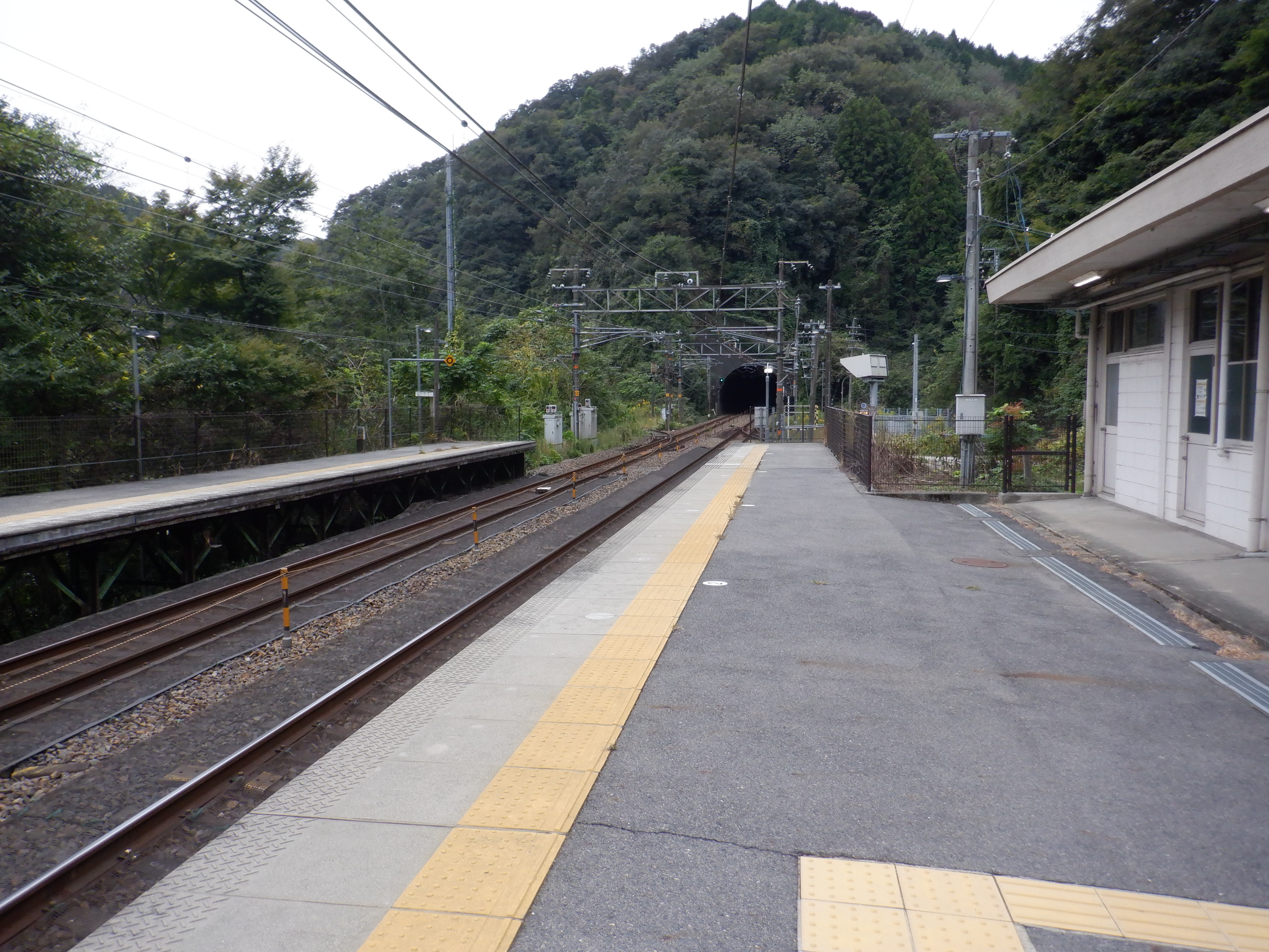 土岐川が作る渓谷の中にある駅で、両方向から来てもこの駅と隣の定光寺駅付近は雰囲気が異なっています。線路のある側は愛知県境までまだ距離がありますが、対岸は県境が近く、道を少し進むと愛知県瀬戸市に入ります。