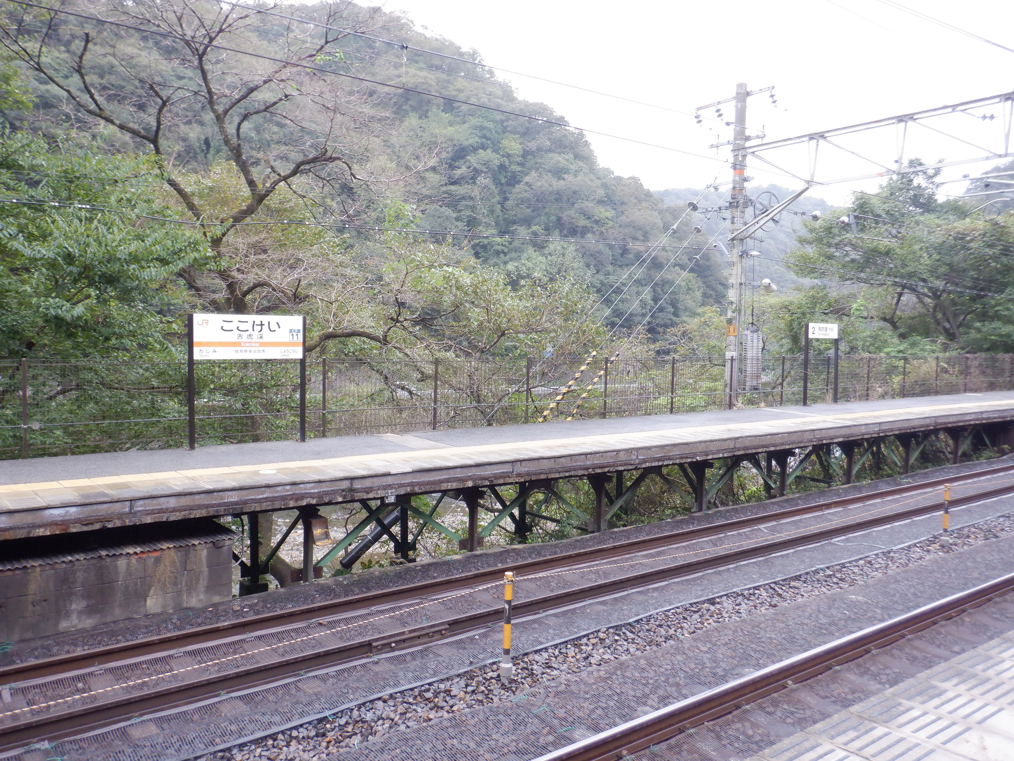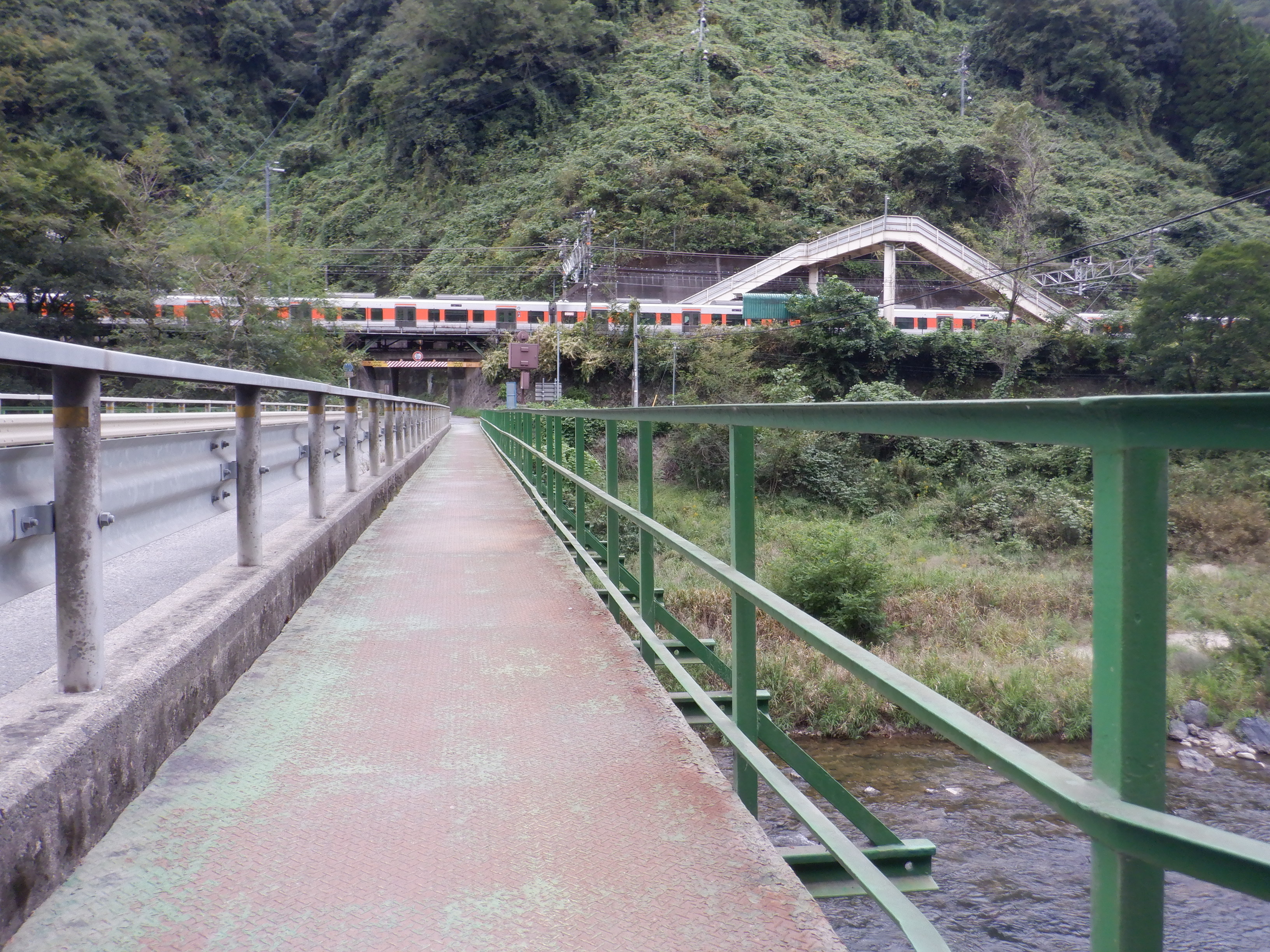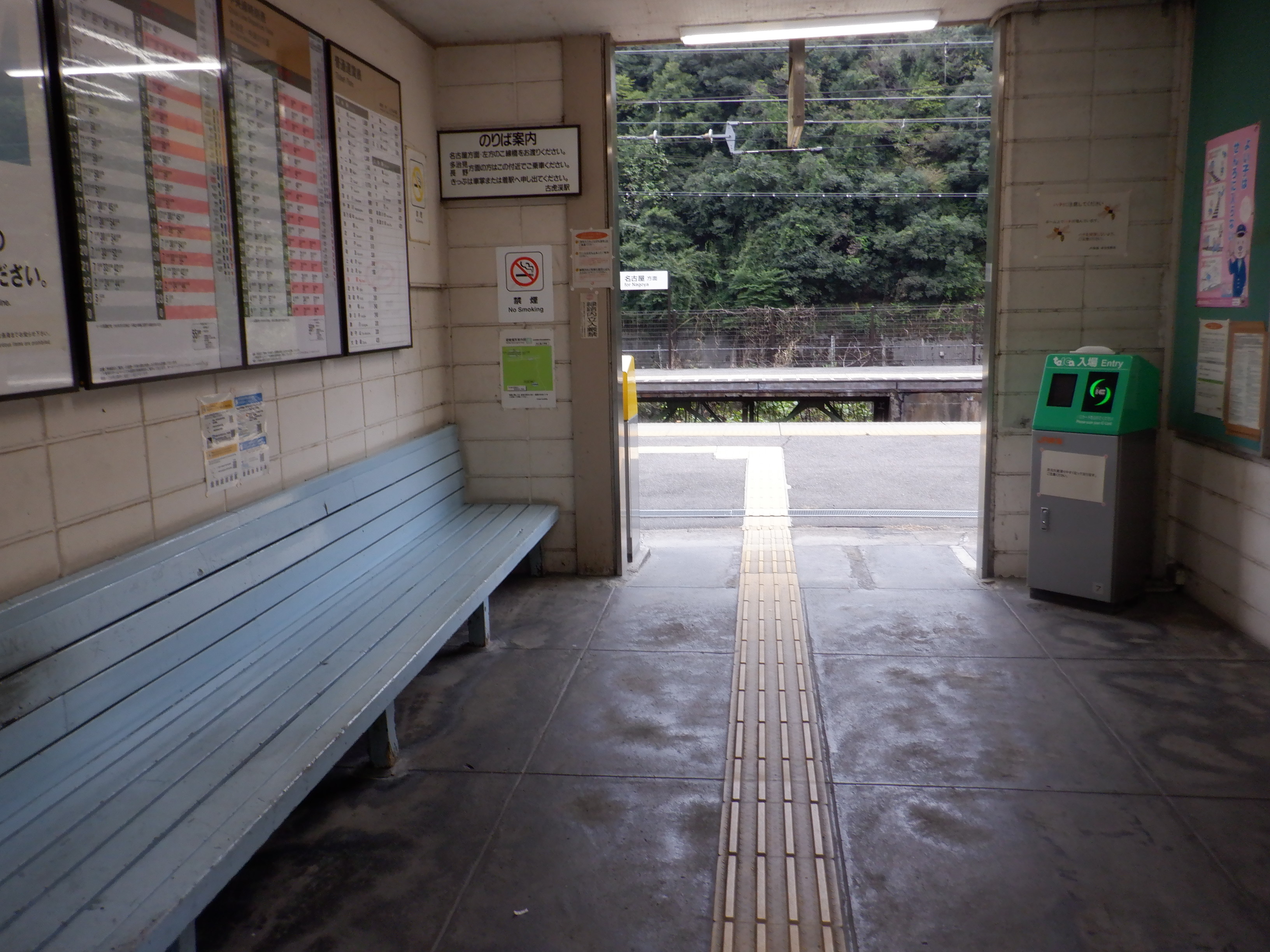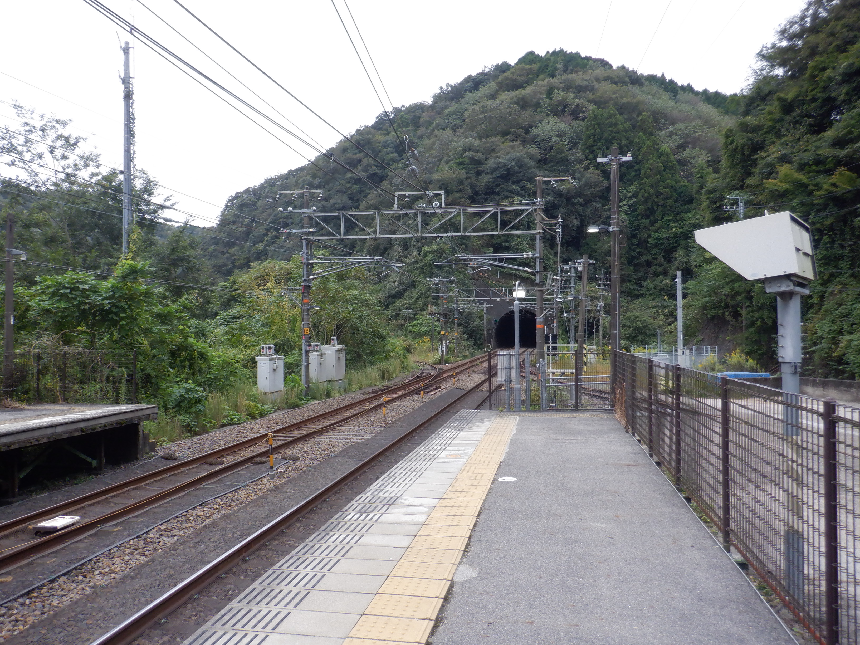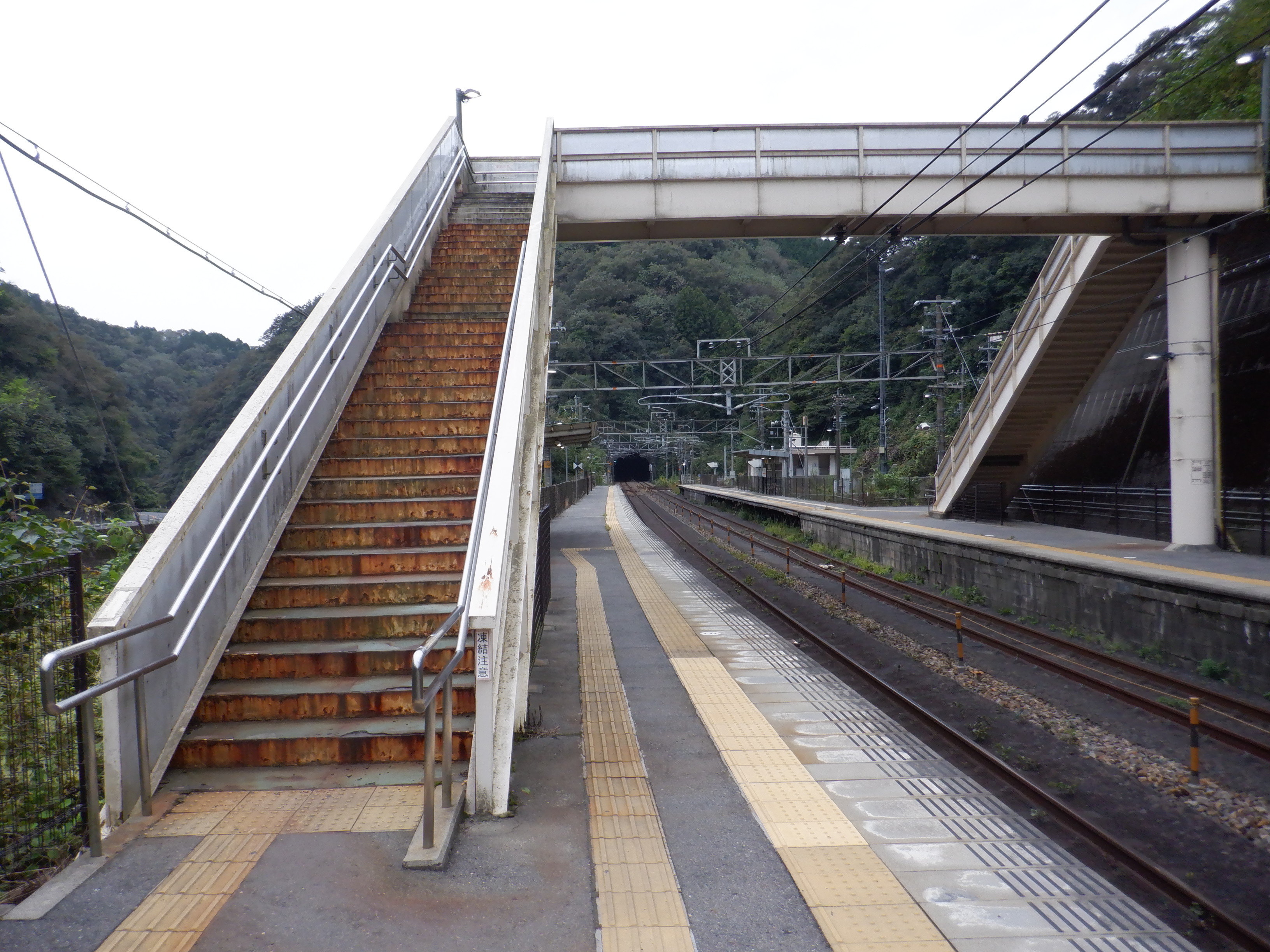 土岐川が作る渓谷の中にある駅で、両方向から来てもこの駅と隣の定光寺駅付近は雰囲気が異なっています。線路のある側は愛知県境までまだ距離がありますが、対岸は県境が近く、道を少し進むと愛知県瀬戸市に入ります。