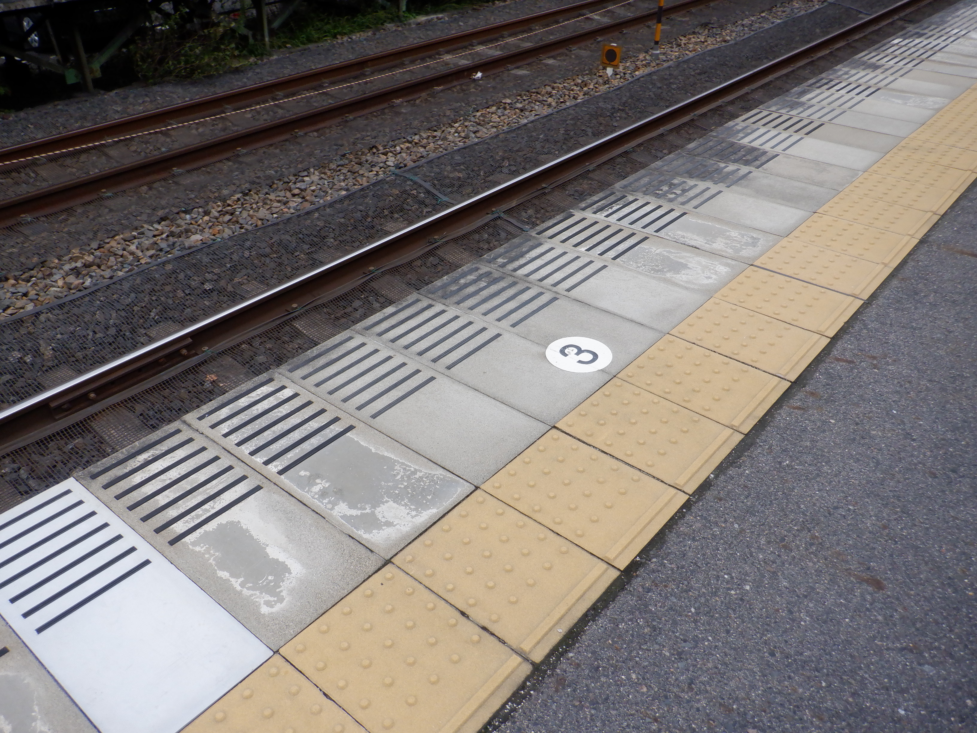 2番線の定光寺駅側から見た土岐川と乗車位置案内。