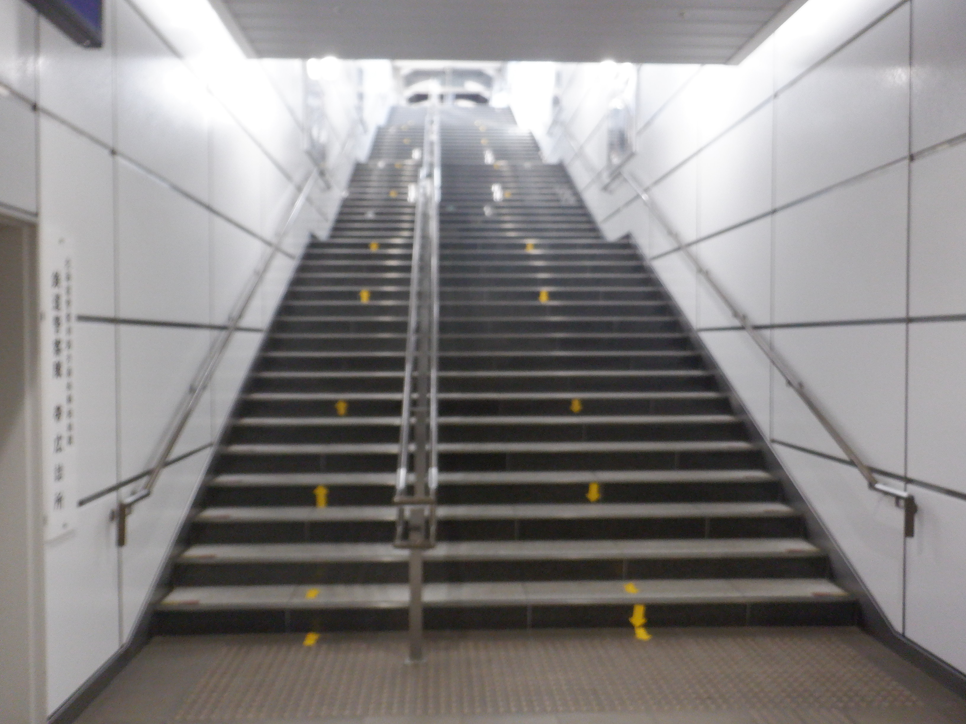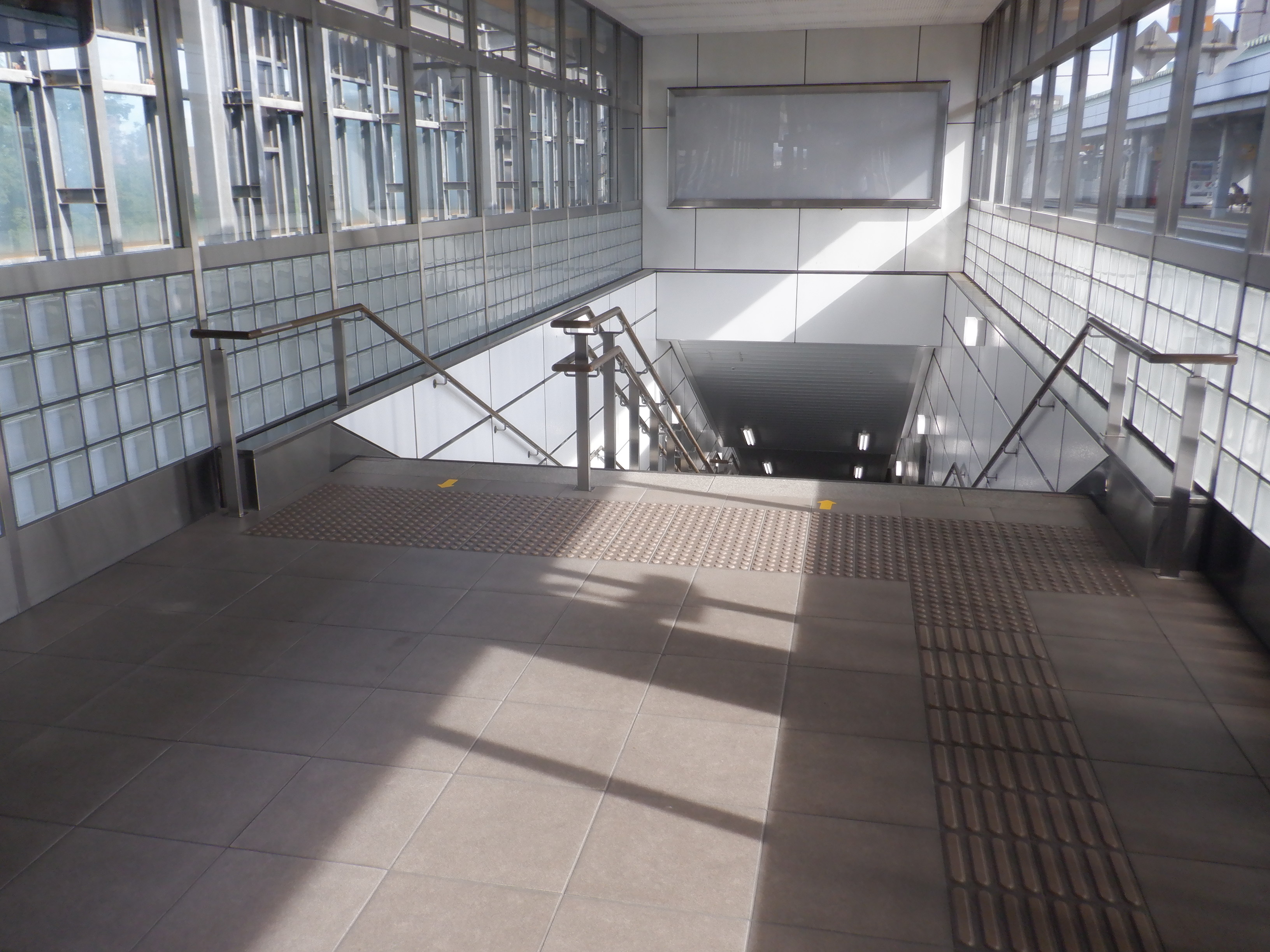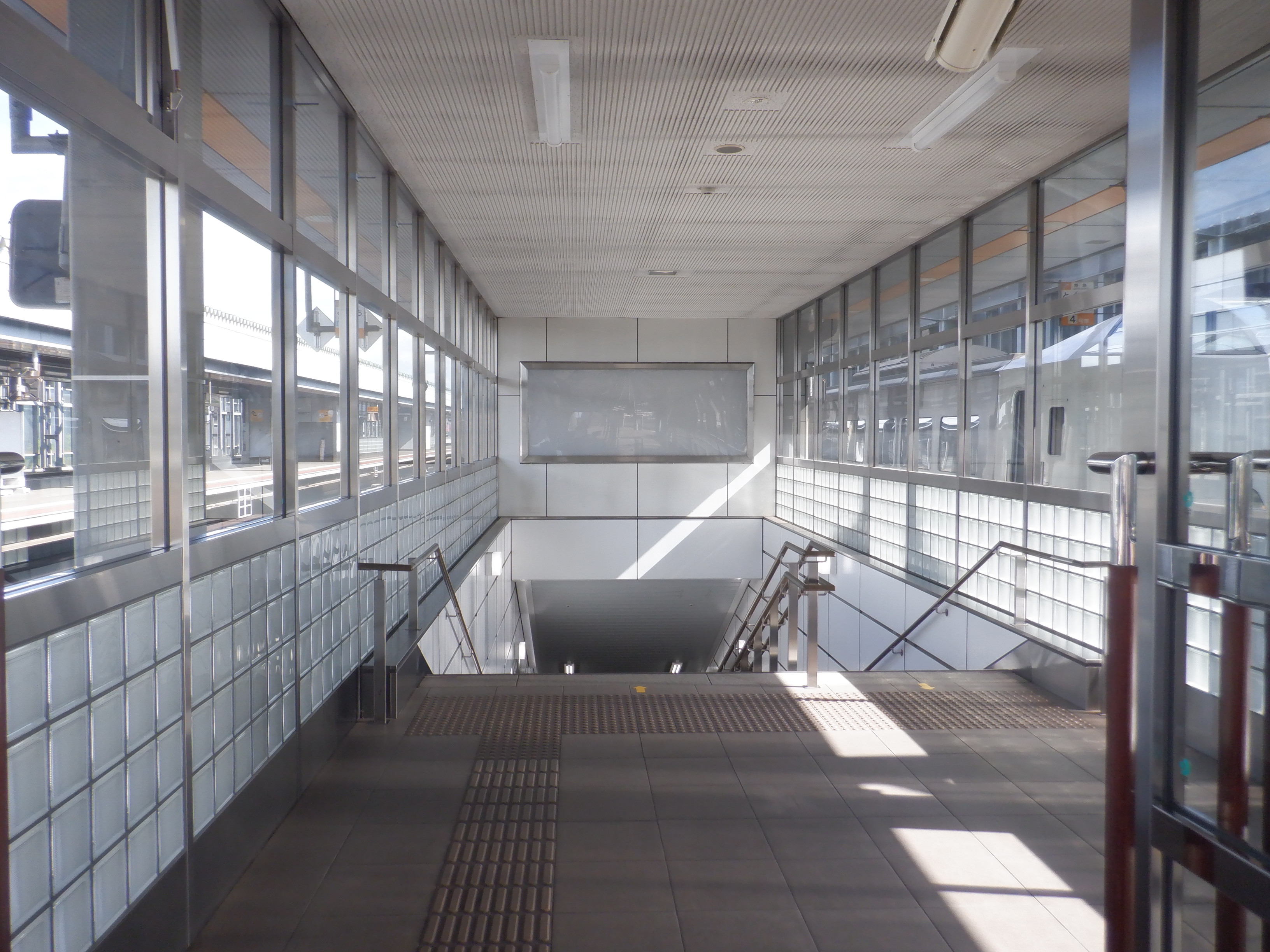 1・2番のりばから階段で改札口へ下りていくところ。