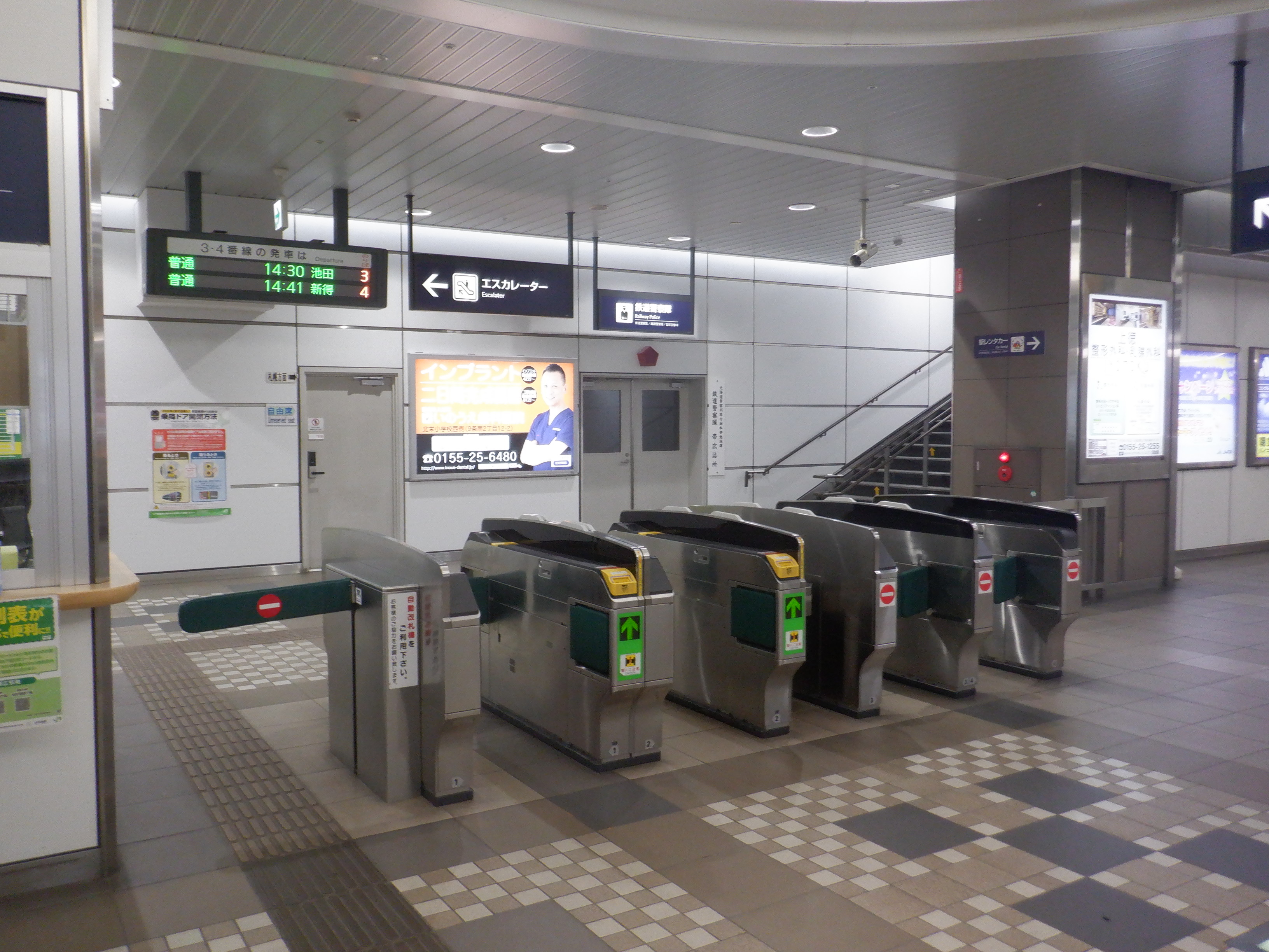 3・4番のりばの改札口を改札外(通路)から。