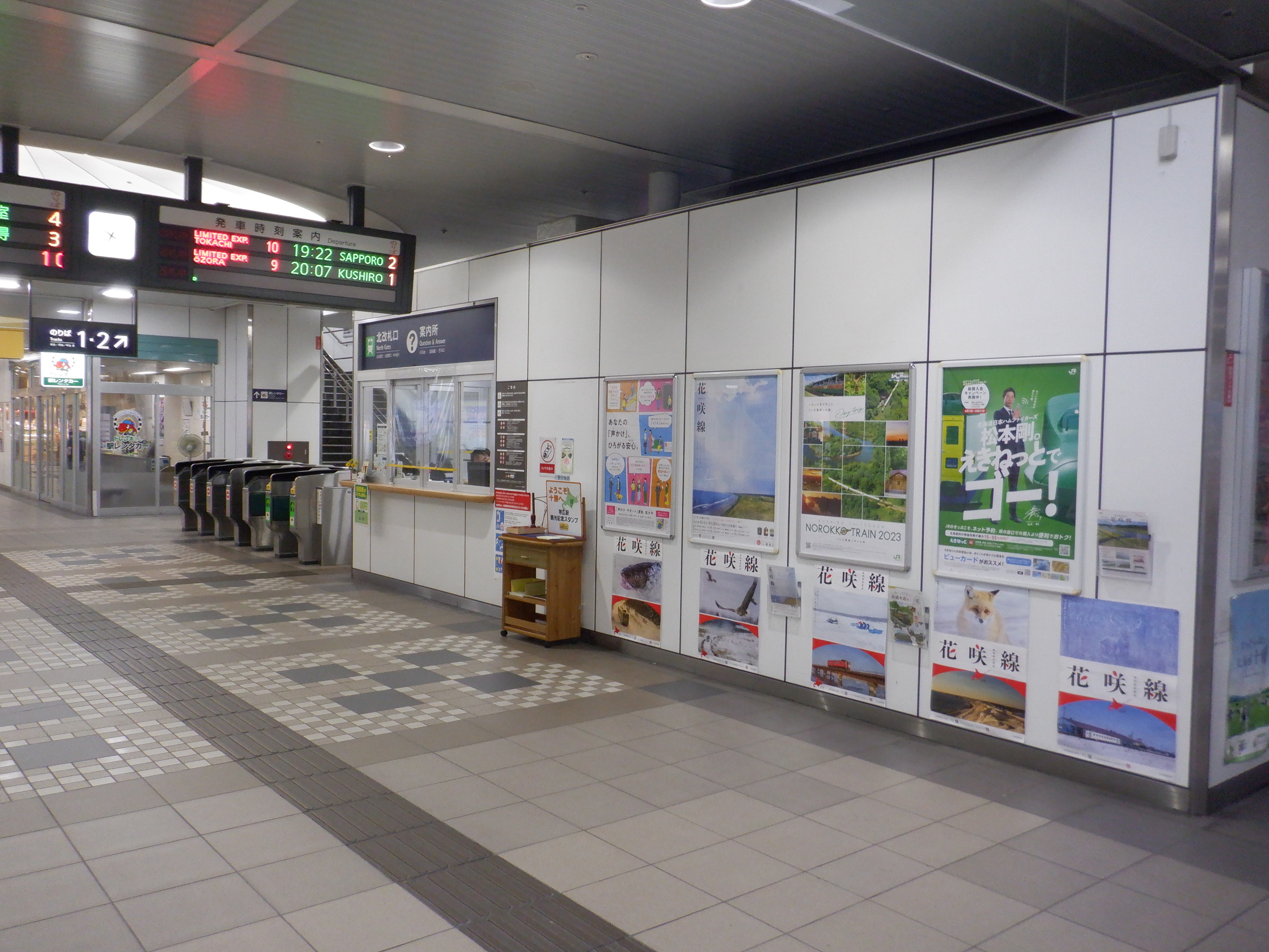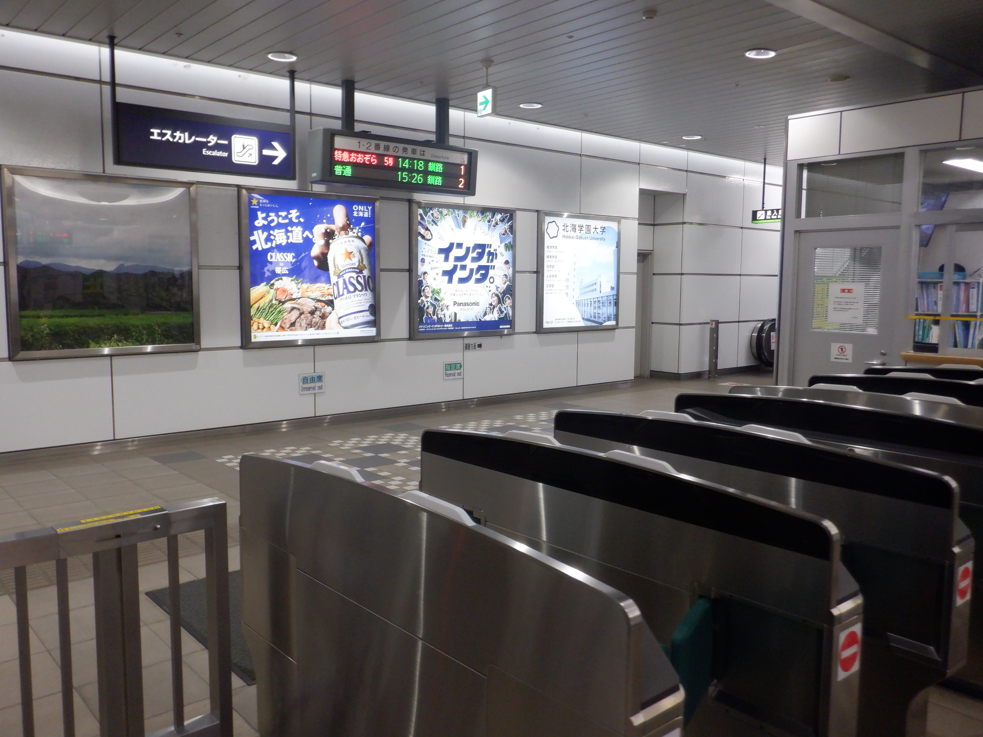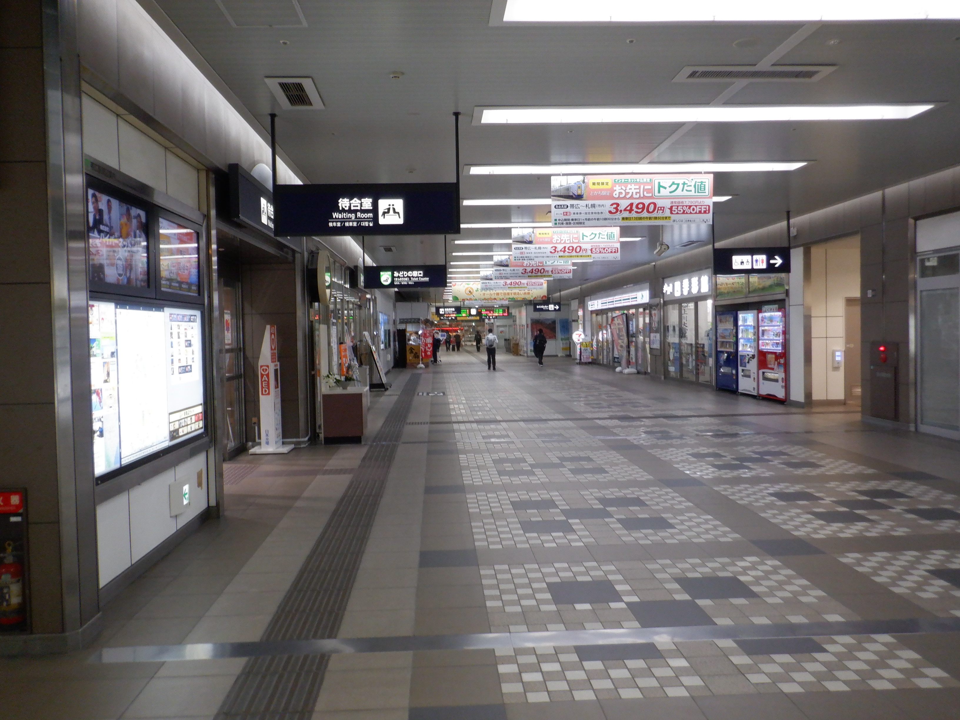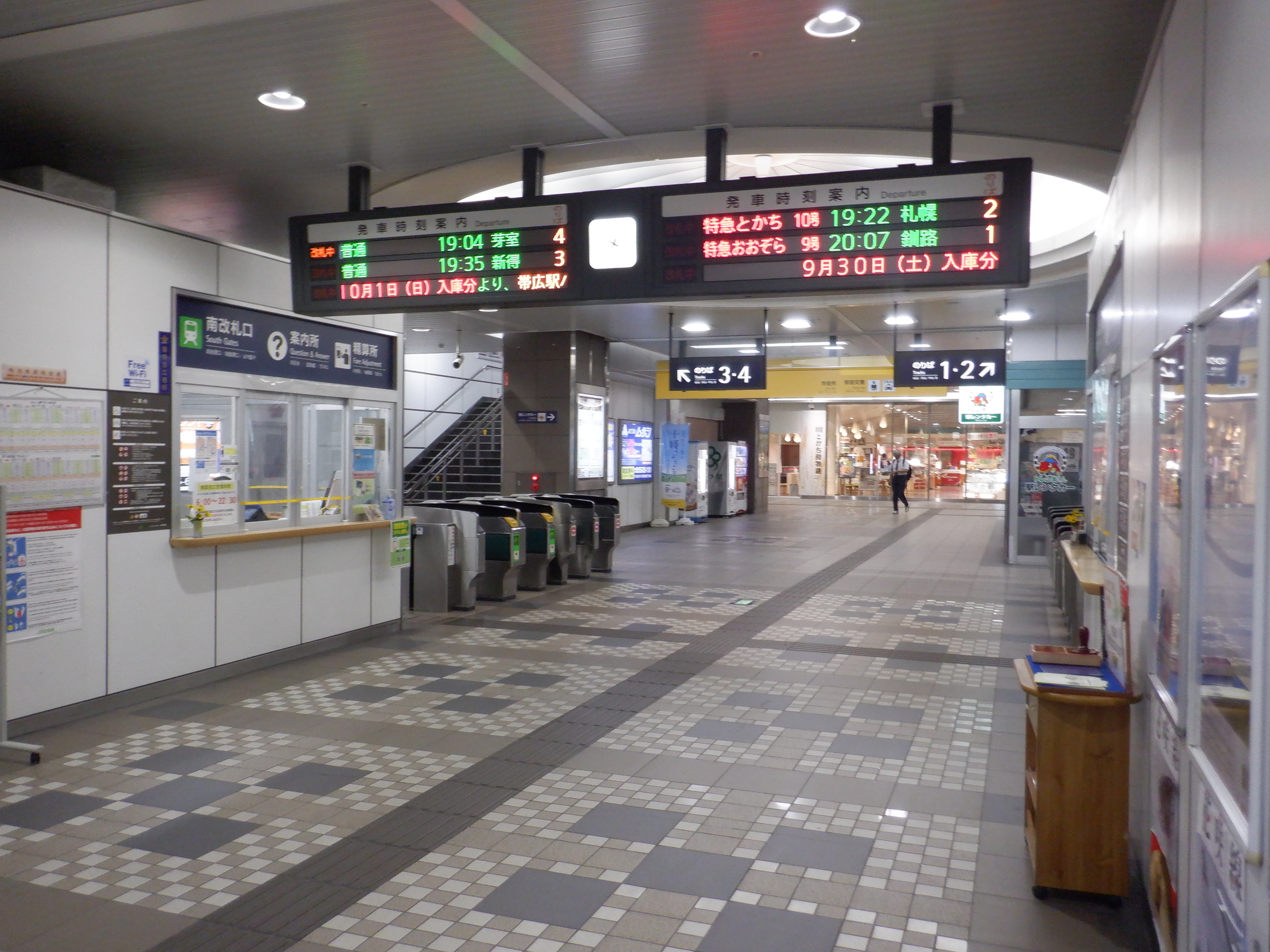 1・2番のりば札内駅側のエスカレーターから上がって行ったところ。
