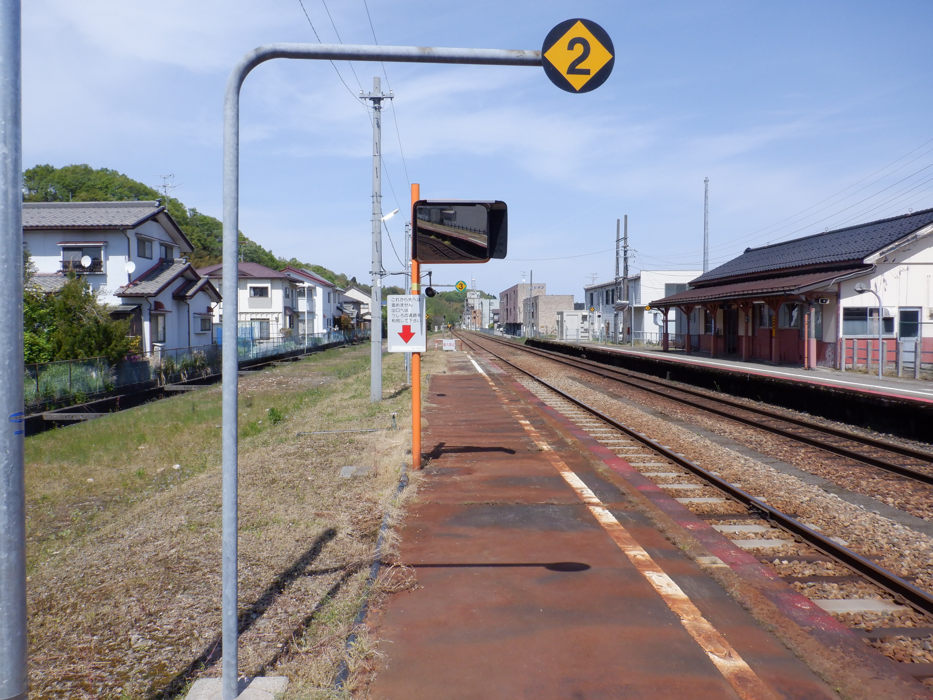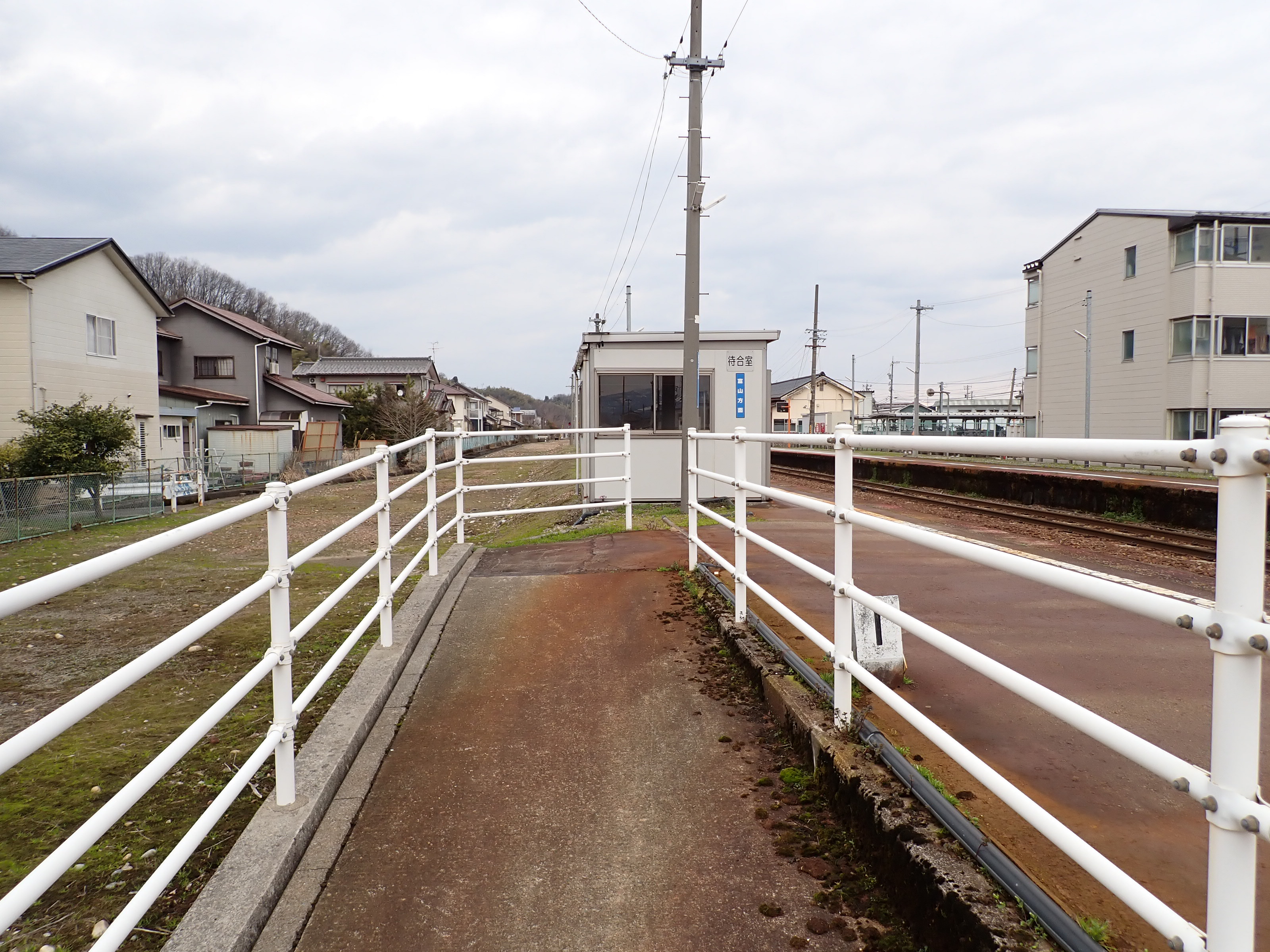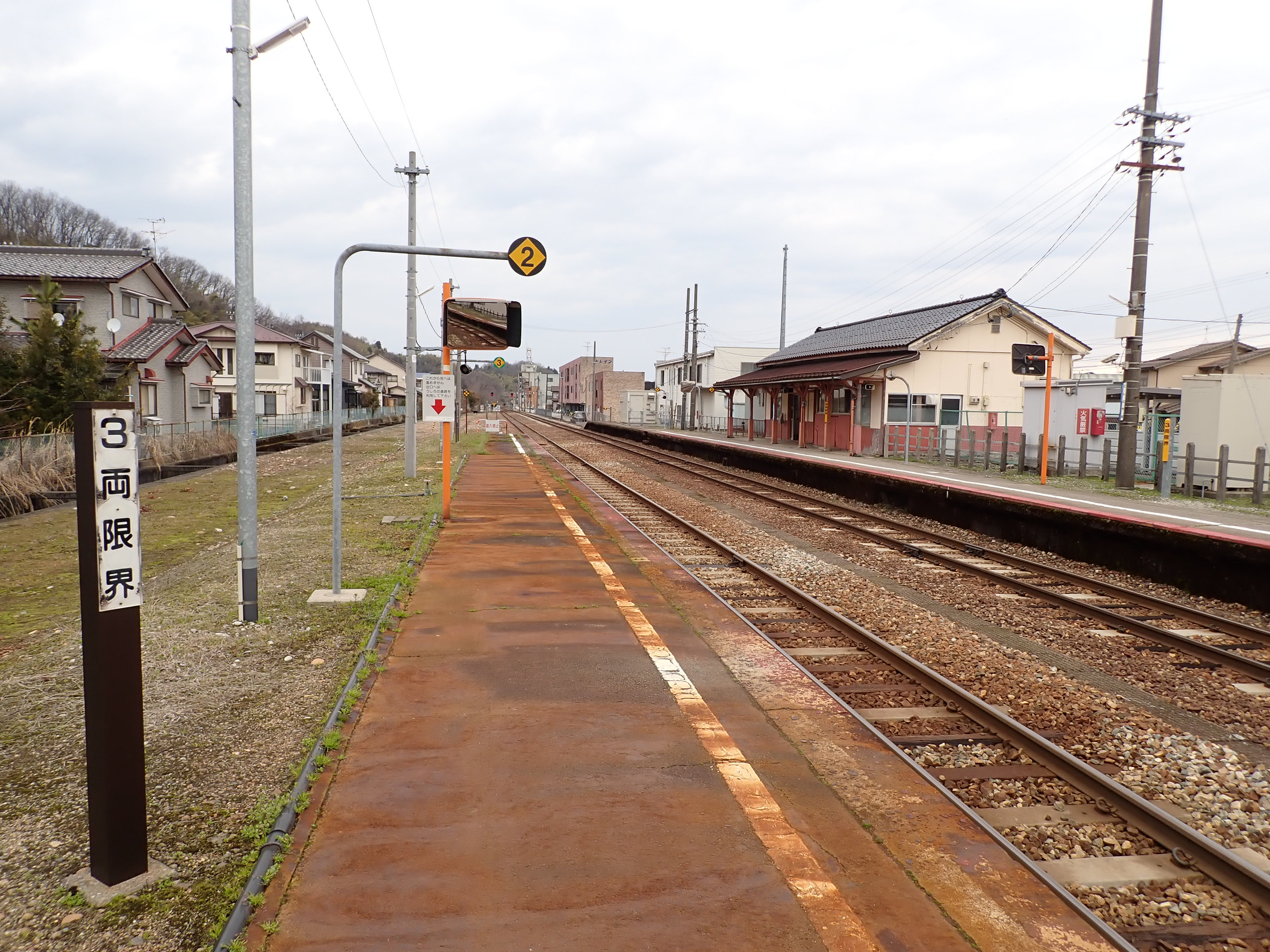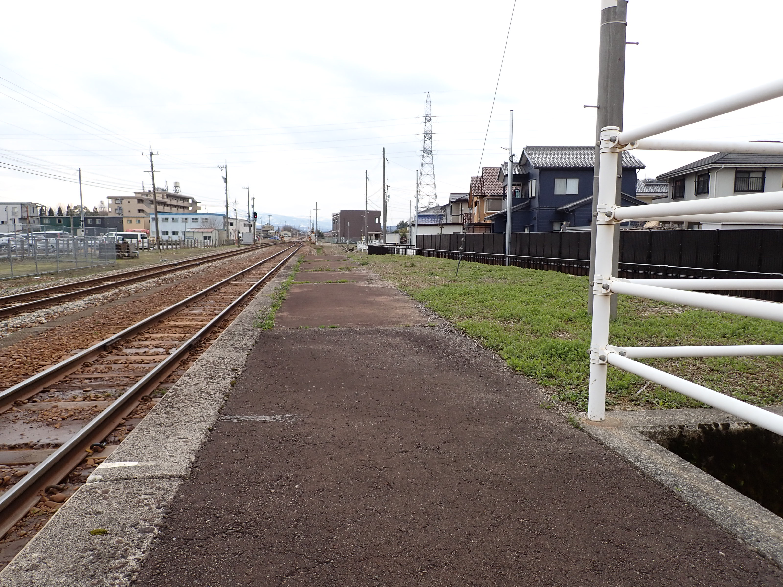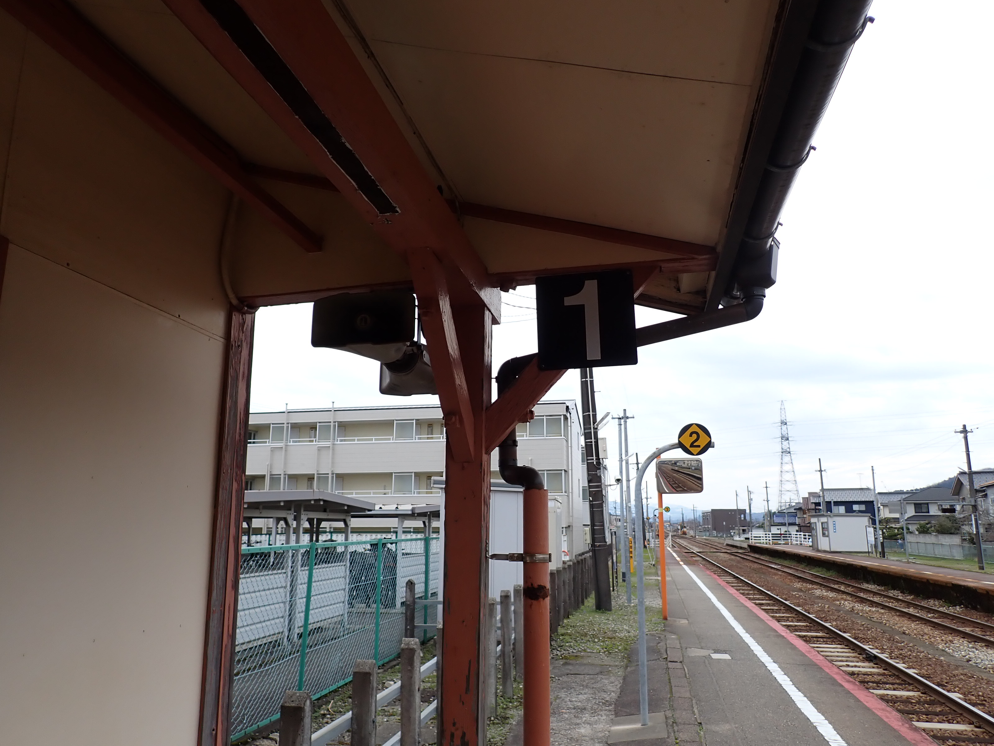 構内踏切を渡ったところから見た2番のりば婦中鵜坂方面。