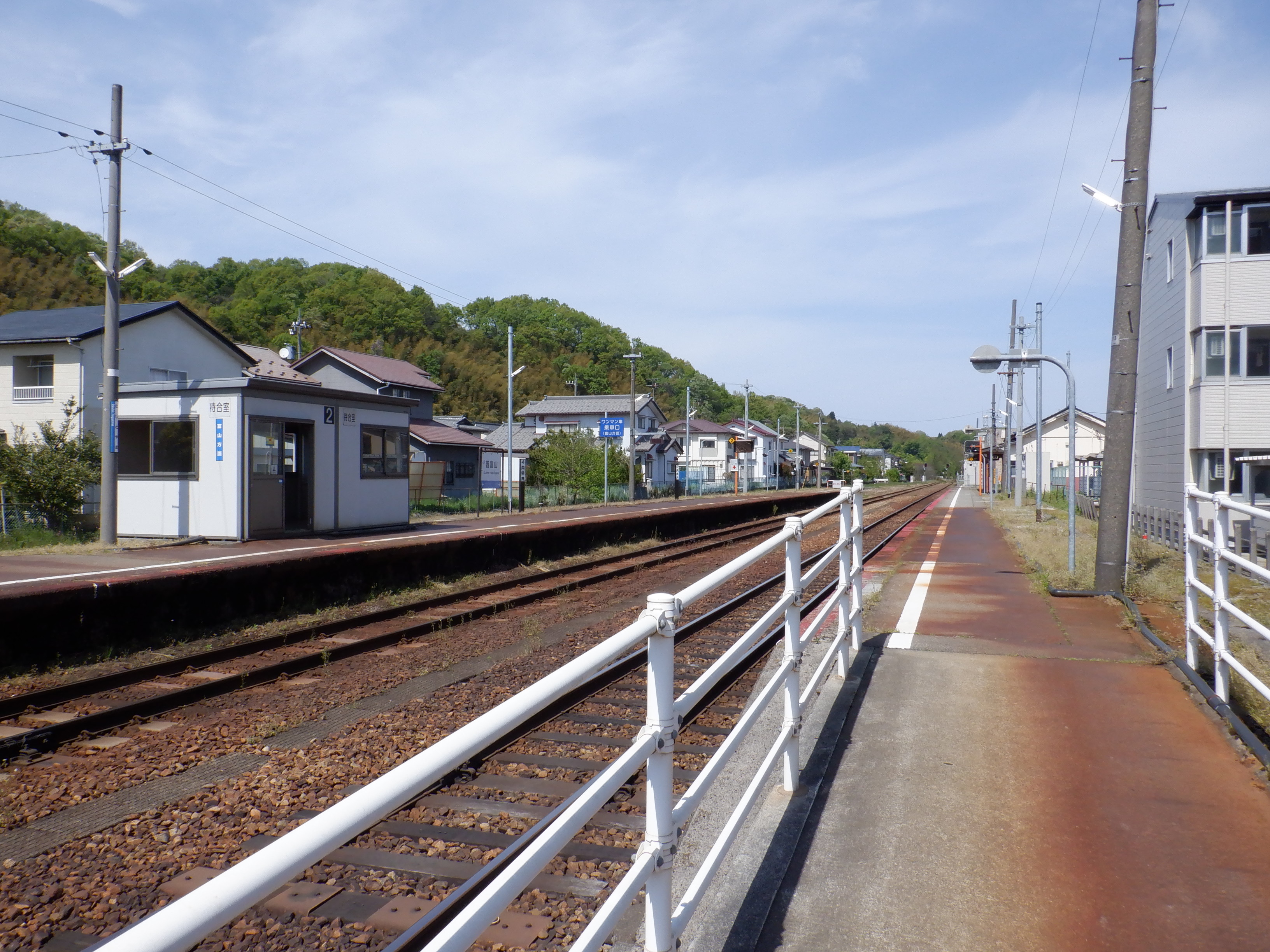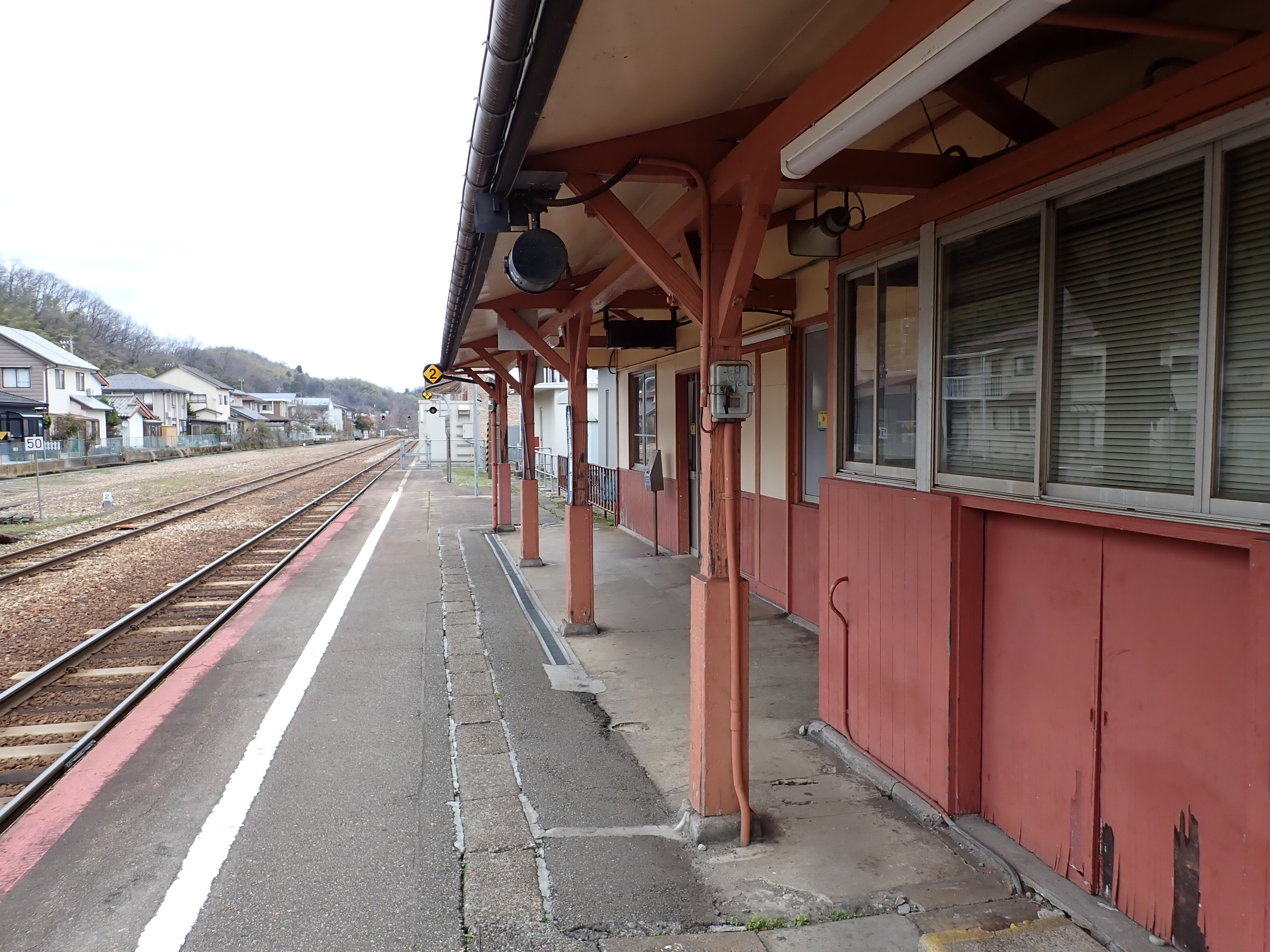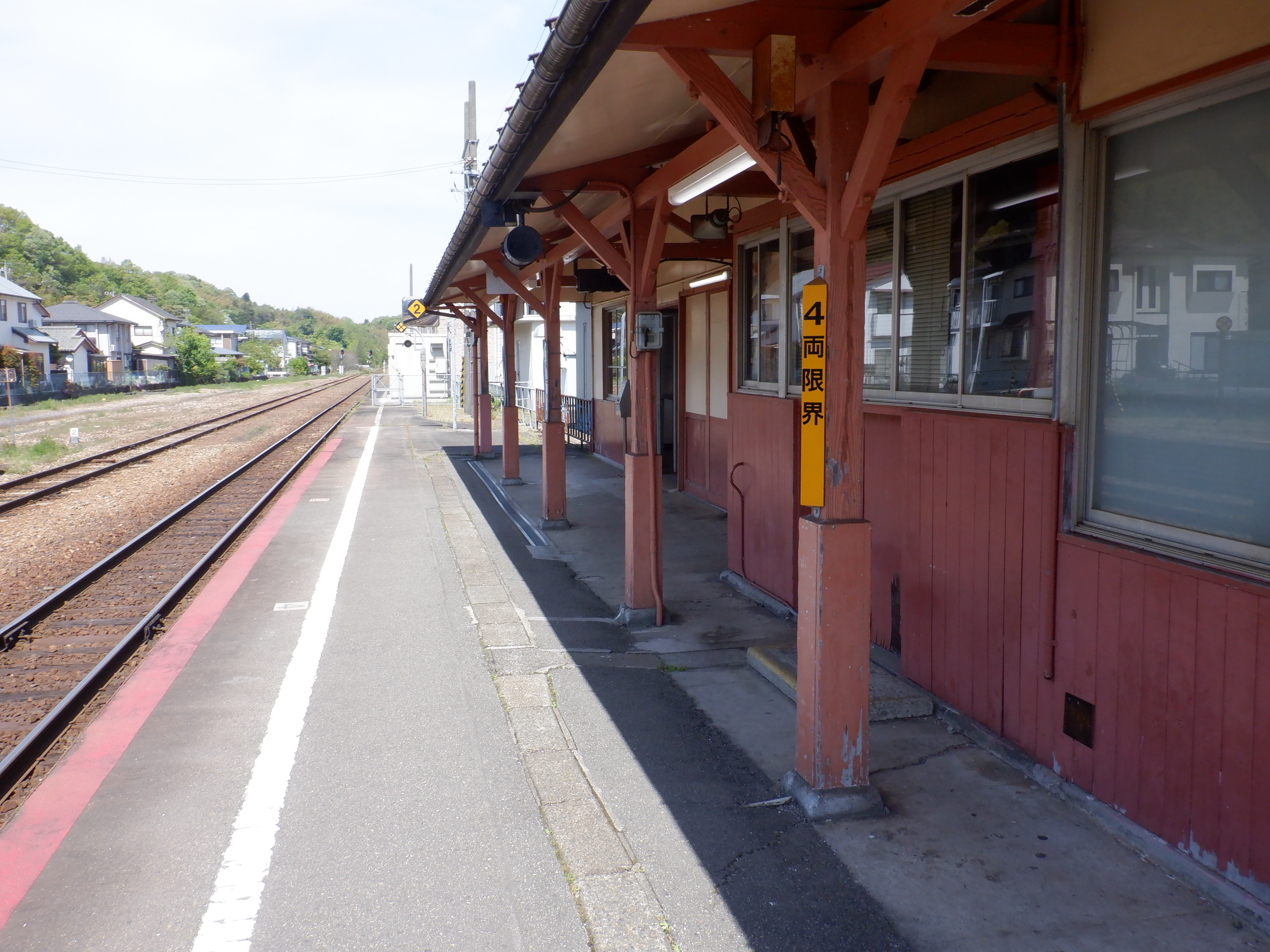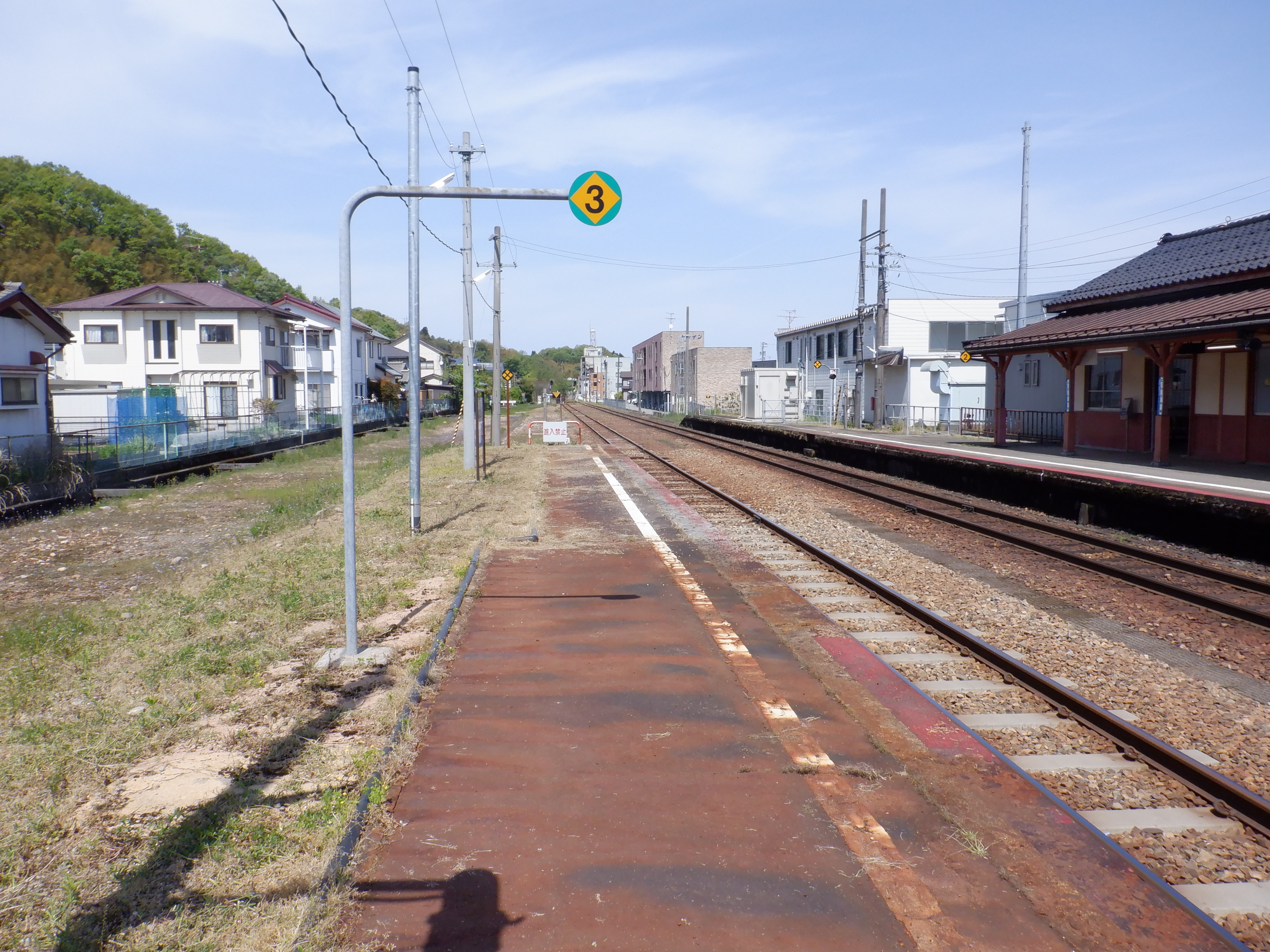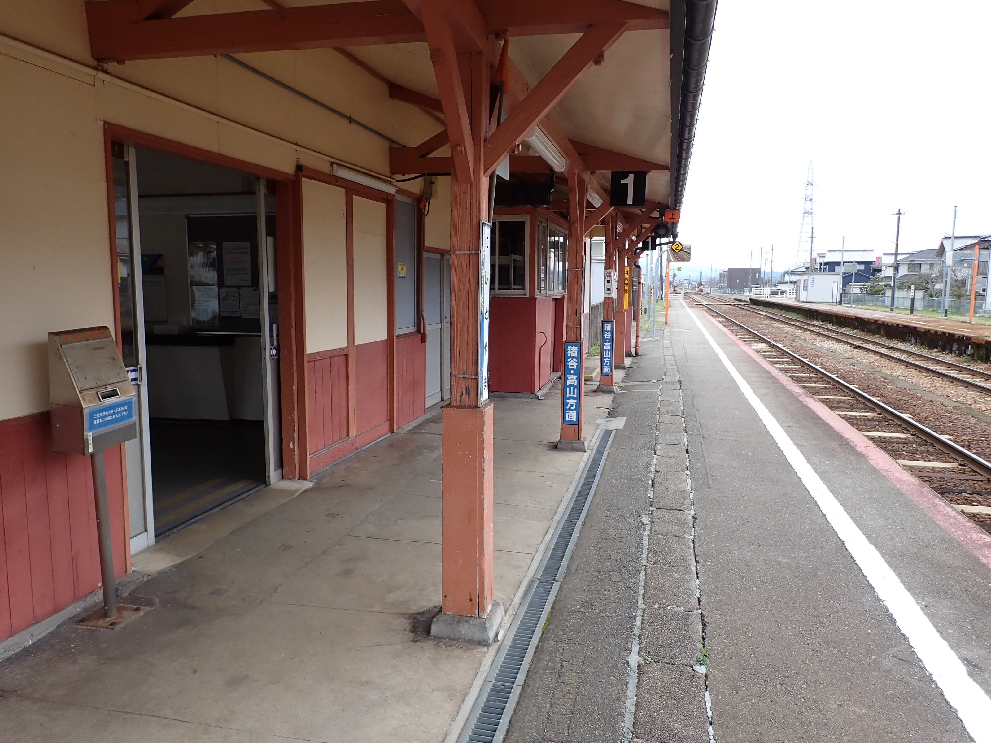 構内踏切を渡ったところから見た2番のりば婦中鵜坂方面。