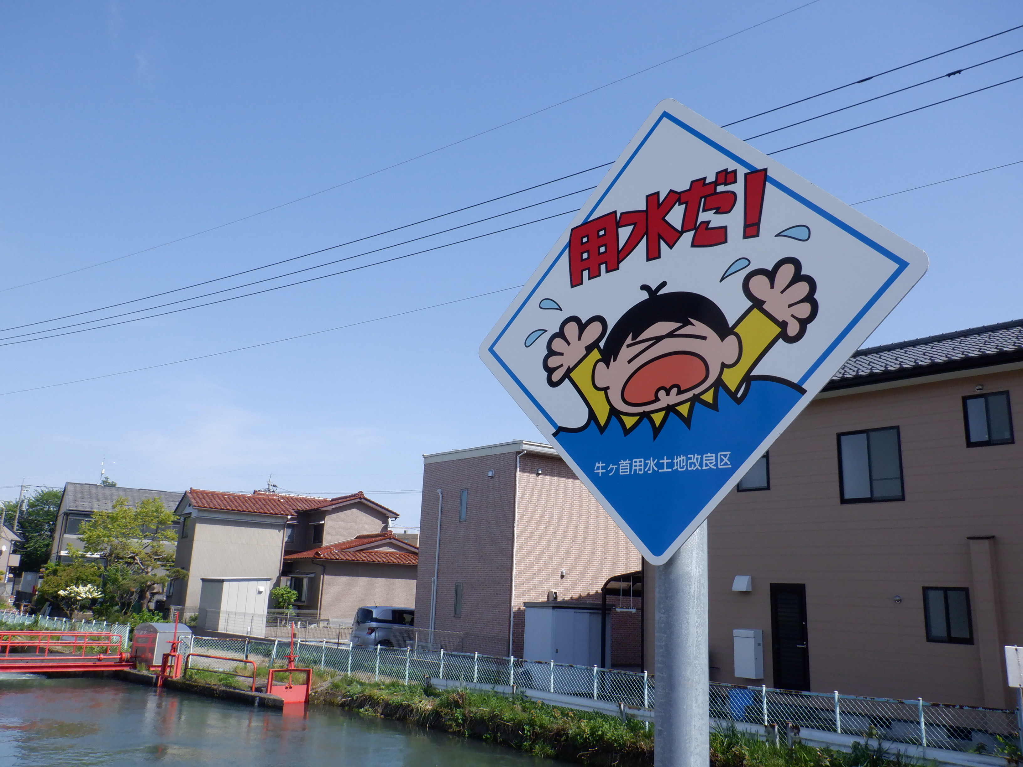 駅から進んで行くと橋毎に「用水だ!」の看板がありました。さらに進んでいくとありそうですが、一旦ここまでにします。