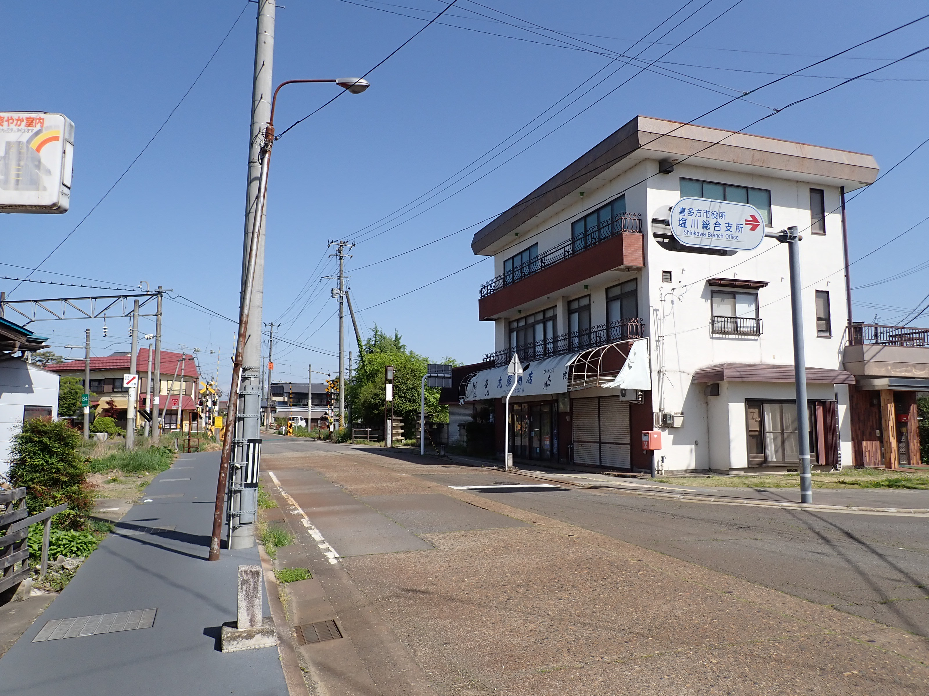 ちょうど塩川駅前からの道に交差し、曲がってまっす進めば塩川駅ですが、そのまま進みます。後から戻ってきます。