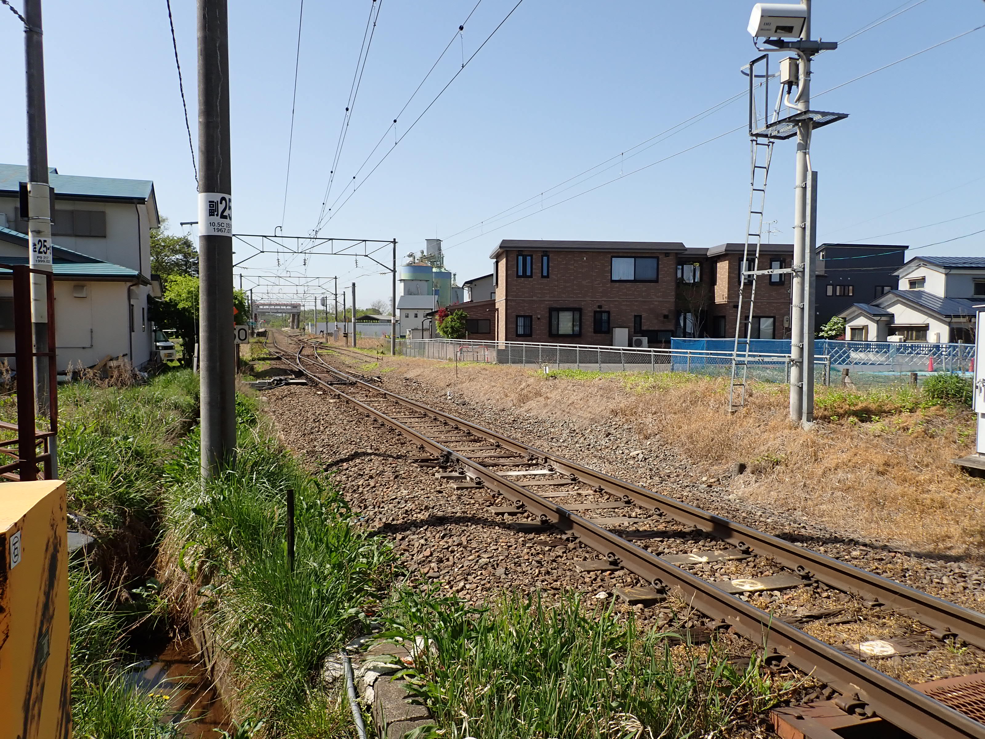 しばらく進み、交差点を右に曲がります。線路と平行に進みます。